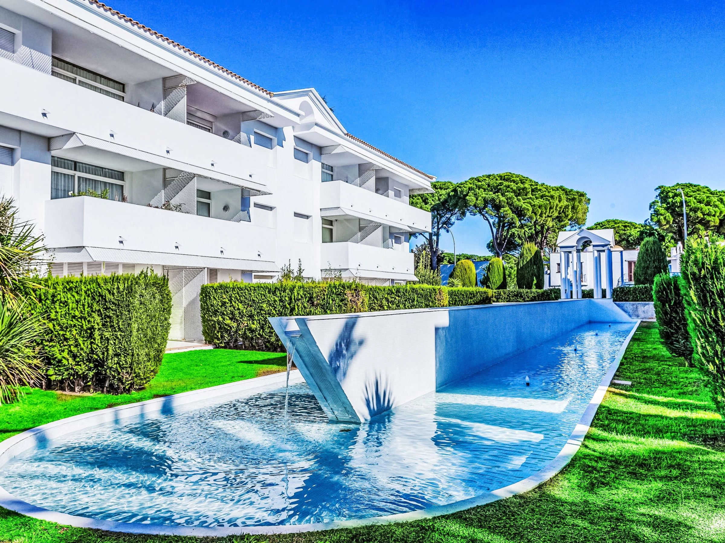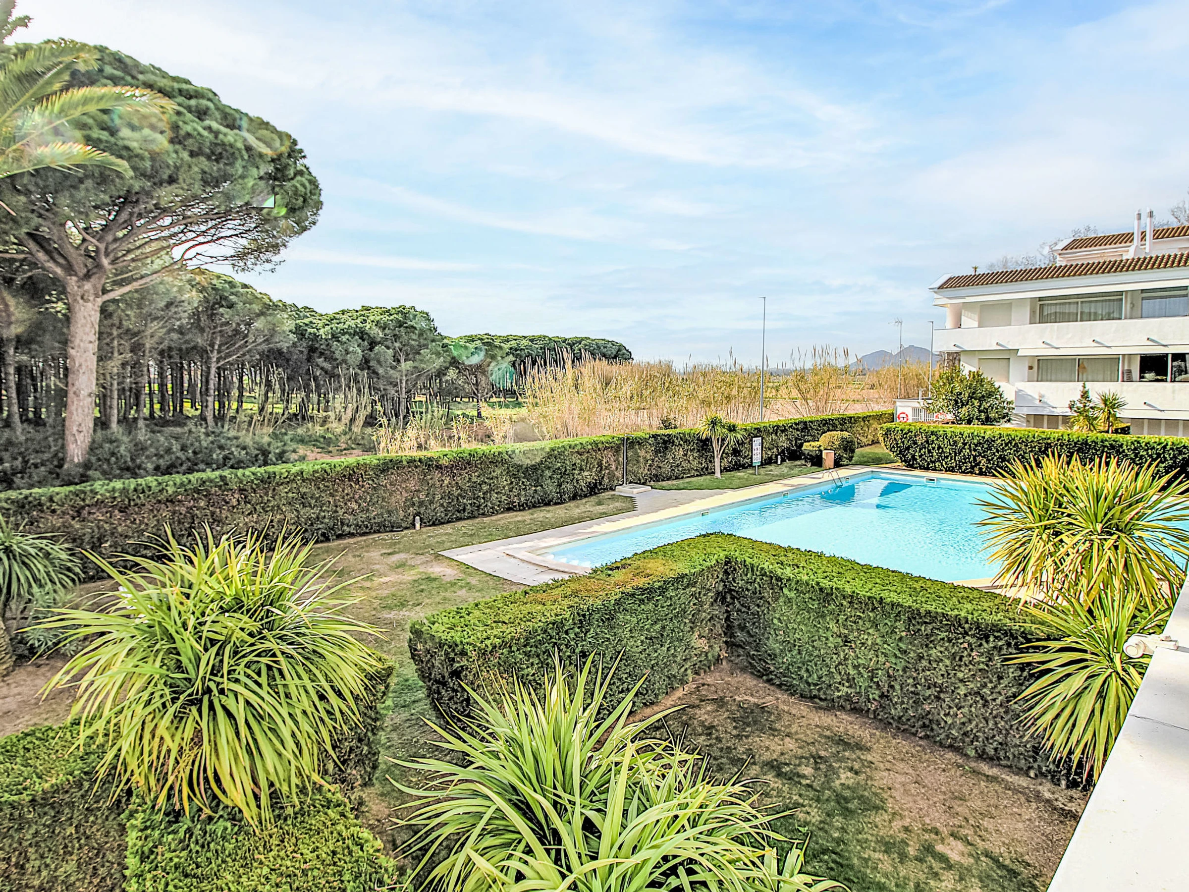 Playa de Pals 5 km from Pals: Apartment block "Green Club", 2 storeys. 850 m from the sea, 850 m from the beach. For shared use: natural state property, swimming pool (20 x 20 m, depth 92 - 190 cm, seasonal availability: [hidden] - [hidden] with internal staircase. Unconventional pool shape. Children's pool, parking at the house. Supermarket 600 m, bus stop "pals" 7 km, sandy beach "Playa del Grau" 850 m. Golf course (18 hole) 200 m. Nearby attractions: Illes Medes 17 km. Please note: no lift. The owner does not accept any groups. The owner does not accept any youth groups. Neighbourhood highly sensitive to noise. Quietness and good behaviour expected.