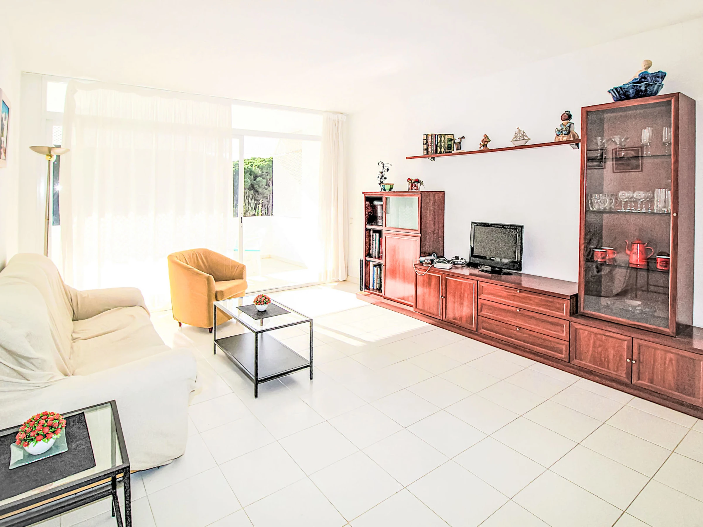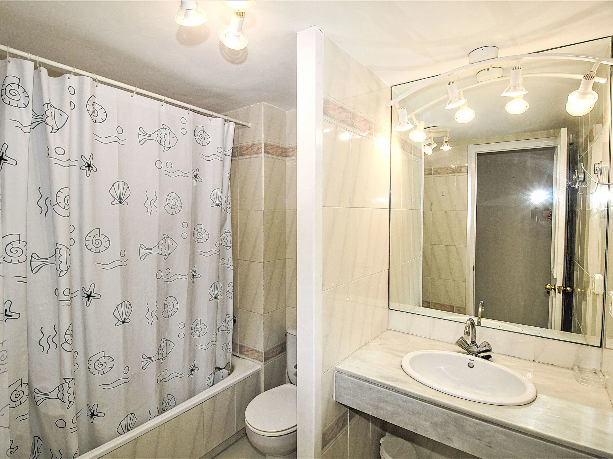 "Green Club", 3-room apartment 70 m2. Practical and comfortable furnishings: living/dining room with satellite TV. Exit to the terrace. 1 room with 1 french bed (150 cm, length 190 cm), bath/WC. 1 room with 2 beds (90 cm, length 190 cm). Kitchen (dishwasher, toaster, microwave, electric coffee machine). Bath/WC. No heating option. Small balcony. Facilities: washing machine. Parking. Please note: maximum 1 pet/ dog allowed. TV only ES. [hidden] // Reg. Nr.: ESFCTU00001700700021229700000000000000[hidden]-276