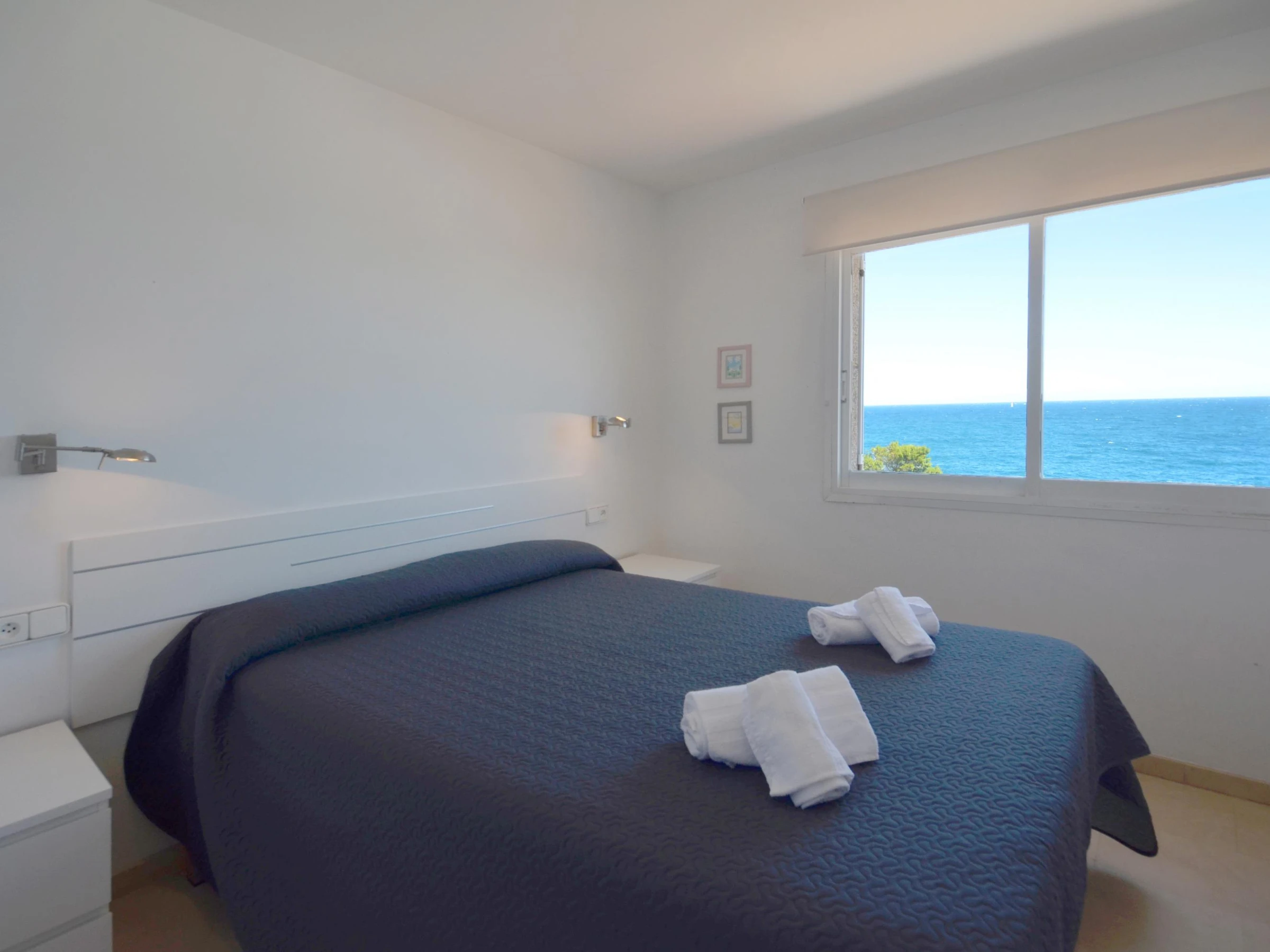 Fantastic apartment situated in a complex located on the shore line with uninterrupted spectacular sea views and direct access to a rocky beach. This first floor apartment has two double rooms ( two single beds and one double bed), a bathroom, a separate kitchen and a living-dining room leading to a terrace with stunning sea views. Communal garden and swimming pool for 12 apartments. Parking space. E 3º13'47.77''