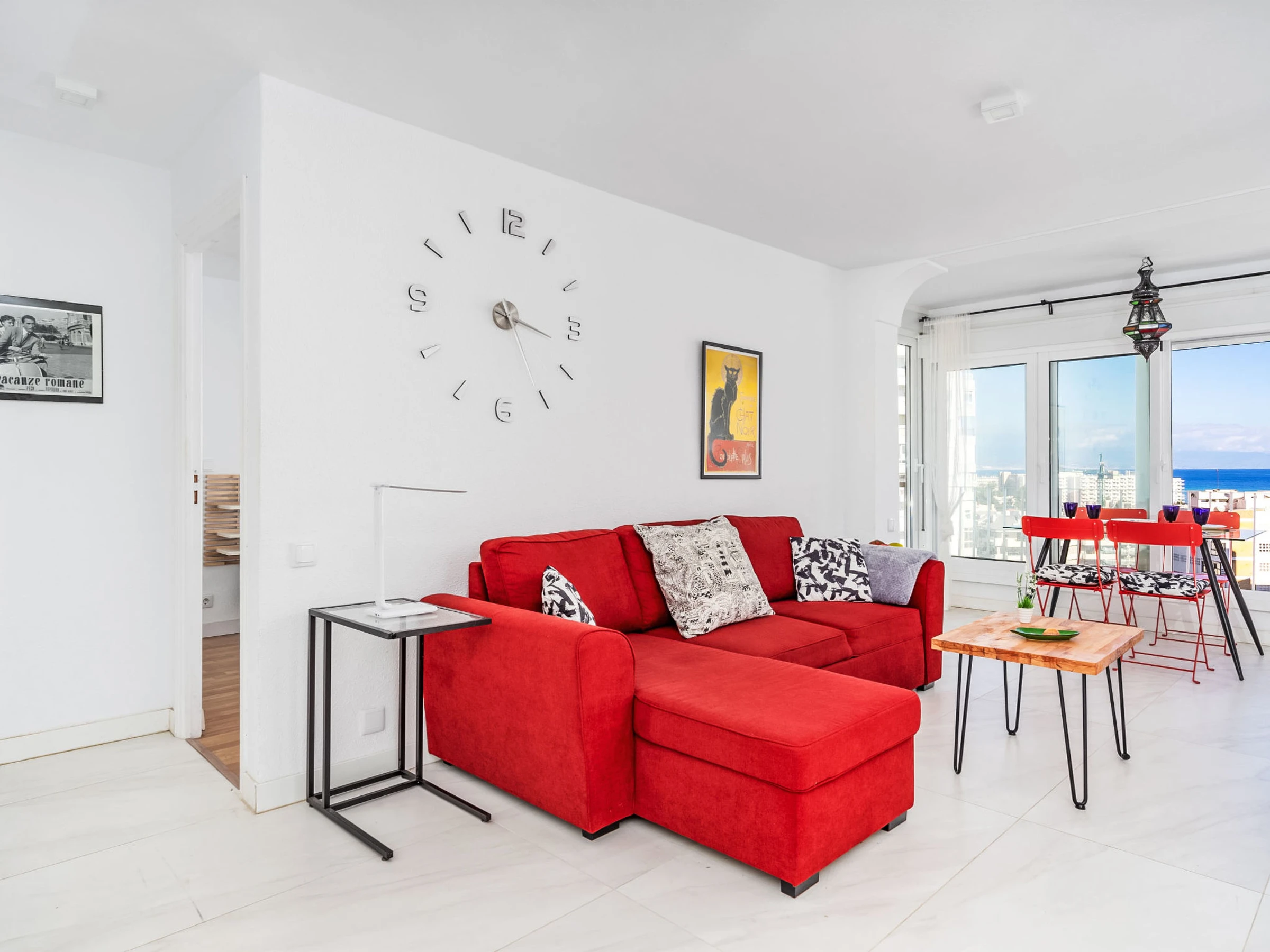 "Diana", 2-room apartment 55 m2 on 11st floor. Object suitable for 2 adults + 2 children. Comfortable and modern furnishings: living/dining room with 1 sofabed (140 cm, length 190 cm), digital TV, air conditioning and forced-air heating. Exit to the terrace. 1 double bedroom with 1 french bed (150 cm, length 190 cm). Open kitchen (4 ceramic glass hob hotplates, toaster, kettle, microwave, freezer, electric coffee machine). Shower/WC. Terrace. Terrace furniture. Panoramic view of the port. Facilities: washing machine, iron, hair dryer. Internet (WiFi, free). [hidden] // Reg. Nr.: ESFCTU0000290350003073280000000000000000[hidden]7