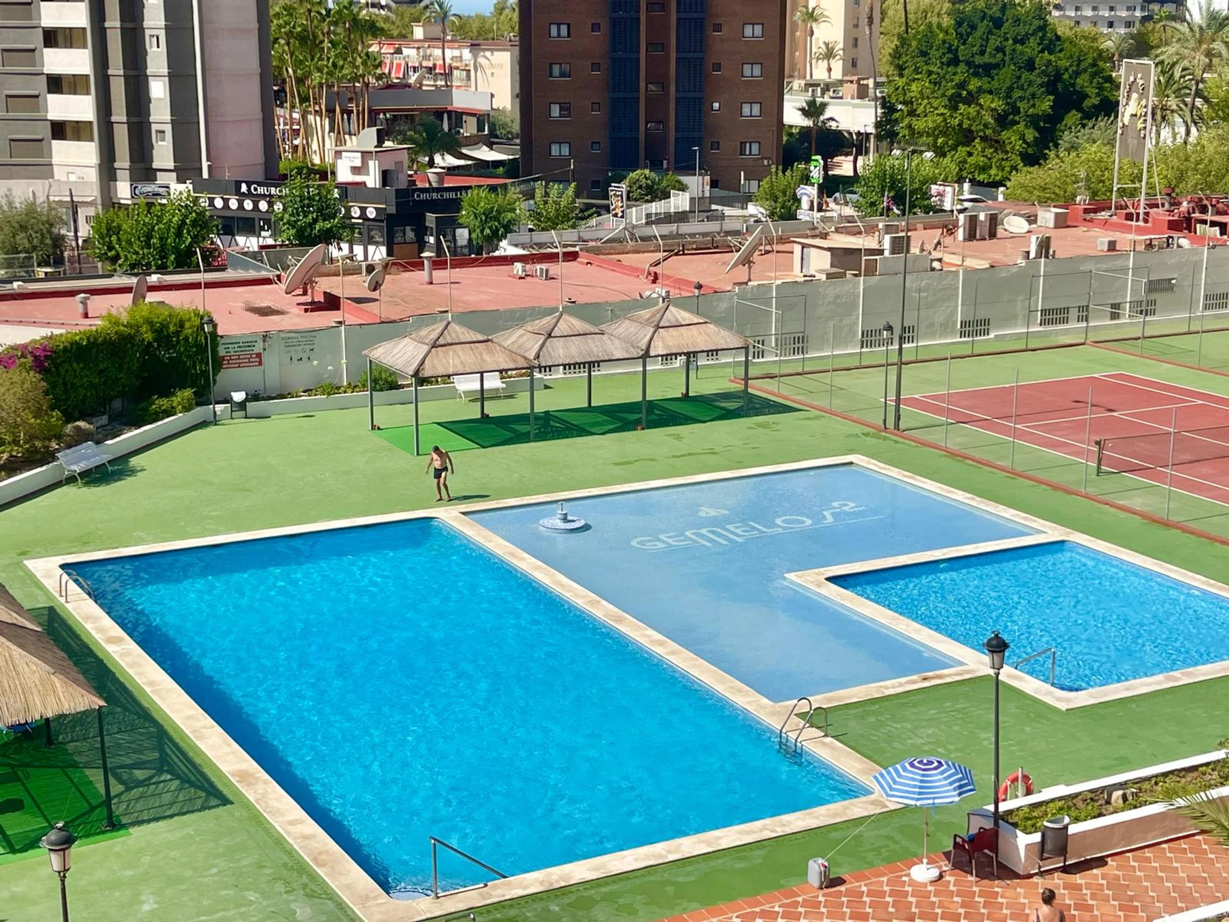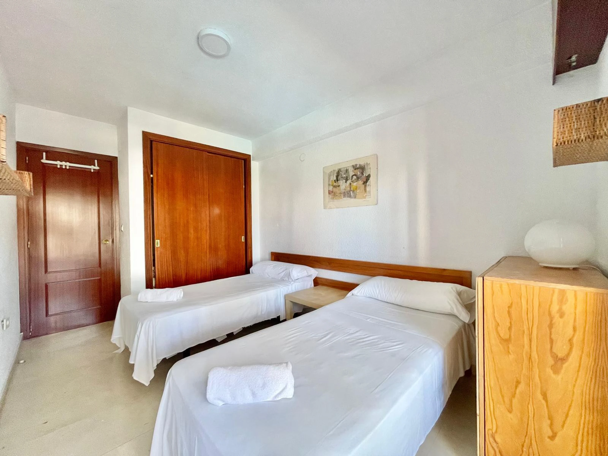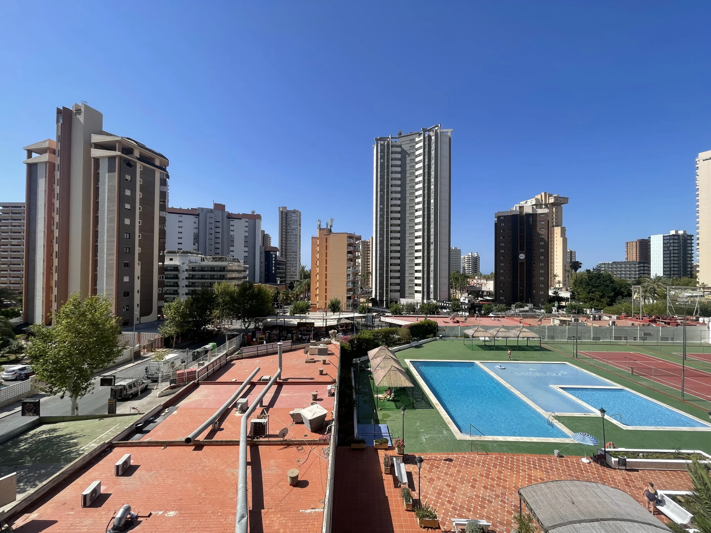 The apartment in Benidorm has 1 bedroom(s) and capacity for 4 people. Accommodation of 50 m² comfortable and exterior, with views of the swimming pool. It is located 50 m from the restaurant, 300 m from the supermarket, 500 m from the sandy beach "Playa de Levante", 1 km from the city "Casco Antiguo Benidorm", 1 km from the bus station "Benidorm", 2 km from the water park "Aqualandia", 5 km from the theme park "Terra Mítica", 65 km from the airport "Alicante", 65 km from the train station "Alicante" and is located in an ideal area for families and within a residential complex. It has a lift, 8 m² terrace, washing machine, iron, communal swimming pool, covered parking in the same building, Television. The independent kitchen, with ceramic hob, is equipped with fridge, microwave, crockery/cutlery, utensils/kitchen, coffee maker, toaster and kettle.