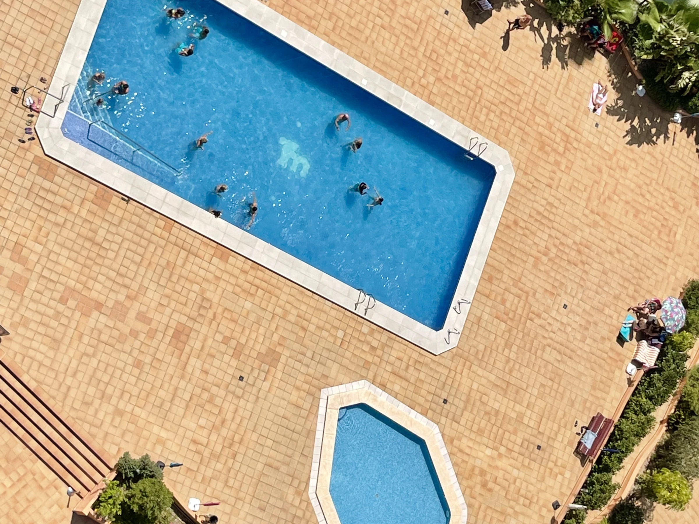 The accommodation is equipped with the following items: lift, washing machine, heat pump, air-conditioned, swimming pool communal, covered parking in the same building, 1 TV.