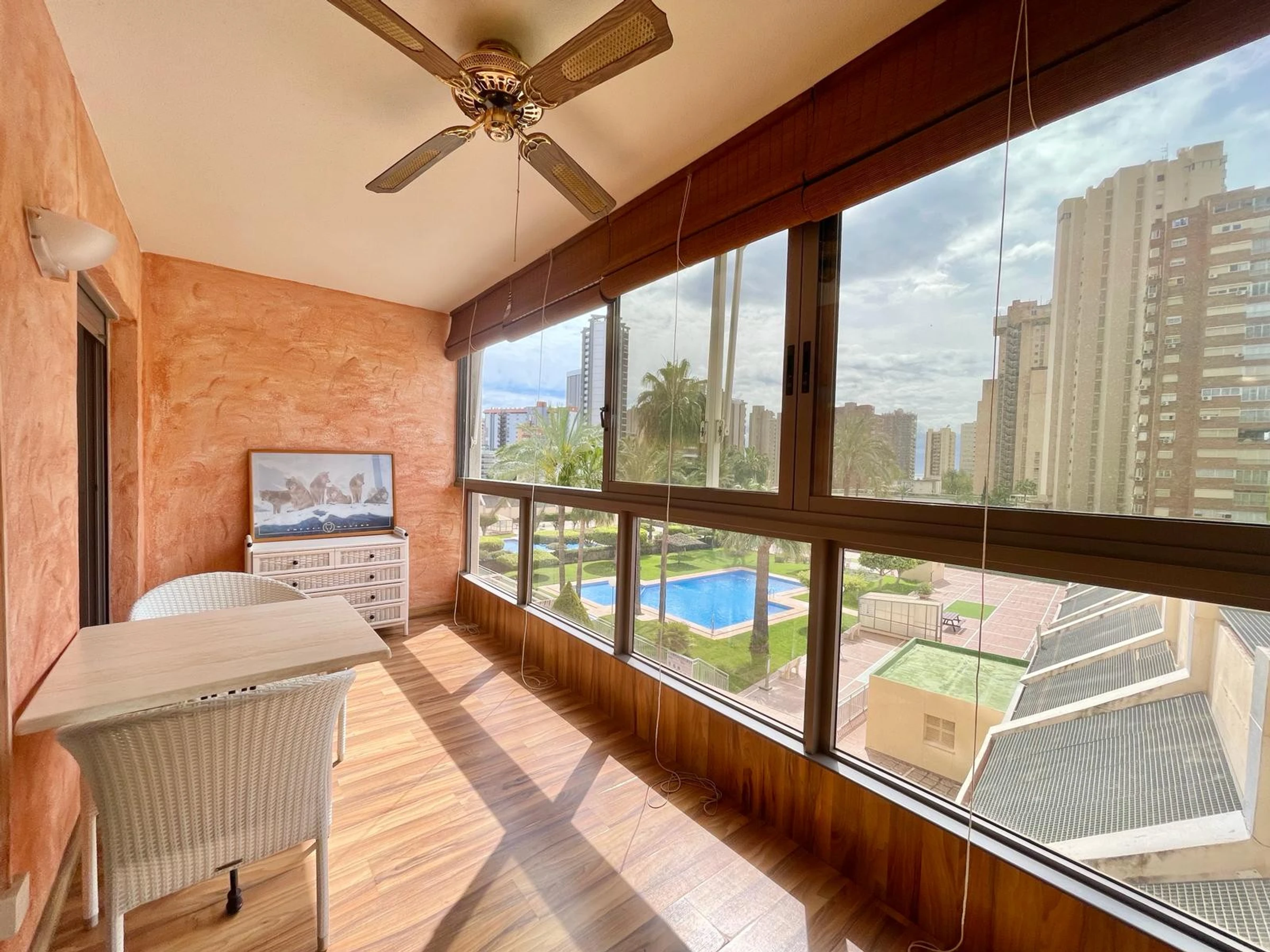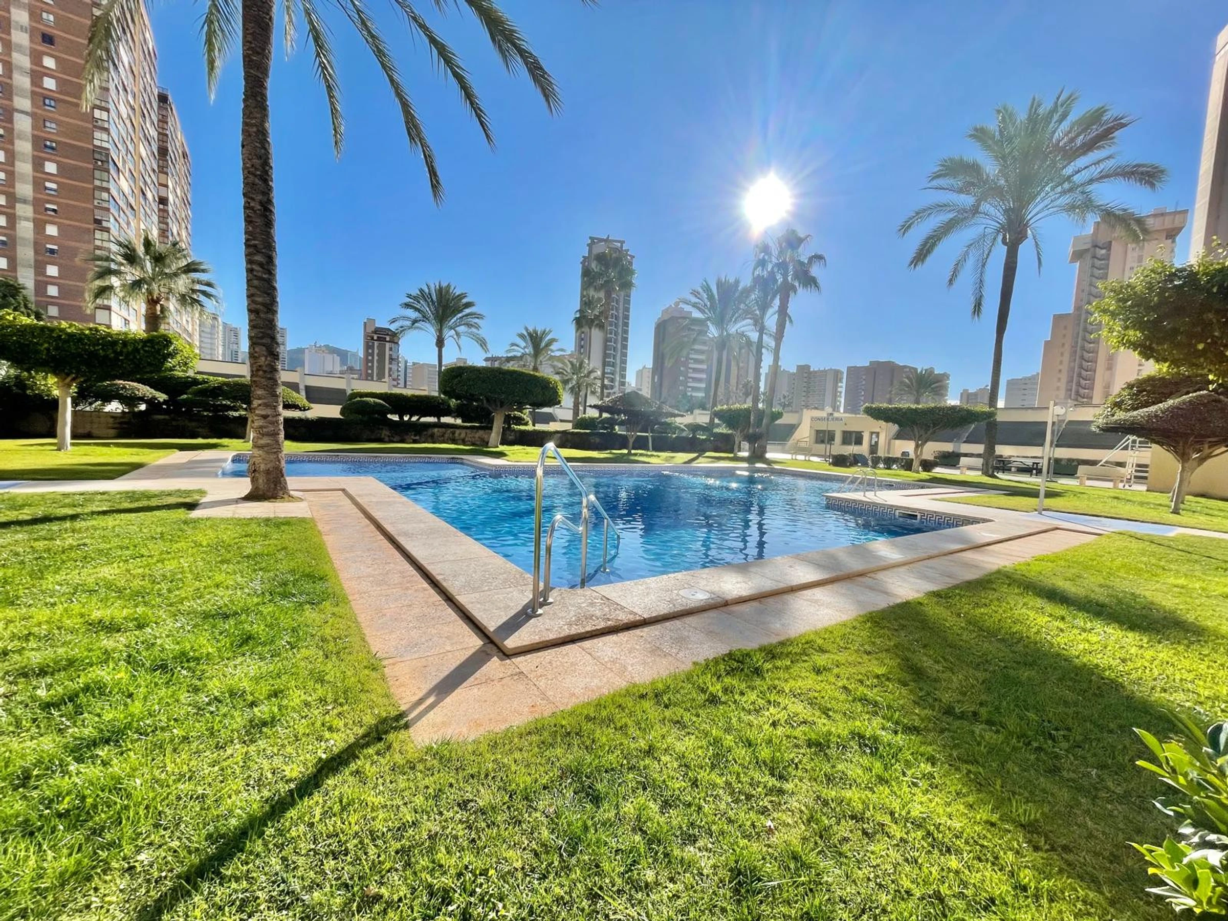 The apartment in Benidorm has 2 bedroom(s) and capacity for 4 people. Accommodation of 80 m² comfortable and spacious, with views of the garden and pool. It is located 100 m from the restaurant, 300 m from the supermarket, 500 m from the sandy beach "Playa de Levante", 1 km from the bus station "Benidorm", 1 km from the city "Old Town Benidorm", 3 km from the water park "Aqualandia", 4 km from the Golf course "Villaitana", 5 km from the theme park "Terra Mítica", 65 km from the "Alicante" airport, 65 km from the "Alicante" train station and is located in an ideal area for families and within a residential complex. It has 10 m² of terrace, washing machine, iron, heat pump heating, air conditioning throughout the accommodation, communal pool, covered parking in the same building, Television. The American kitchen is equipped with refrigerator, microwave, oven, freezer, dishwasher, crockery/cutlery, utensils/kitchen, coffee maker, toaster and kettle.