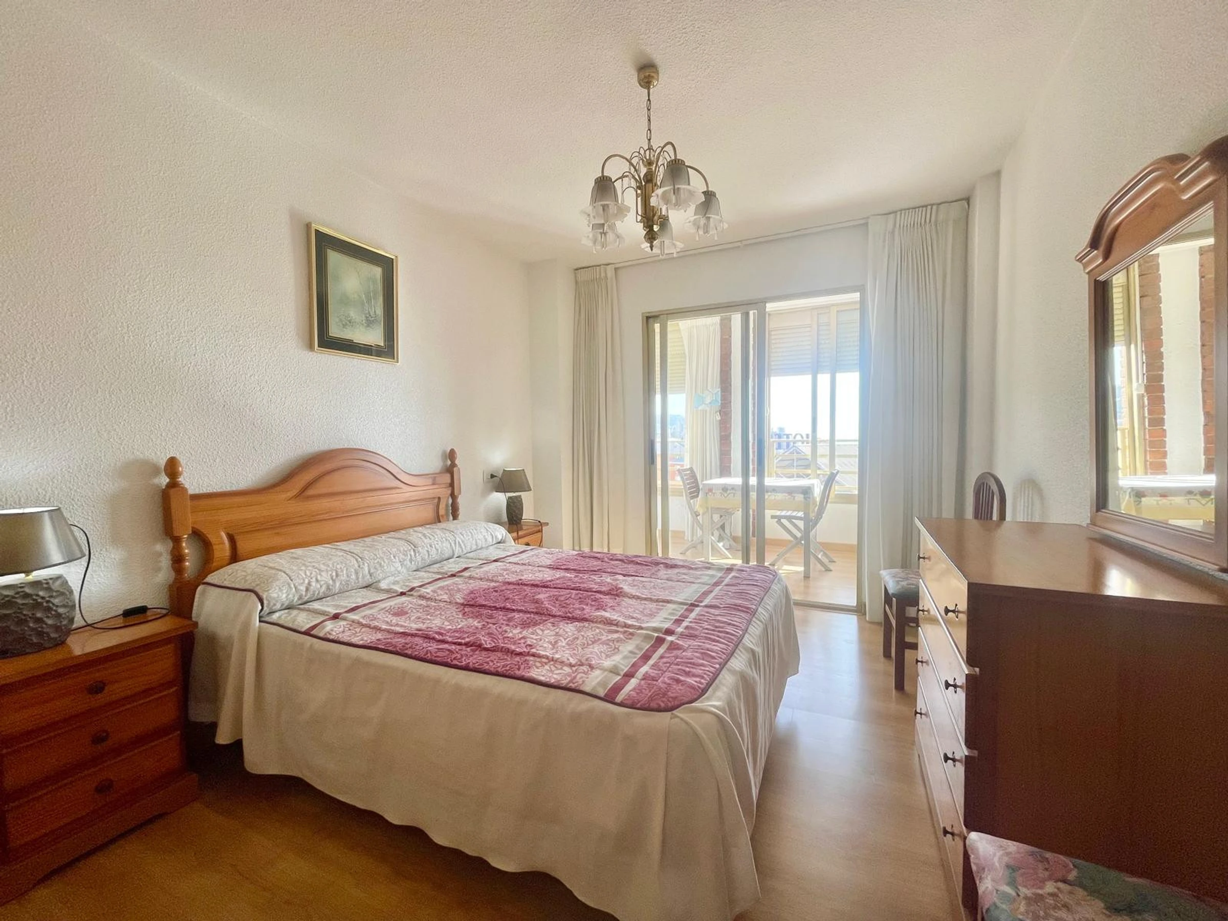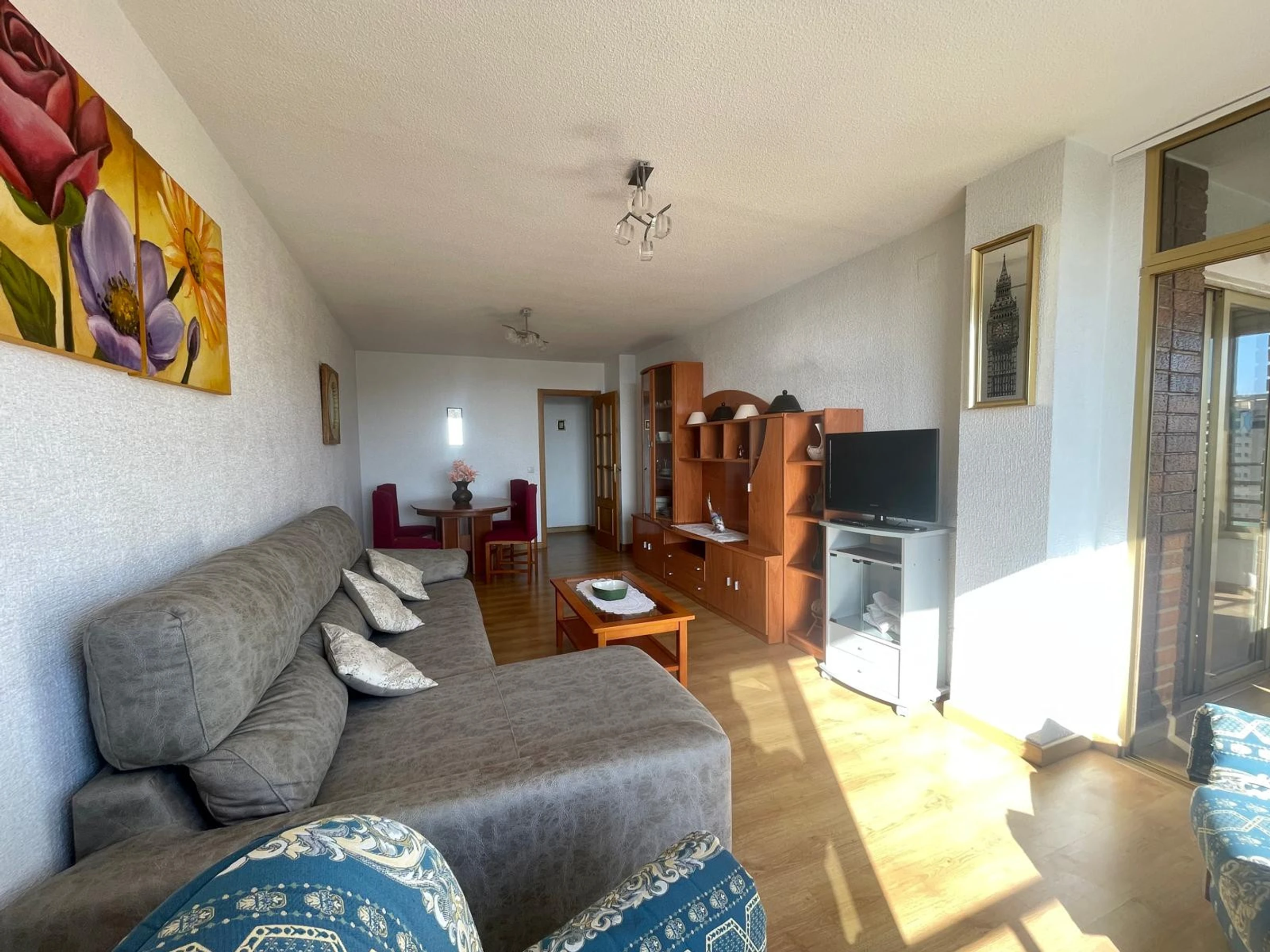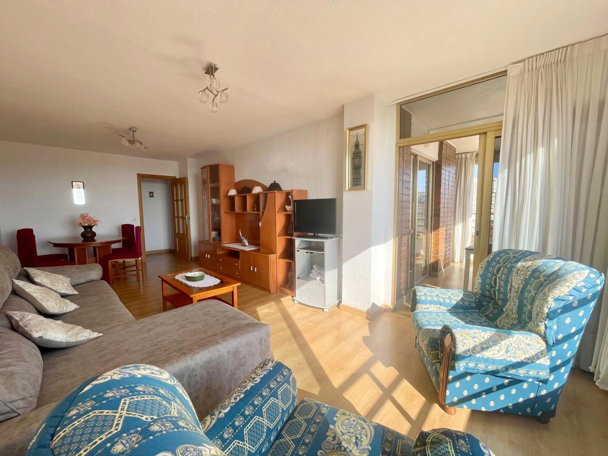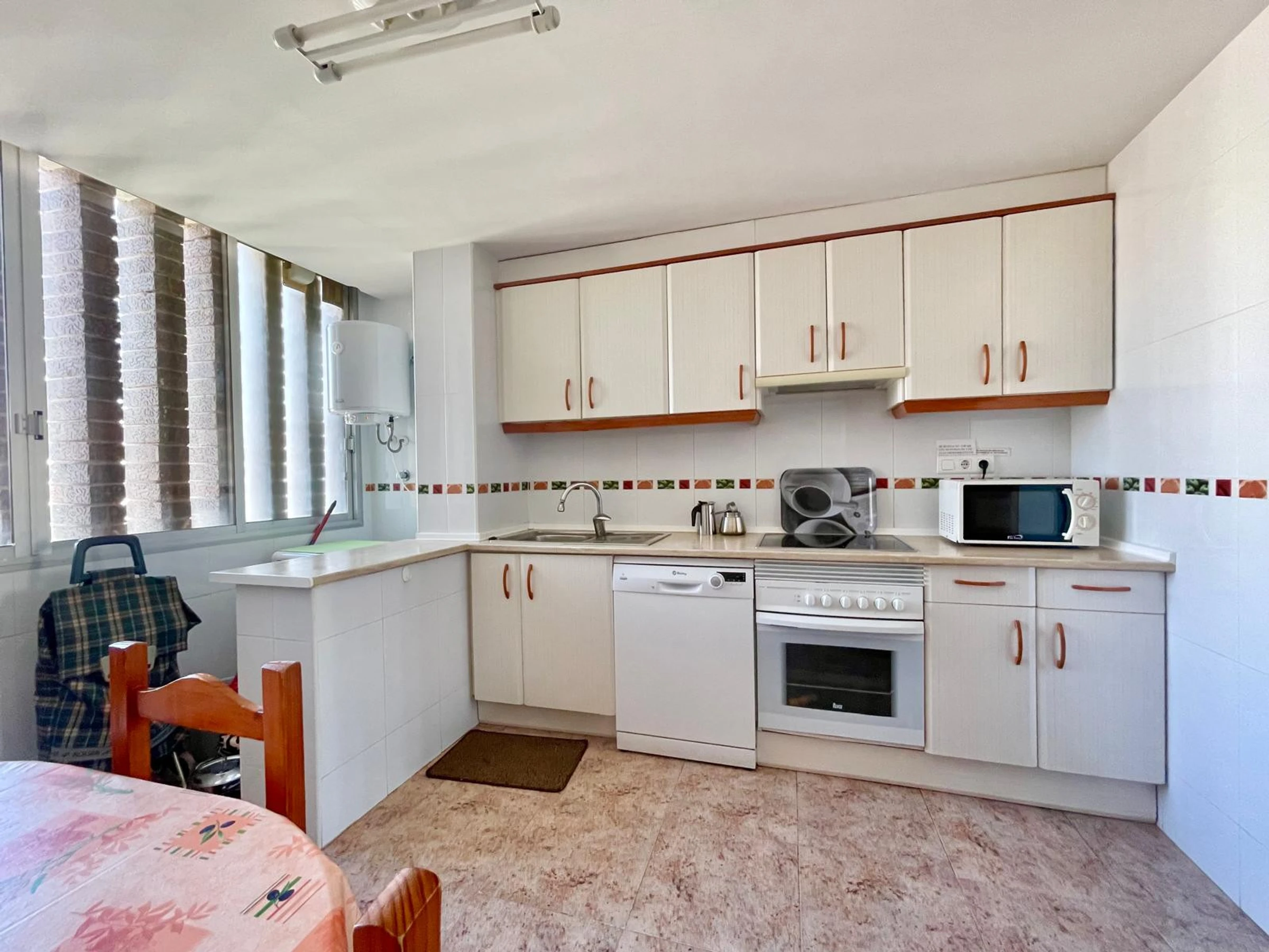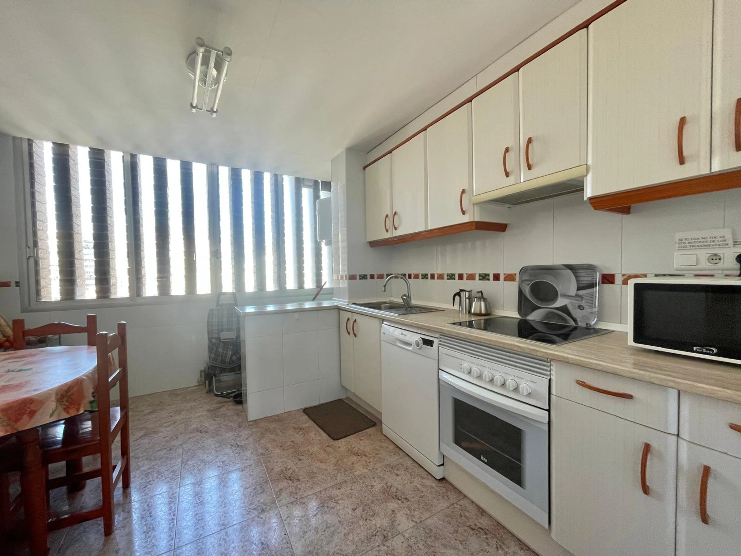 The apartment in Benidorm has 2 bedroom(s) and capacity for 6 people. Accommodation of 80 m² comfortable and modern, with sea and garden views. It is located in an ideal area for families and in the urban centre. It has a lift, washing machine, dryer, communal swimming pool, outdoor parking in the same building, 1 Television. The independent kitchen, with ceramic hob, is equipped with fridge, microwave, oven, freezer, dishwasher, crockery/cutlery, utensils/kitchen and toaster.