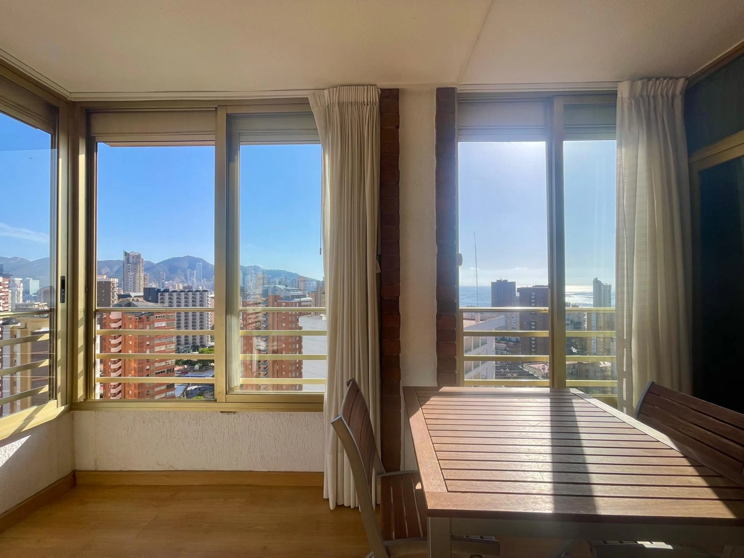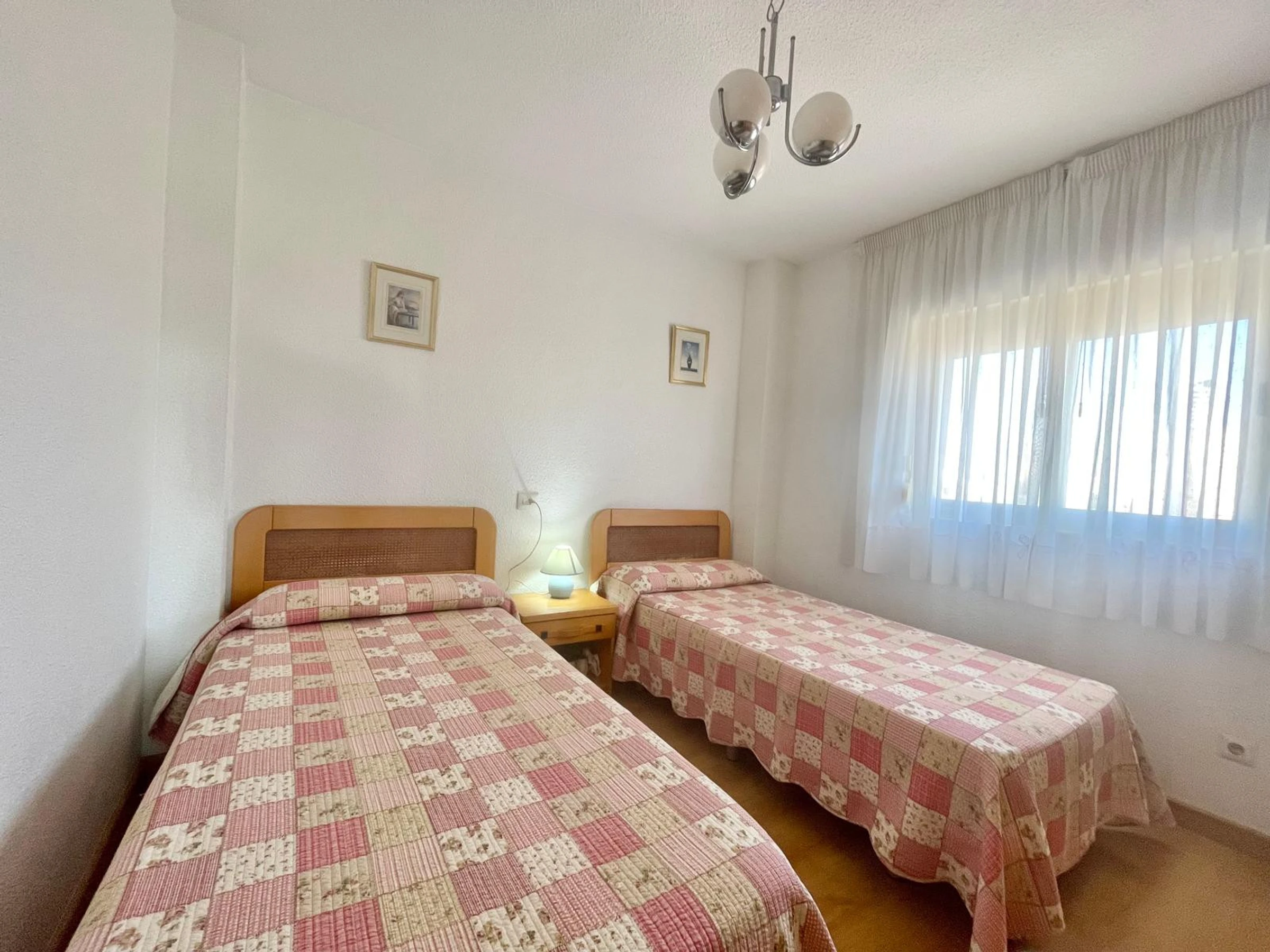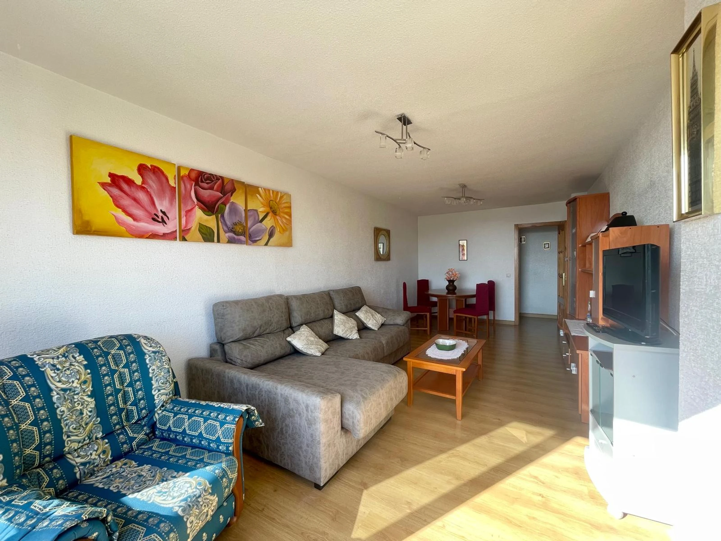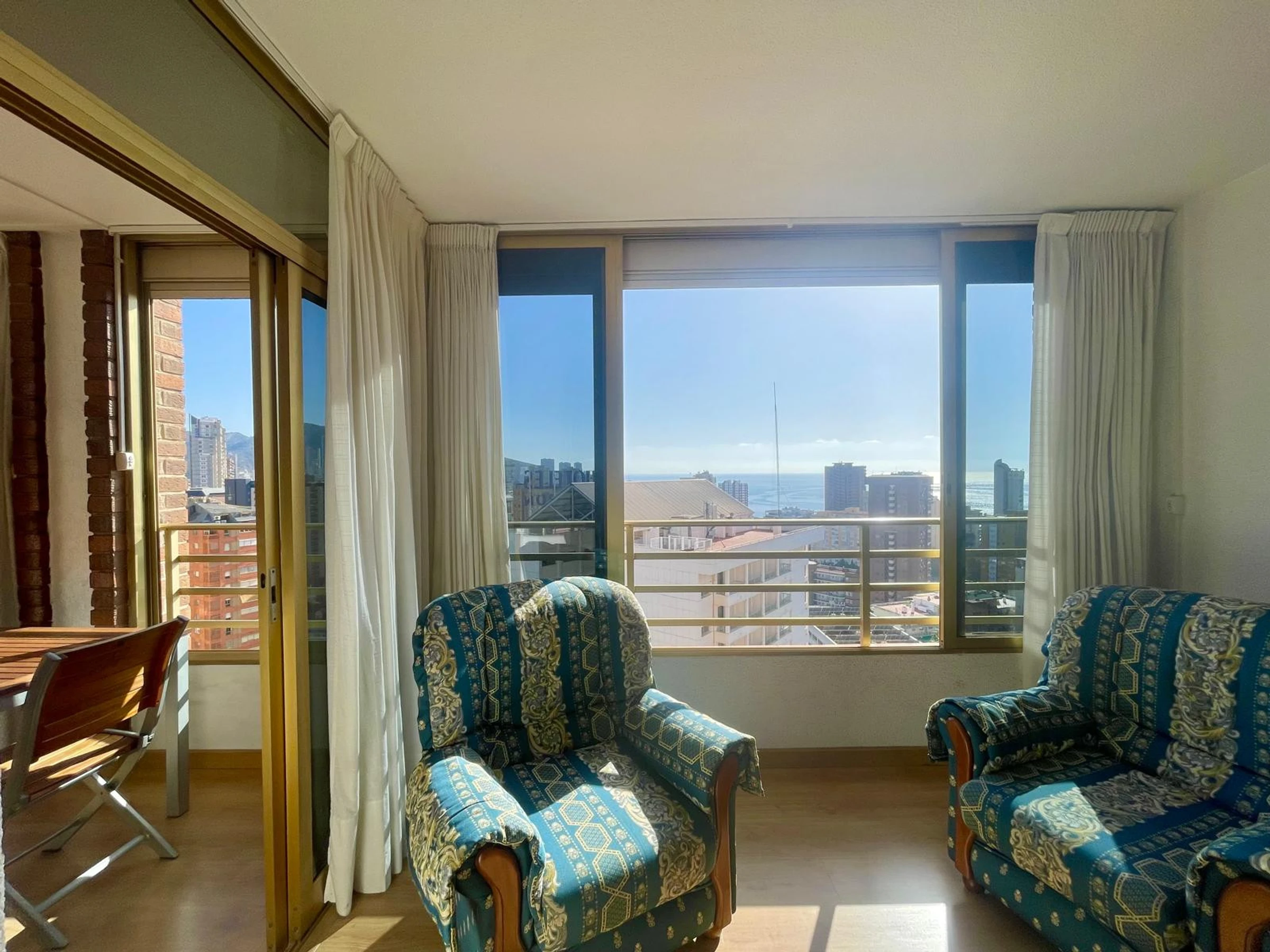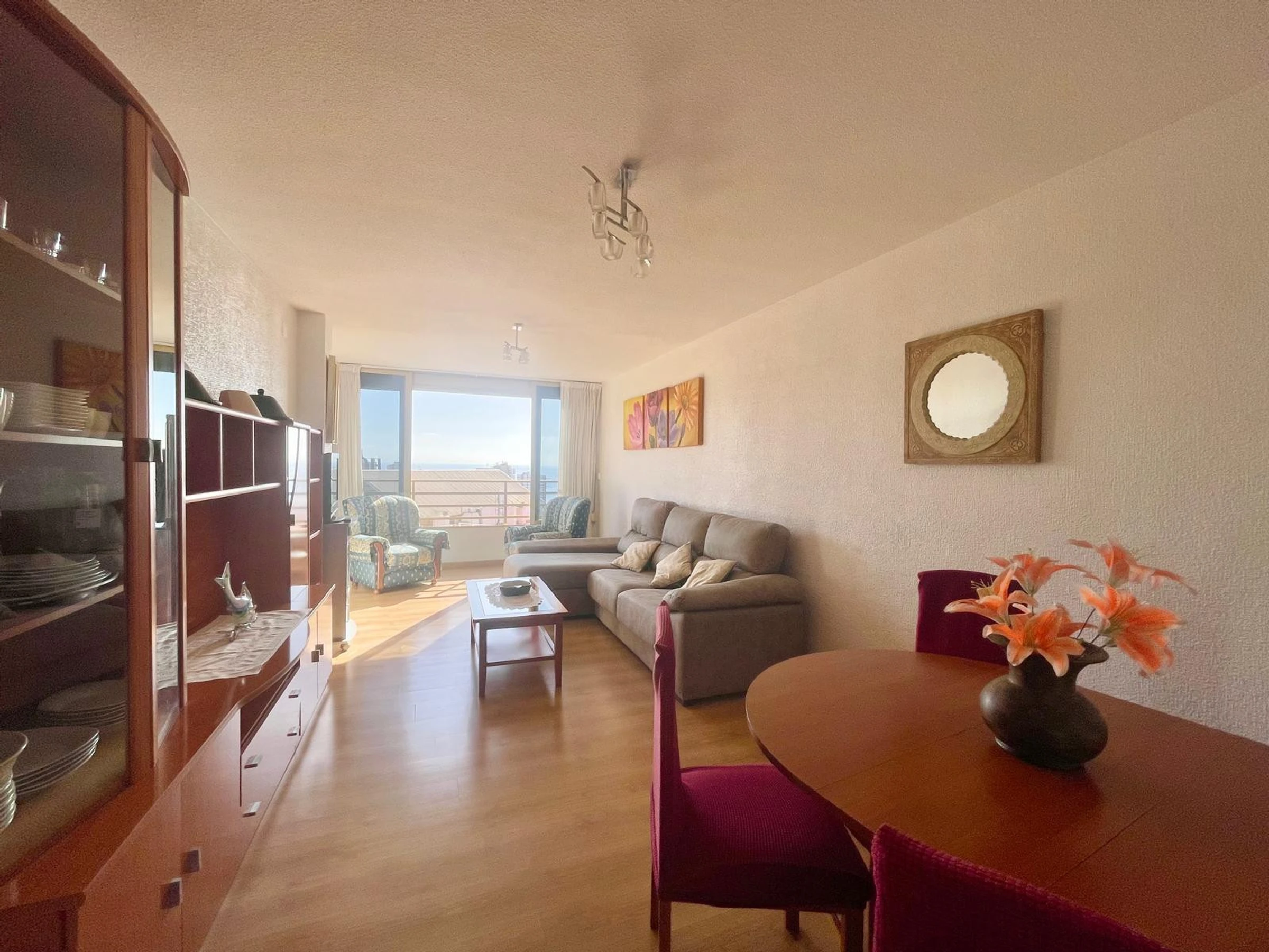 The apartment in Benidorm has 2 bedroom(s) and capacity for 6 people. Accommodation of 80 m² comfortable and modern, with sea and garden views. It is located in an ideal area for families and in the urban centre. It has a lift, washing machine, dryer, communal swimming pool, outdoor parking in the same building, 1 Television. The independent kitchen, with ceramic hob, is equipped with fridge, microwave, oven, freezer, dishwasher, crockery/cutlery, utensils/kitchen and toaster.