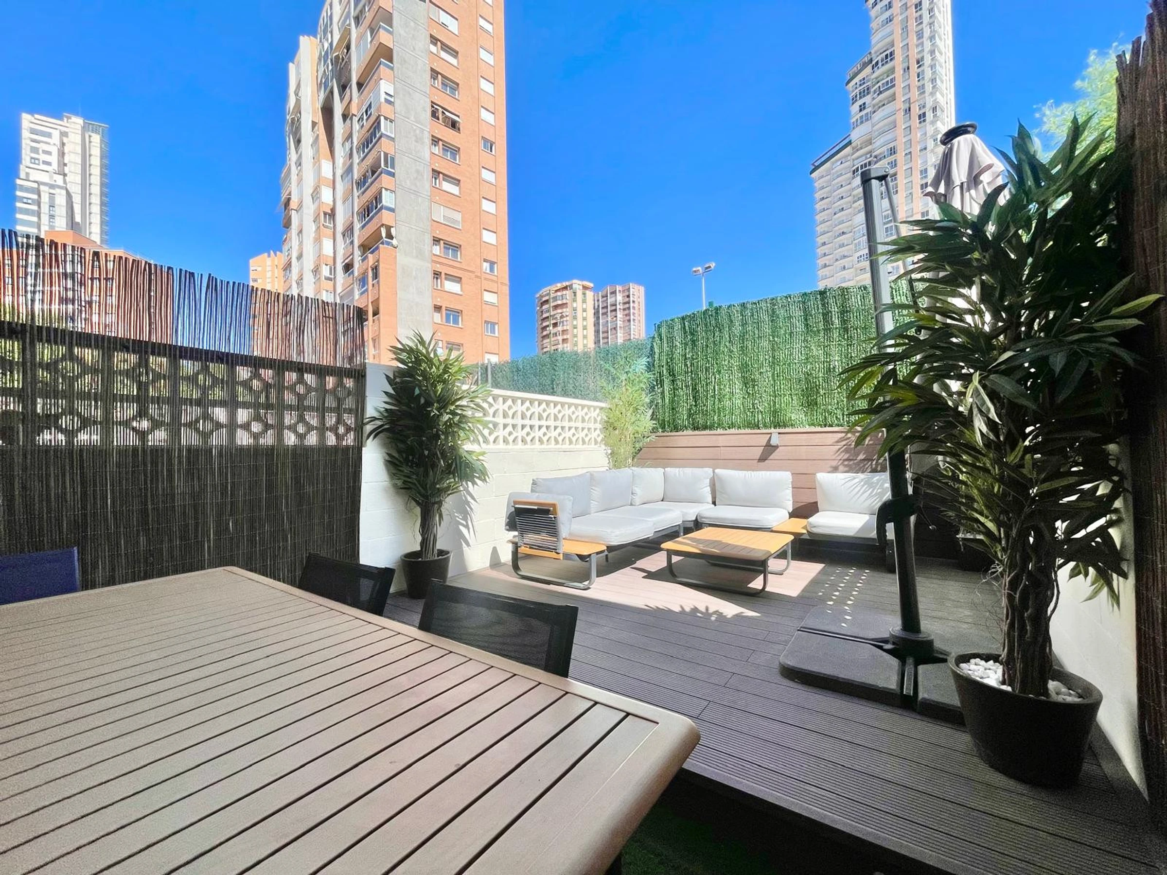 The bungalow in Benidorm has 2 bedroom(s) and capacity for 6 people. Accommodation of 80 m² comfortable and modern, with sea and garden views. It is located in an ideal area for families and in the residential complex. It has a washing machine, internet access (wifi), heat pump heating, air conditioning, communal swimming pool, outdoor parking in the same building, 1 Television. The independent kitchen, with ceramic hob, is equipped with fridge, microwave, freezer, crockery/cutlery, utensils/kitchen, coffee maker and toaster.
