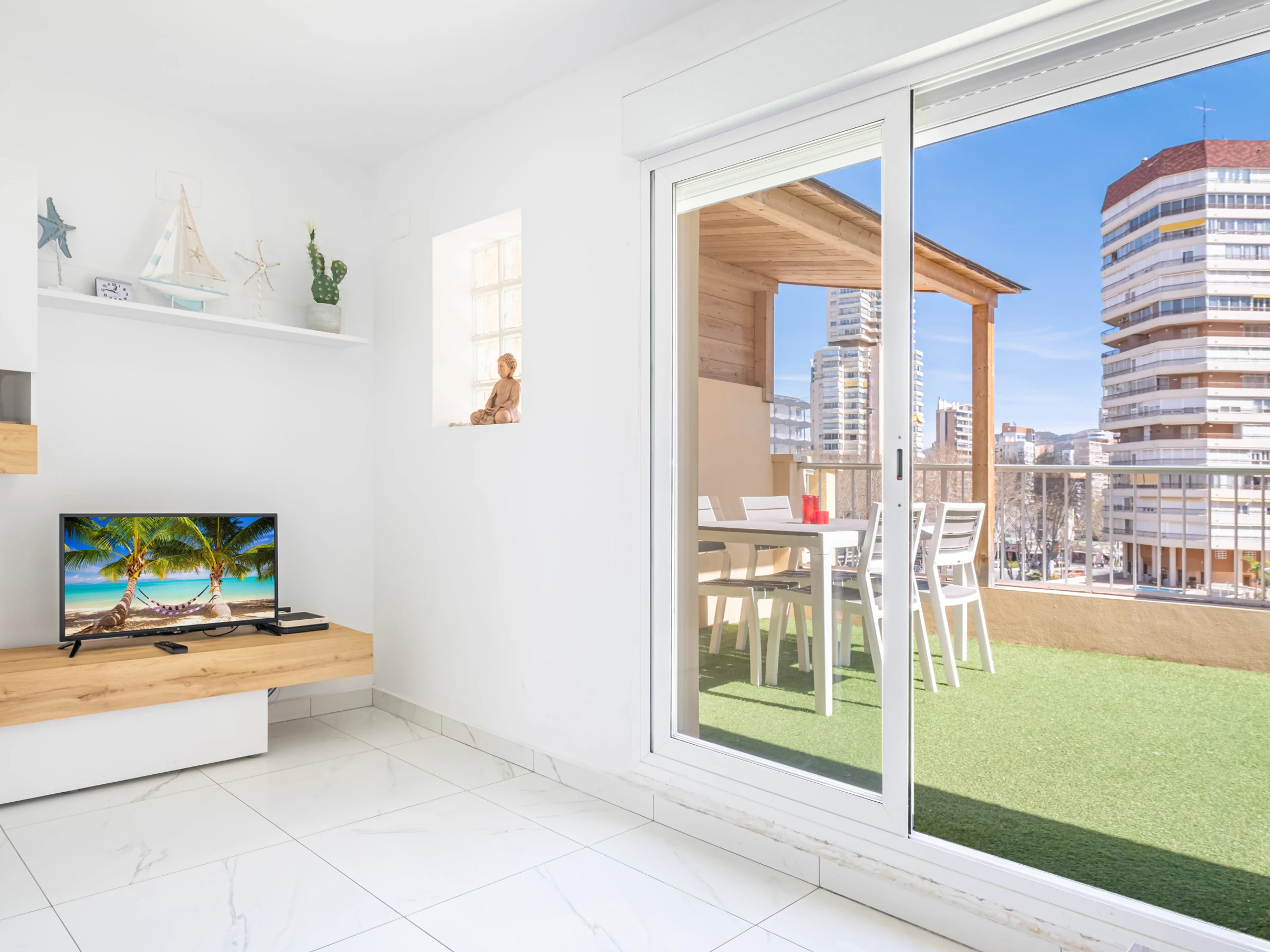 It is located 5 m from the sandy beach "Playa de Levante", 20 m from the bus station, surrounded by restaurants and bars, 200 m from the supermarket, 600 m from the city "Casco Antiguo / Old Town", 800 m from the thermal baths "Balneario Benicaldea", 900 m from the sandy beach "Playa del Mal Pas", 1 km from the sandy beach "Playa de Poniente", 2 km from the city m "Casco Antiguo / Old Town", 800 m to the "Balneario Benicaldea" hot springs, 900 m to the sandy beach "Playa del Mal Pas", 1 km to the sandy beach "Playa de Poniente", 2 km to the "Benidorm" train station, 2 km to the bus station "La EstaciĂłn Benidorm", 2 km from the ski slope "Cable ski aquatic", 2 km from the water park "Aqualandia", 3 km from the rock beach "Cala del Tio Ximo", 5 km from the countryside Golf course "Las Rejas Golf", 5 km from the "Terra Mitica" amusement park, 6 km from the "Villaitana Golf" golf course, 7 km from the "Aqua Natura" water park, 8 km from the "Zoo Terra Natura" amusement park ", 12 km from the natural park "Serra Gelada", 15 km from the lake "Pantano La Vila", 20 km from the river "Algar (Fuentes del Algar)", 30 km from the natural park "Puig Campana", 45 km from the station "Renfe Terminal Alicante" train station, 55 km from "El Altet Alicante" airport, 145 km from "Manises Valencia" airport and is located in a lively area next to the sea.