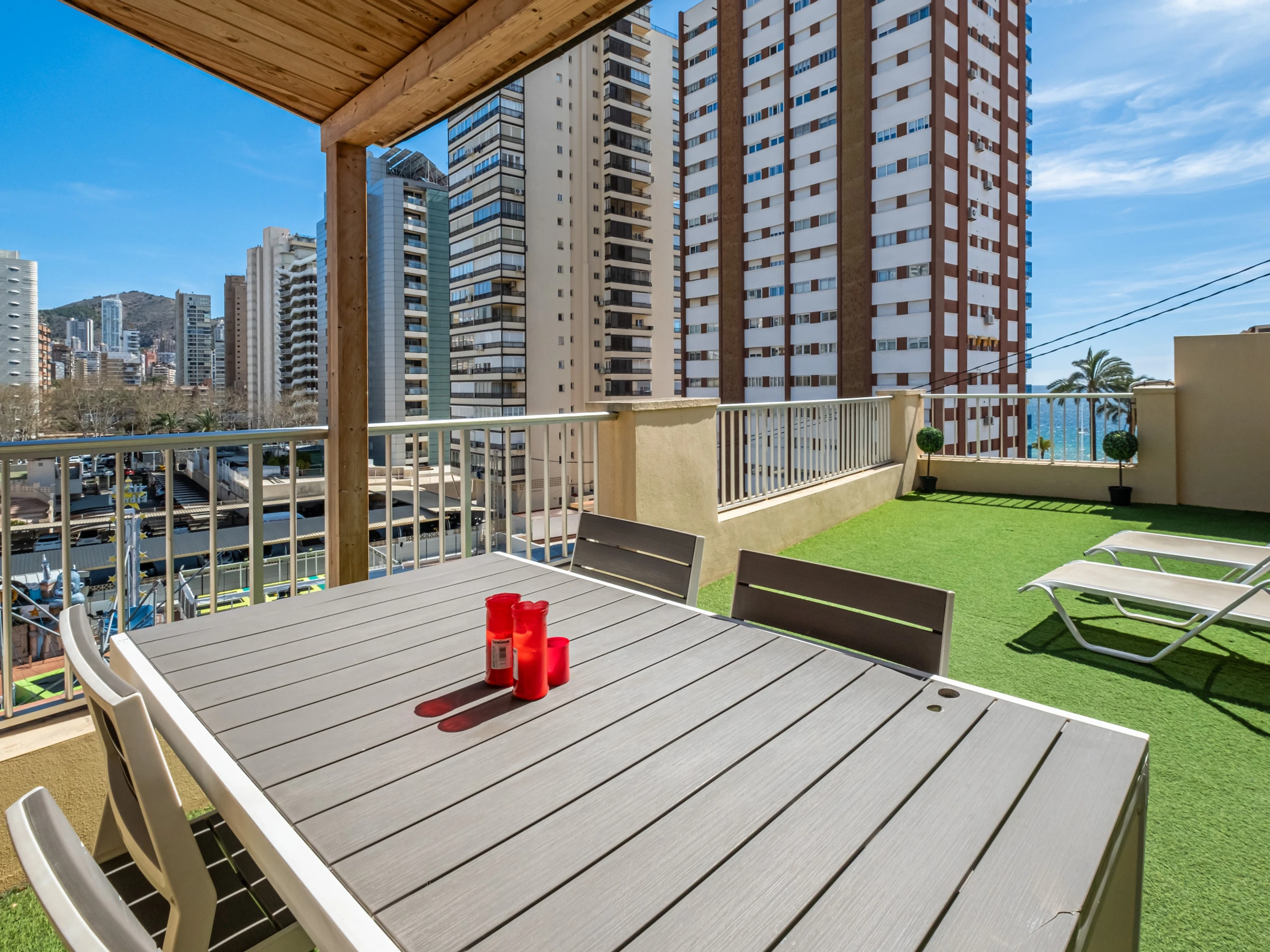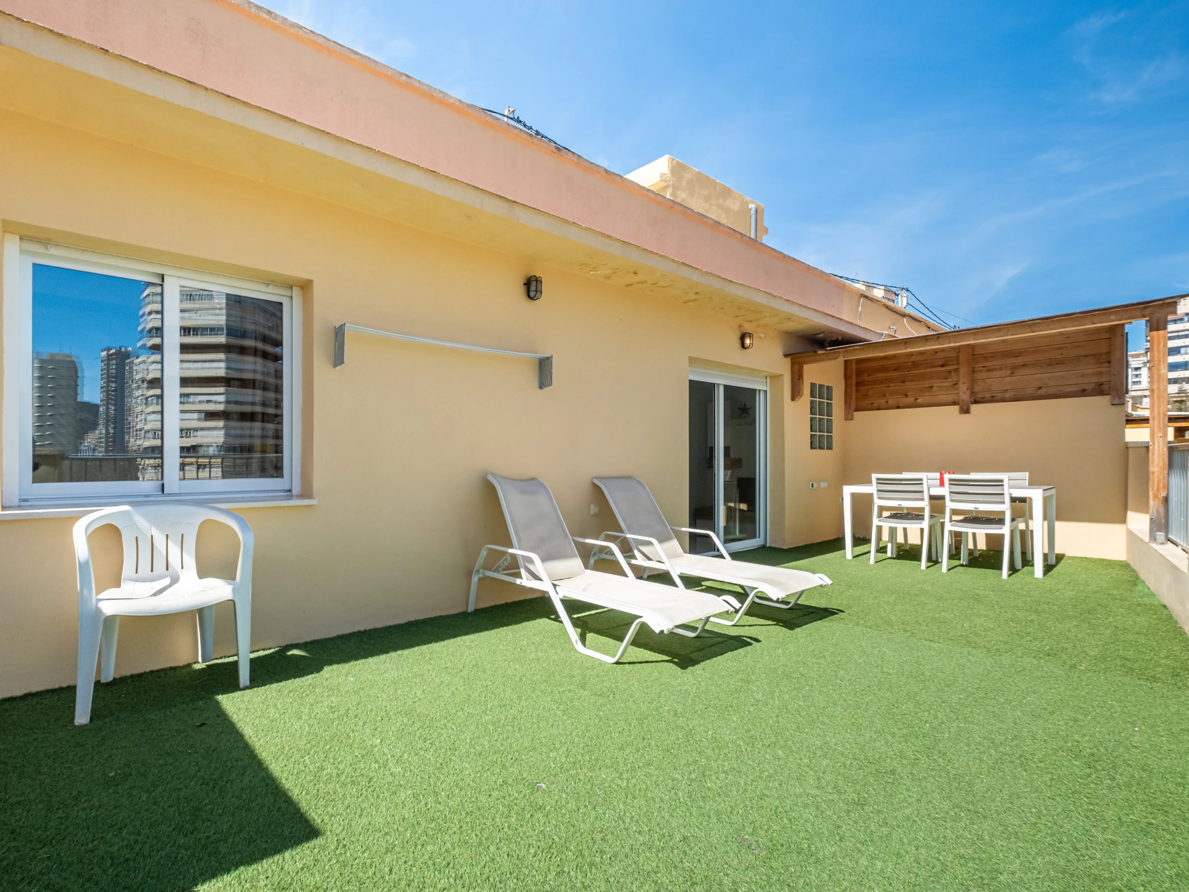 Penthouse apartment on the Levante beachfront, Benidorm, with direct access to the beach from the establishment. It has 2 bedrooms, two bathrooms with shower (1 en suite) and capacity for 6 people.