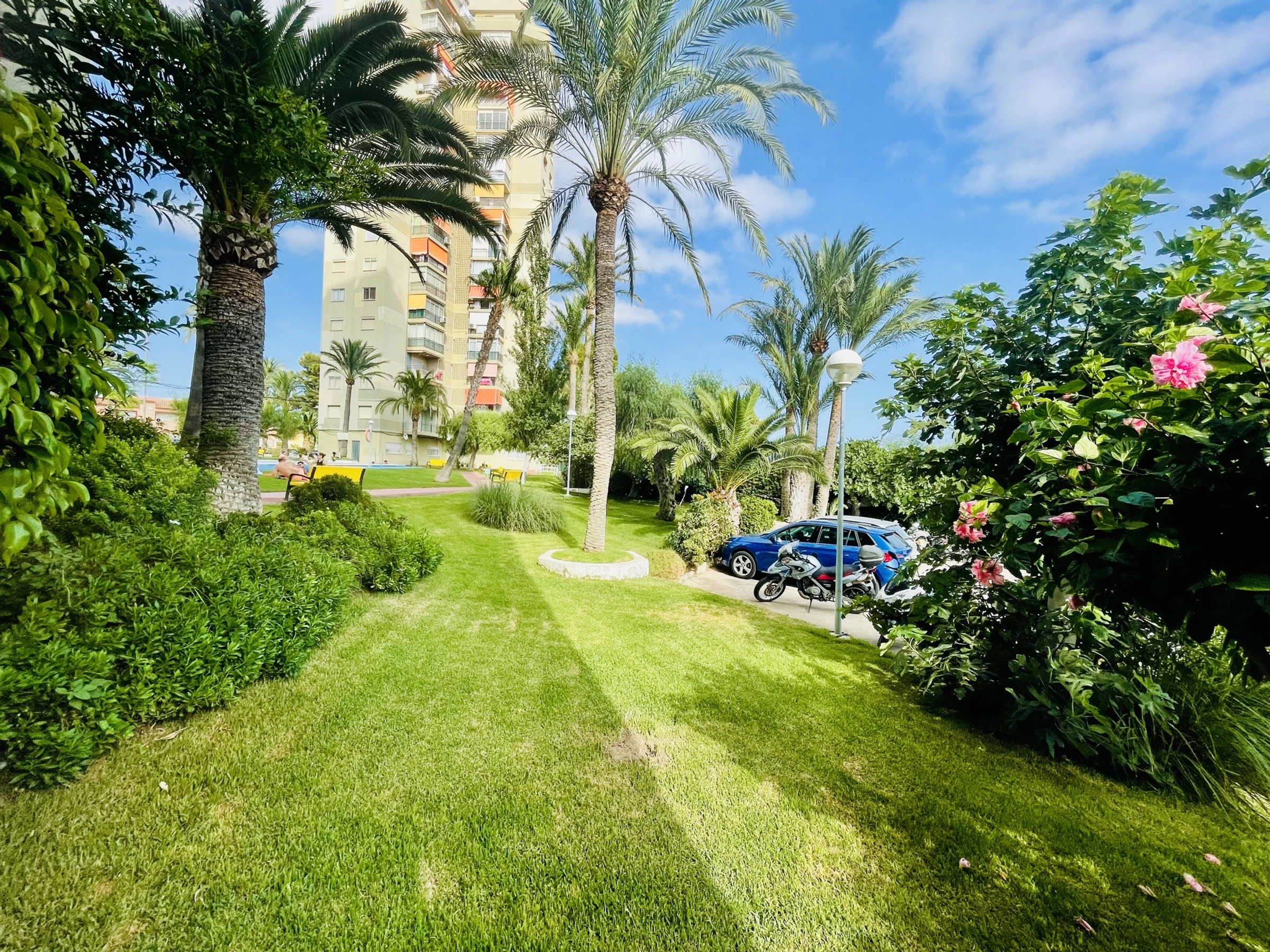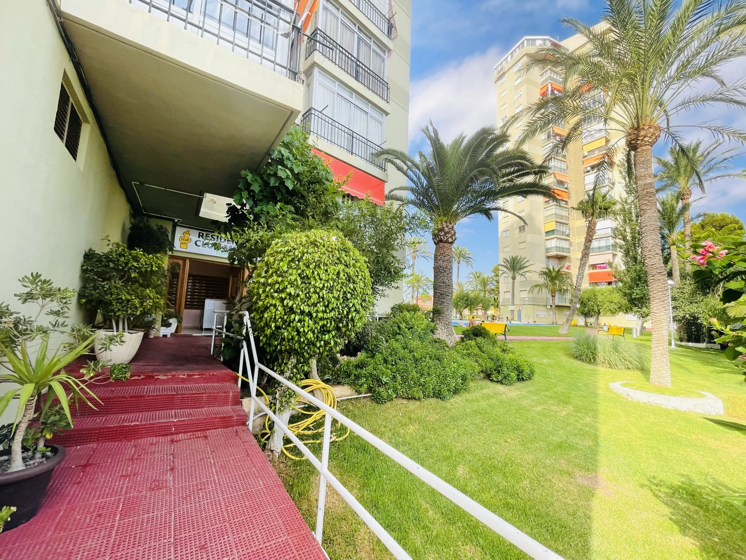 The building offers a garden, children’s play area, and communal pool + children’s pool—perfect for family fun.