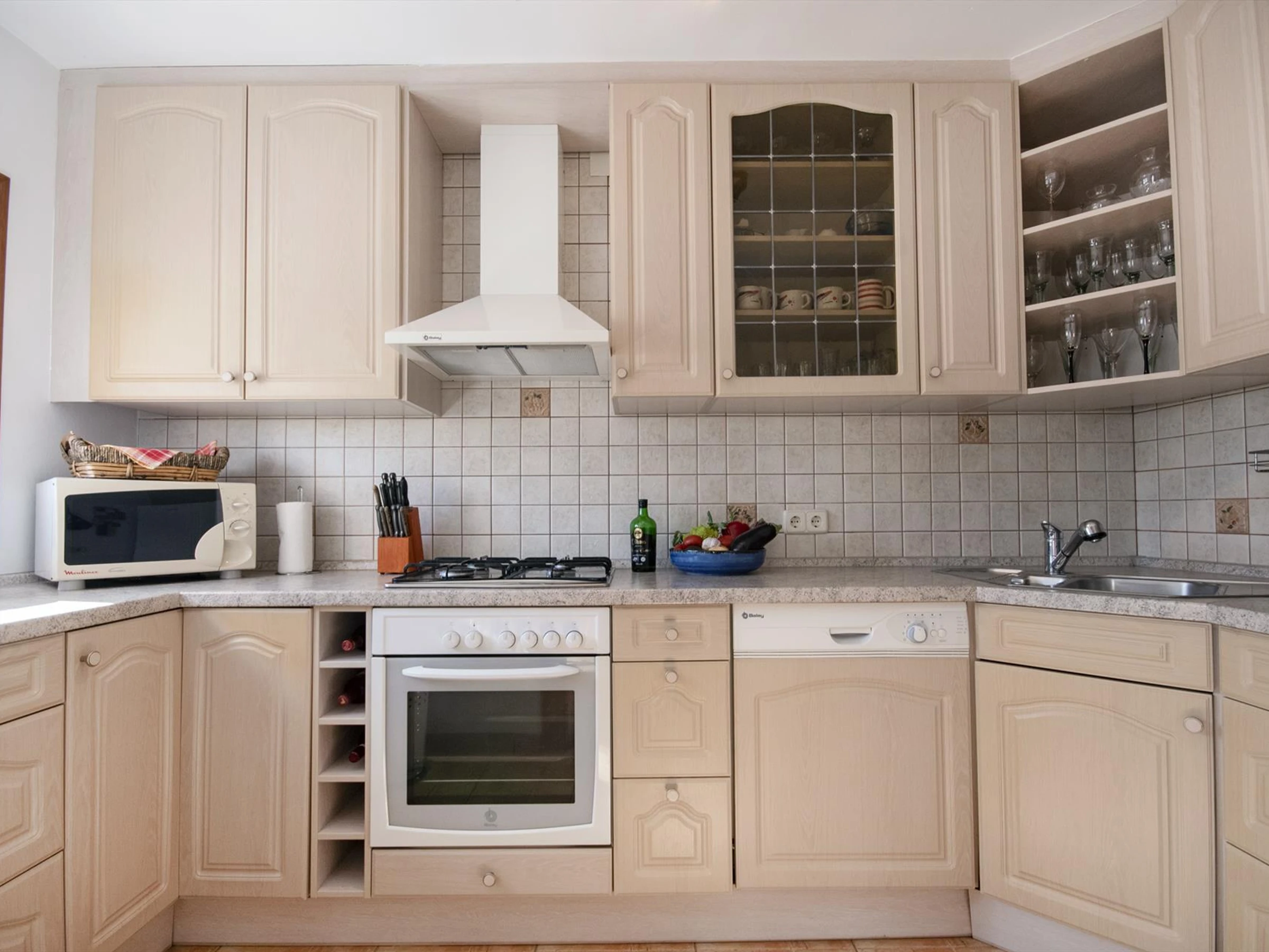 * kitchen with gas hob, electric oven, microwave, dishwasher,