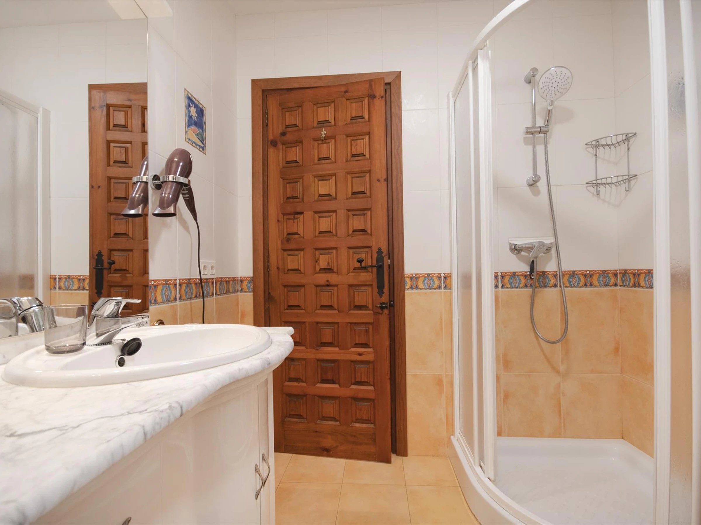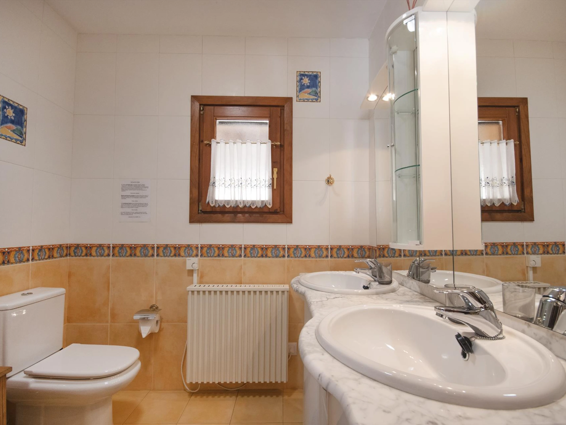 * bathroom with double washbasin, shower and toiletExterior of the villa