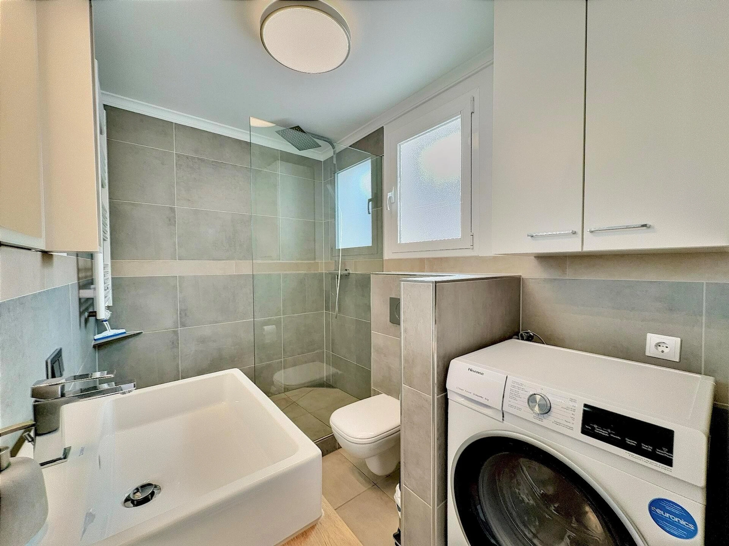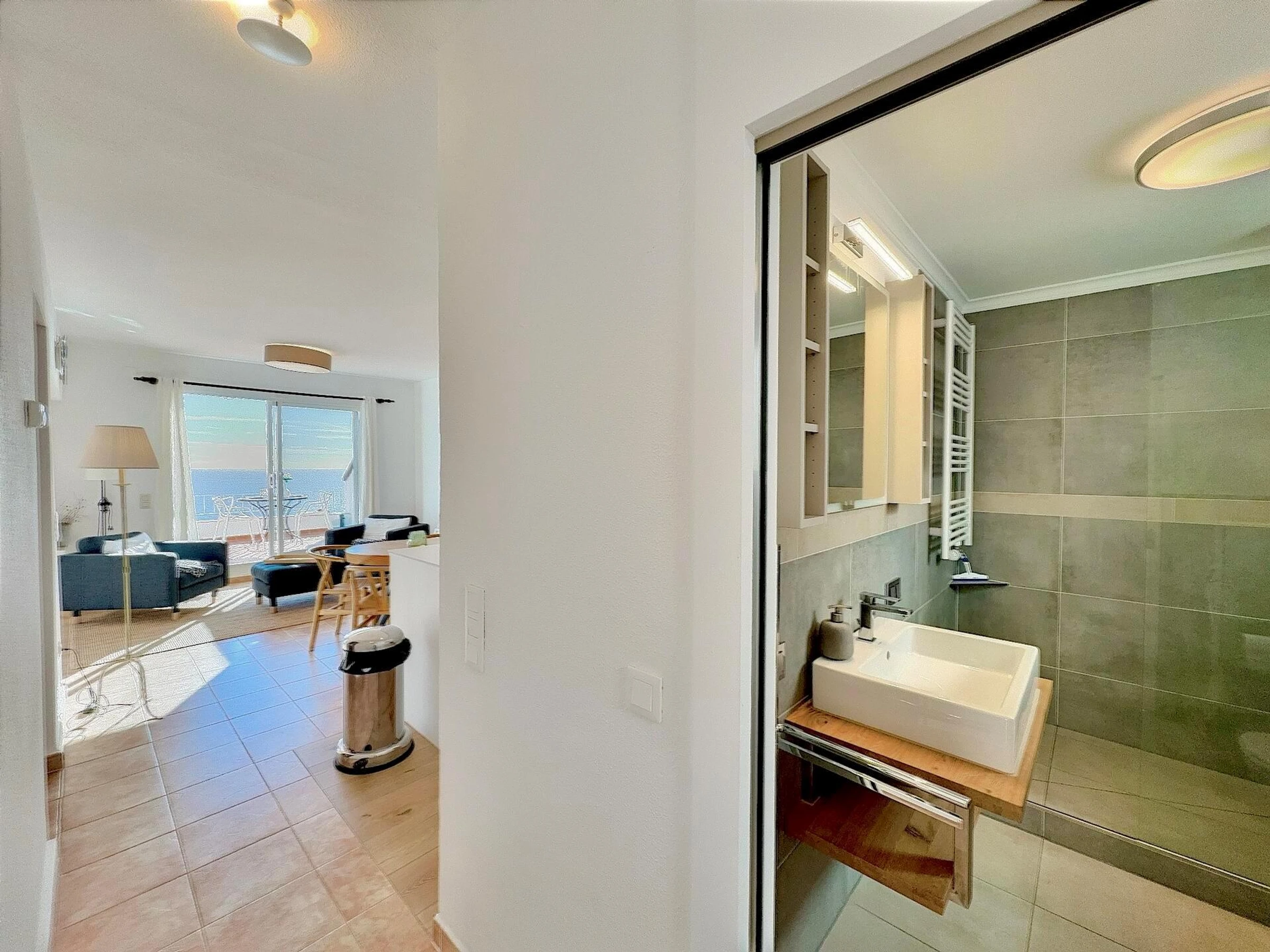 * bathroom with single washbasin and showerExterior of the apartment