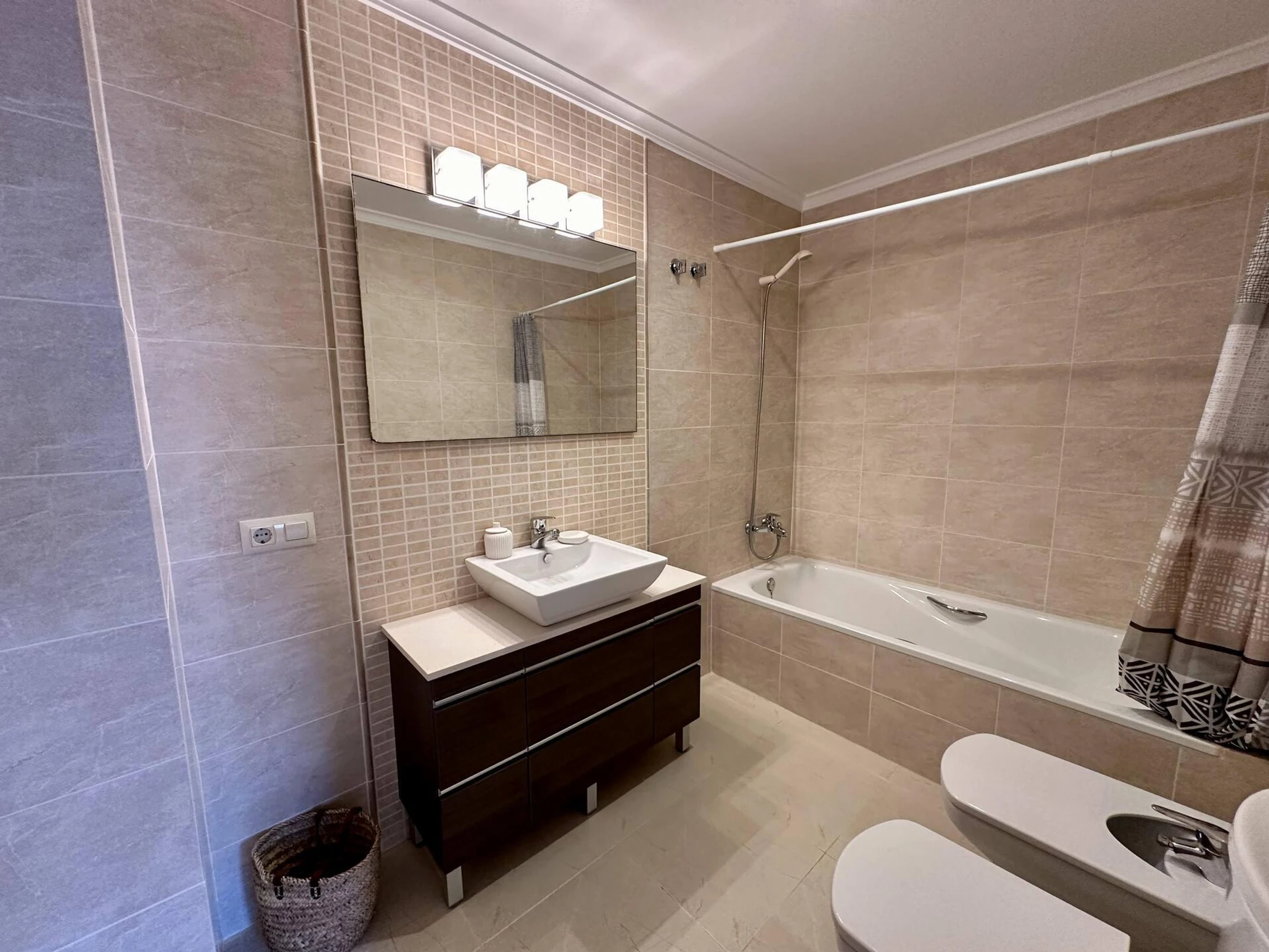 * bathroom with single washbasin and showerExterior of the apartment