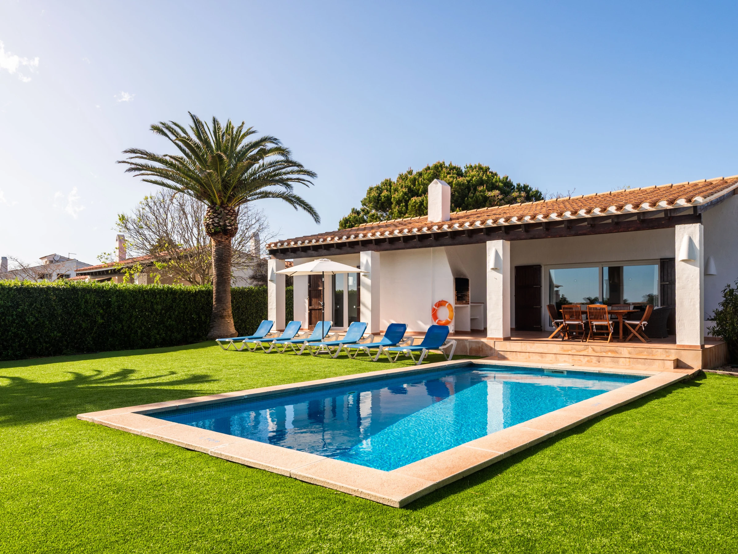 This charming family villa is located in Binibeca, an ideal family area situated by the sea. The property is fully equipped and offers a comfortable and welcoming atmosphere.