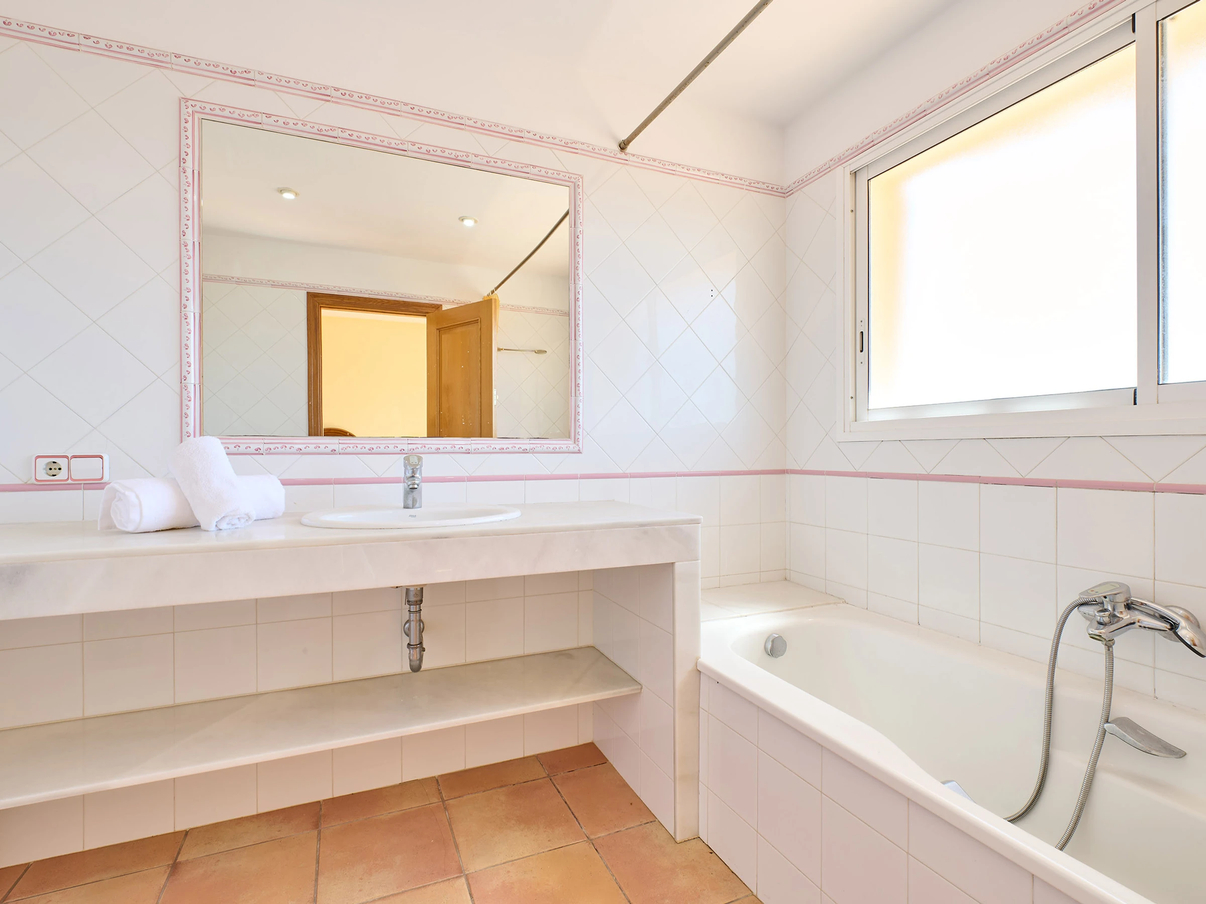 The house is divided into 2 floors. On the upper floor there are 3 double bedrooms: one with a double bed (suite with bathtub), and the other two with 2 single beds in each one. Bathroom with a shower.