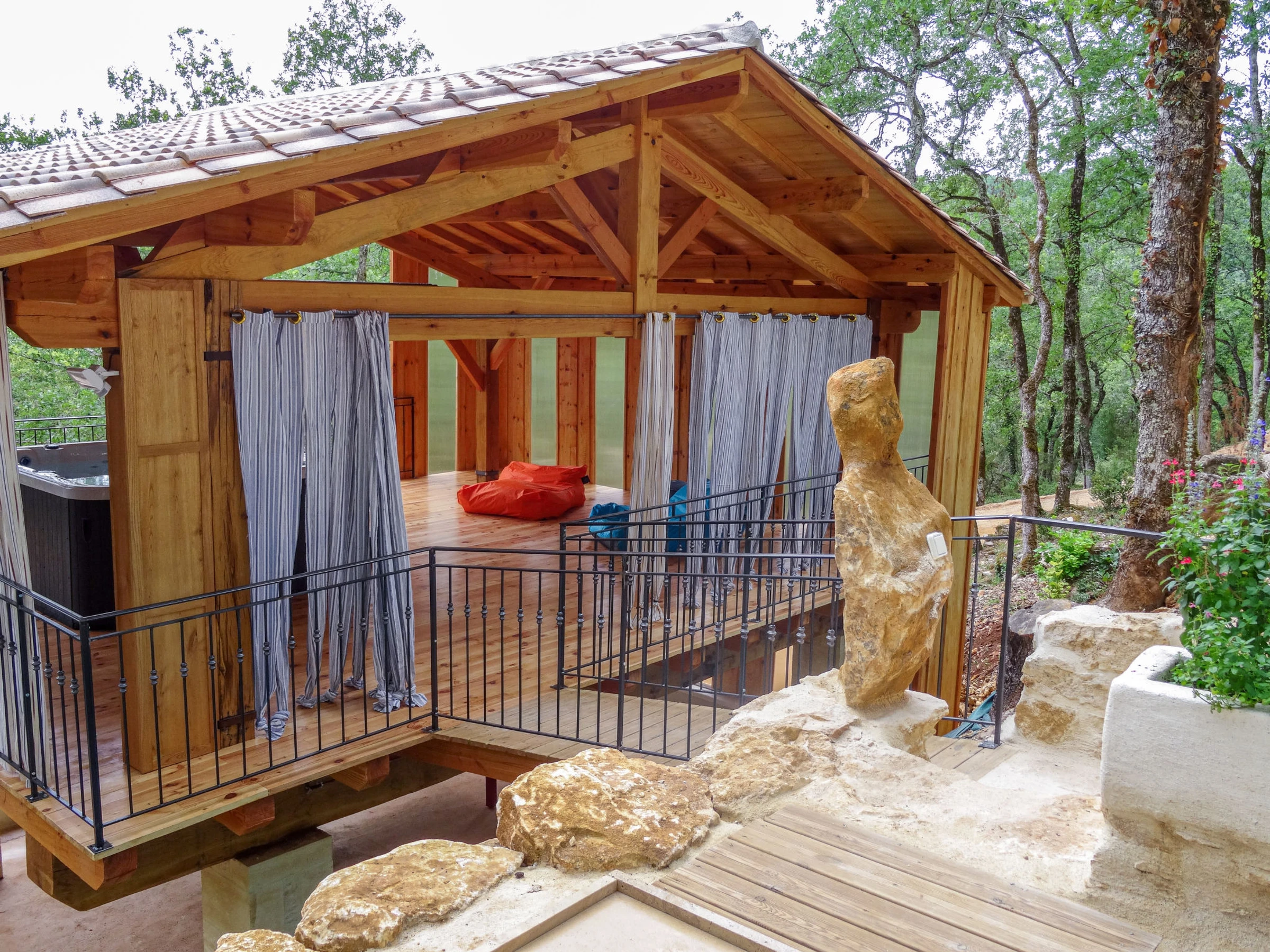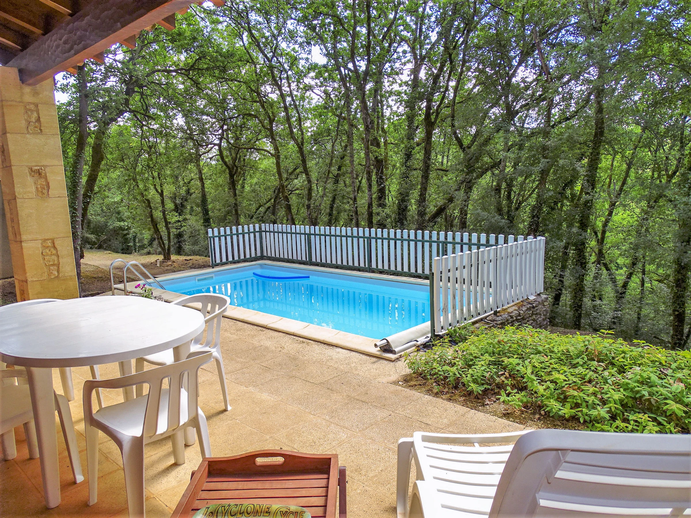 Farm estate "Le Mayne Le Sorbier". 4 houses in the residence. 2.7 km from the centre of Blanquefort-sur-Briolance, 7 km from the centre of Lacepelle-Biron, 16 km from the centre of Fumel. For shared use: property 30 ha, terraced garden (not fenced). Private: swimming pool (6 x 3 m, depth 110 cm, seasonal availability: [hidden] - [hidden] with shutter cover. In the complex: table tennis, table football. 100 m long motor access (via unmade road). Parking at the house on the premises. Shop 7 km, supermarket 16 km, bus stop "Fumel-Place du Postel" 15 km. Golf course (18 hole) 30 km, riding stable 12 km, fishing possibilities 800 m. Nearby attractions: Château de Biron 8 km, Château de Bonaguil 10 km. Please note: the owner lives on the same property.