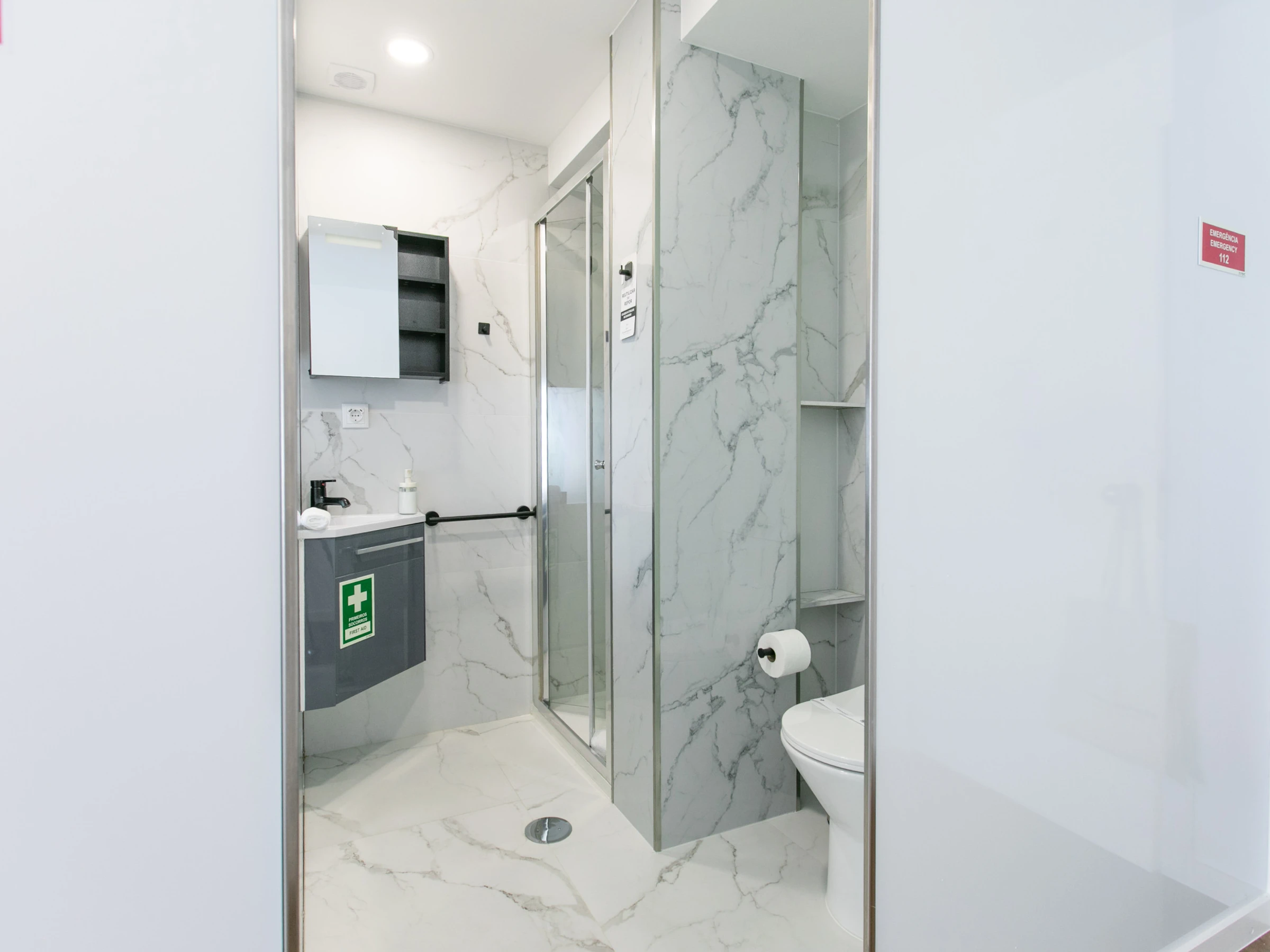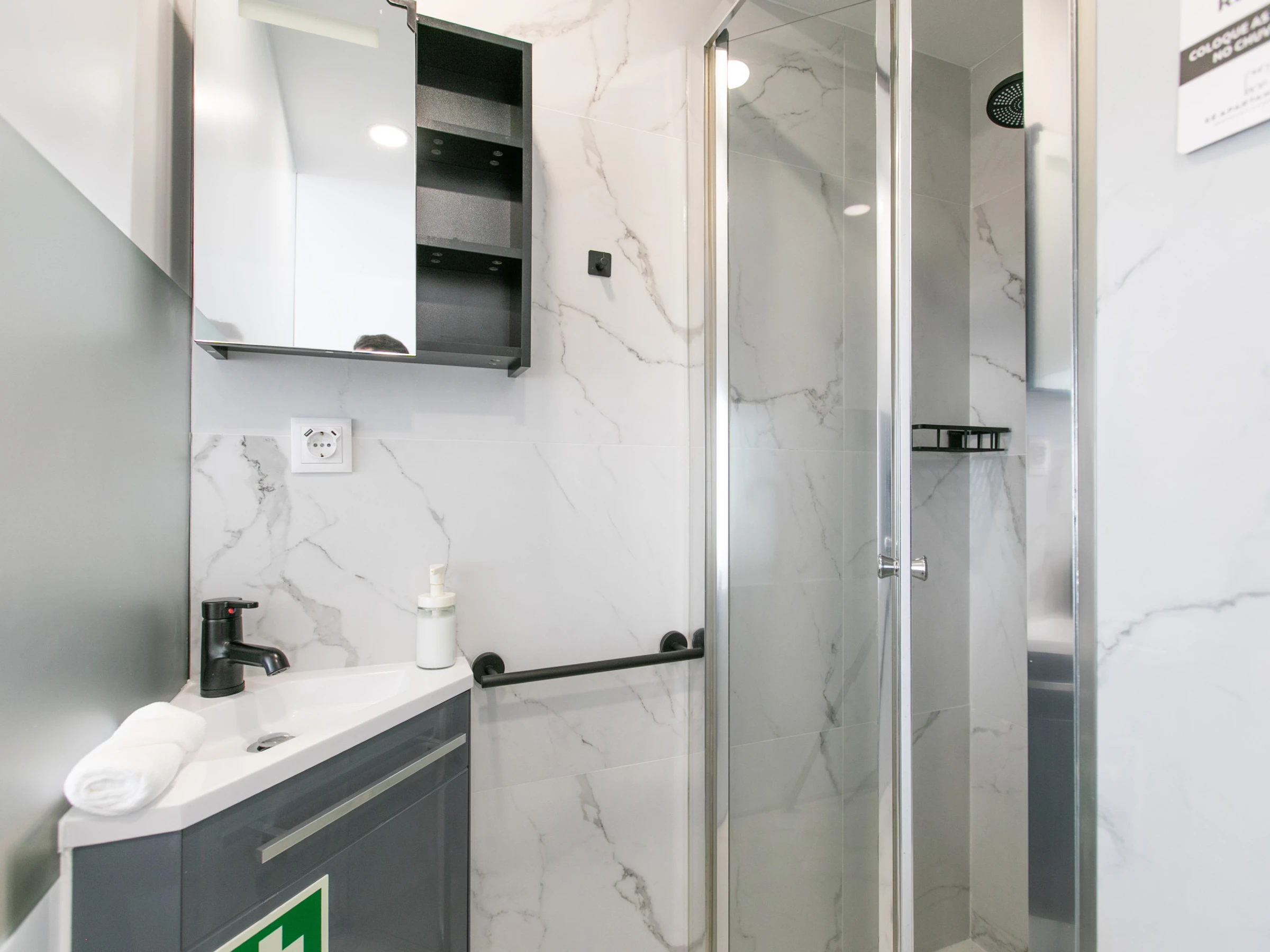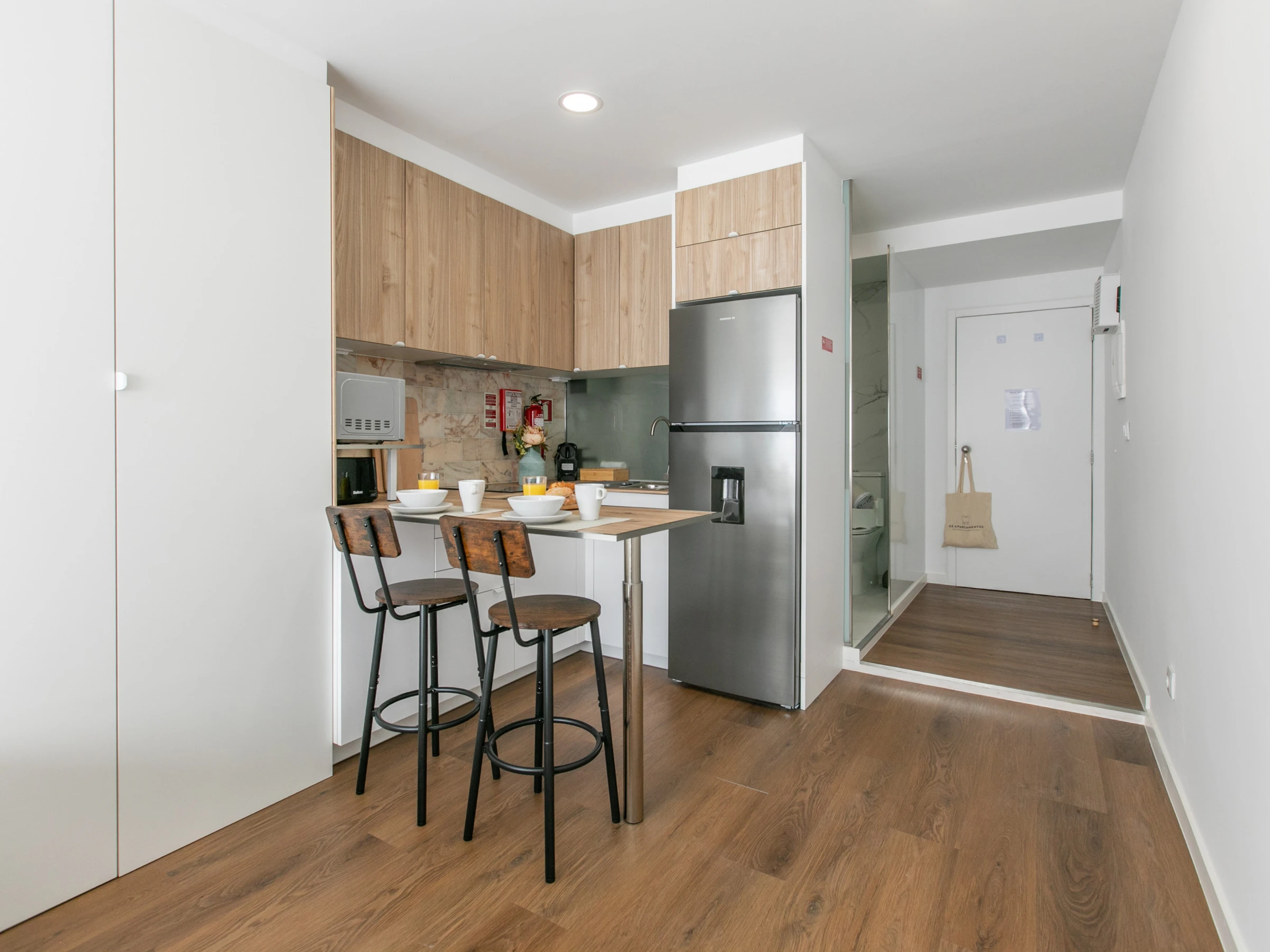 The apartment also offers a complete bathroom with a shower, ensuring convenience and comfort throughout your stay.