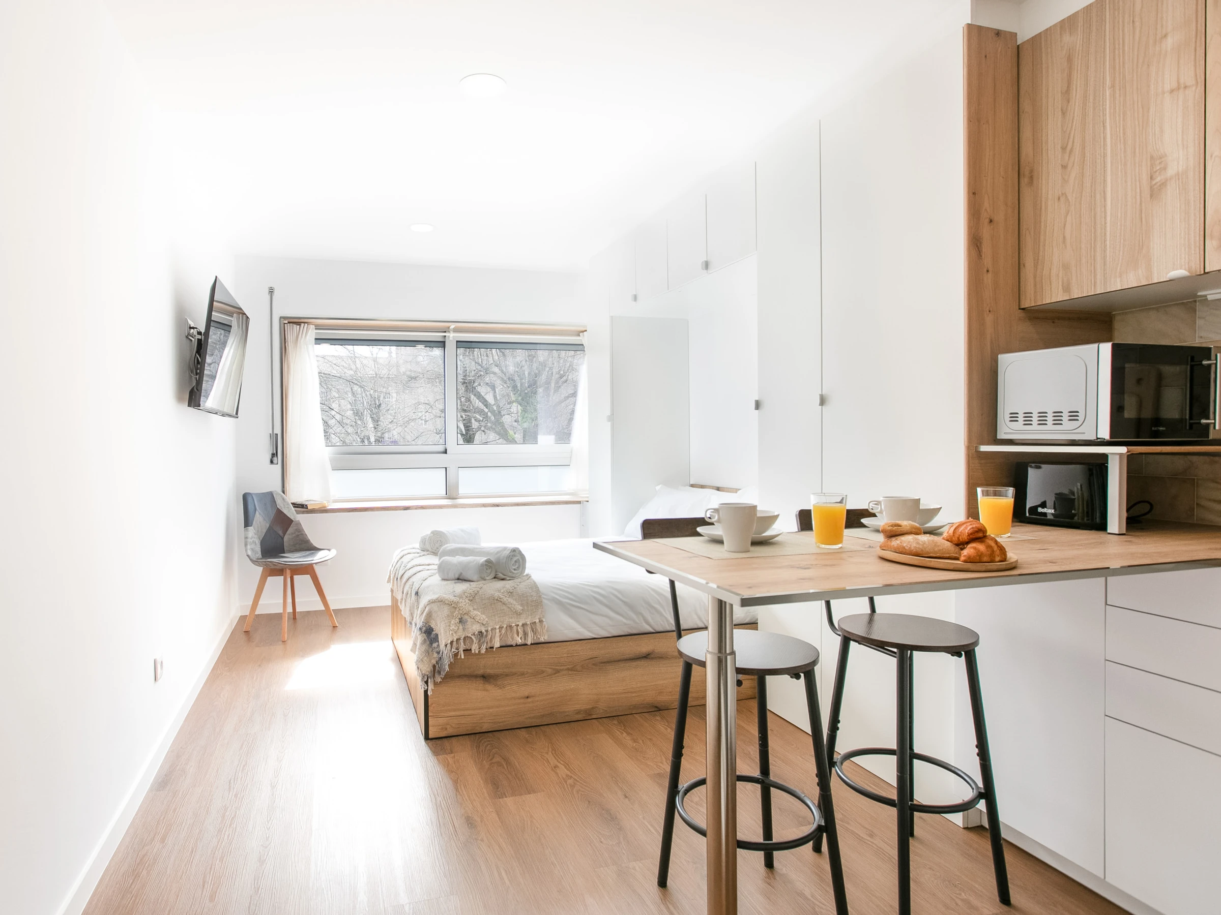 Lafayette Apartments are located in the heart of Braga’s city centre, on the iconic Avenida Central, offering the ideal setting for a comfortable and memorable stay. With a modern and welcoming design, the studios have been thoughtfully designed to provide everything you need to feel at home.