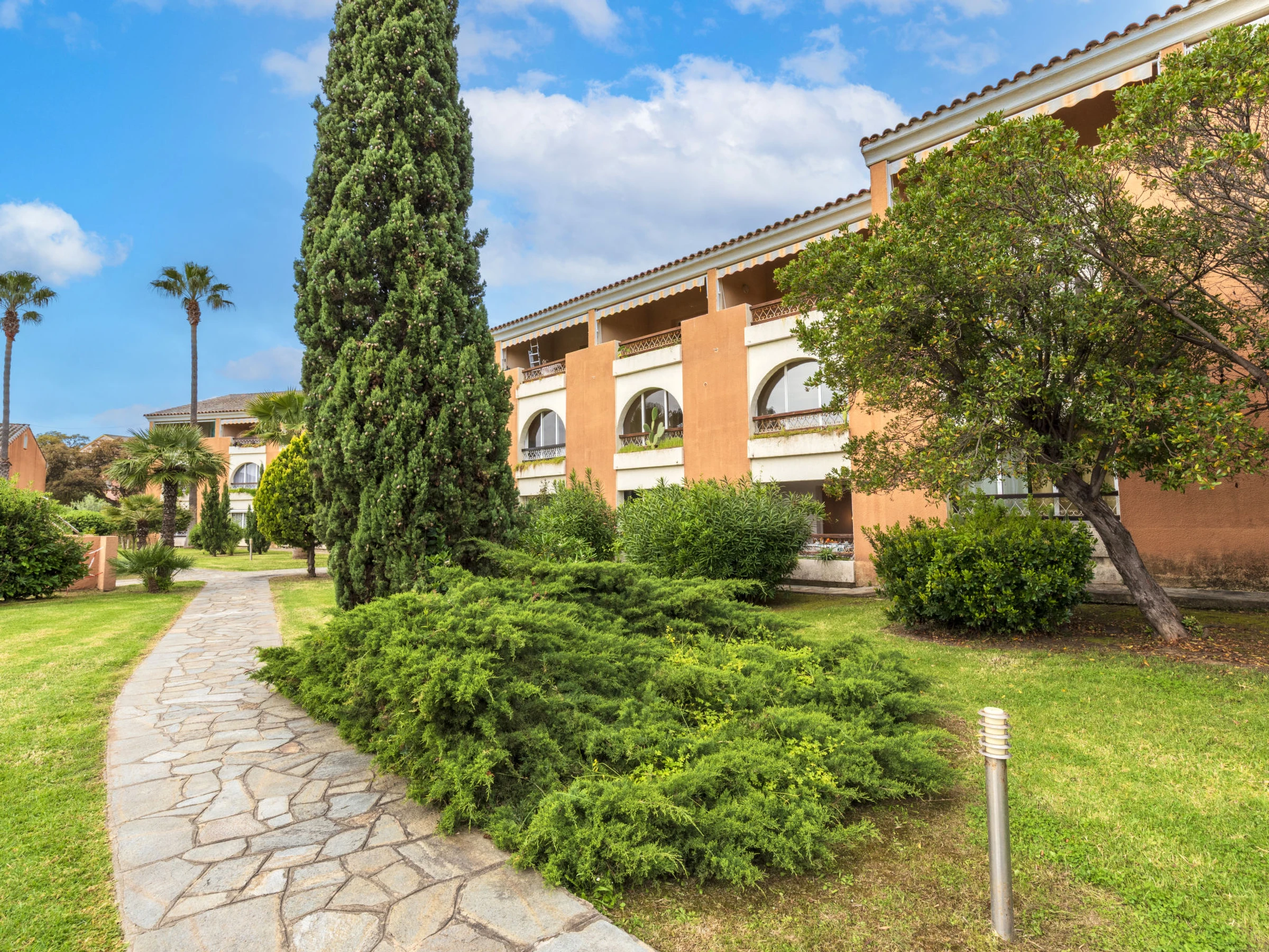 Bravone: Residence "Sognu Di Mare". 4 km from the centre of Bravone, 14 km from the centre of Aleria, 58 km from the centre of Bastia, 350 m from the sea, 350 m from the beach. For shared use: well-kept garden with lawn and plants, 2 swimming pools (24 x 10 m, seasonal availability: [hidden] - [hidden] Children's pool, terrace, children's playground. In the complex: table tennis. Central parking spaces. Shop 5 km, supermarket 2.2 km, restaurant 600 m, bus stop 2.7 km, sandy beach 350 m, diving center 2 km. Riding stable 3 km. Nearby attractions: Musée Aleria 15 km. Hiking paths: Vallée de Bravone, Pont D'Alisu 27 km. Please note: car recommended.