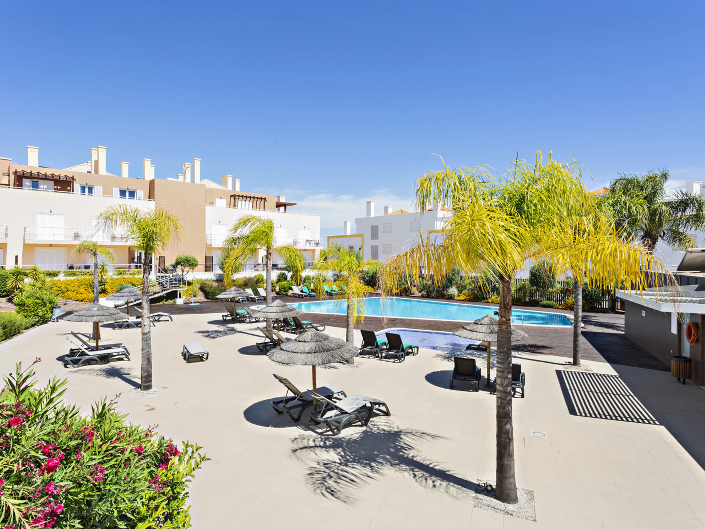 It offers two swimming pools, one for adults and one for children, beautiful green spaces and is just 4 minutes walk from the walkway - where you can enjoy a breathtaking walk along the Ria Formosa - restaurants, cafes and the ferry pier to the beach of Cabanas de Tavira.
