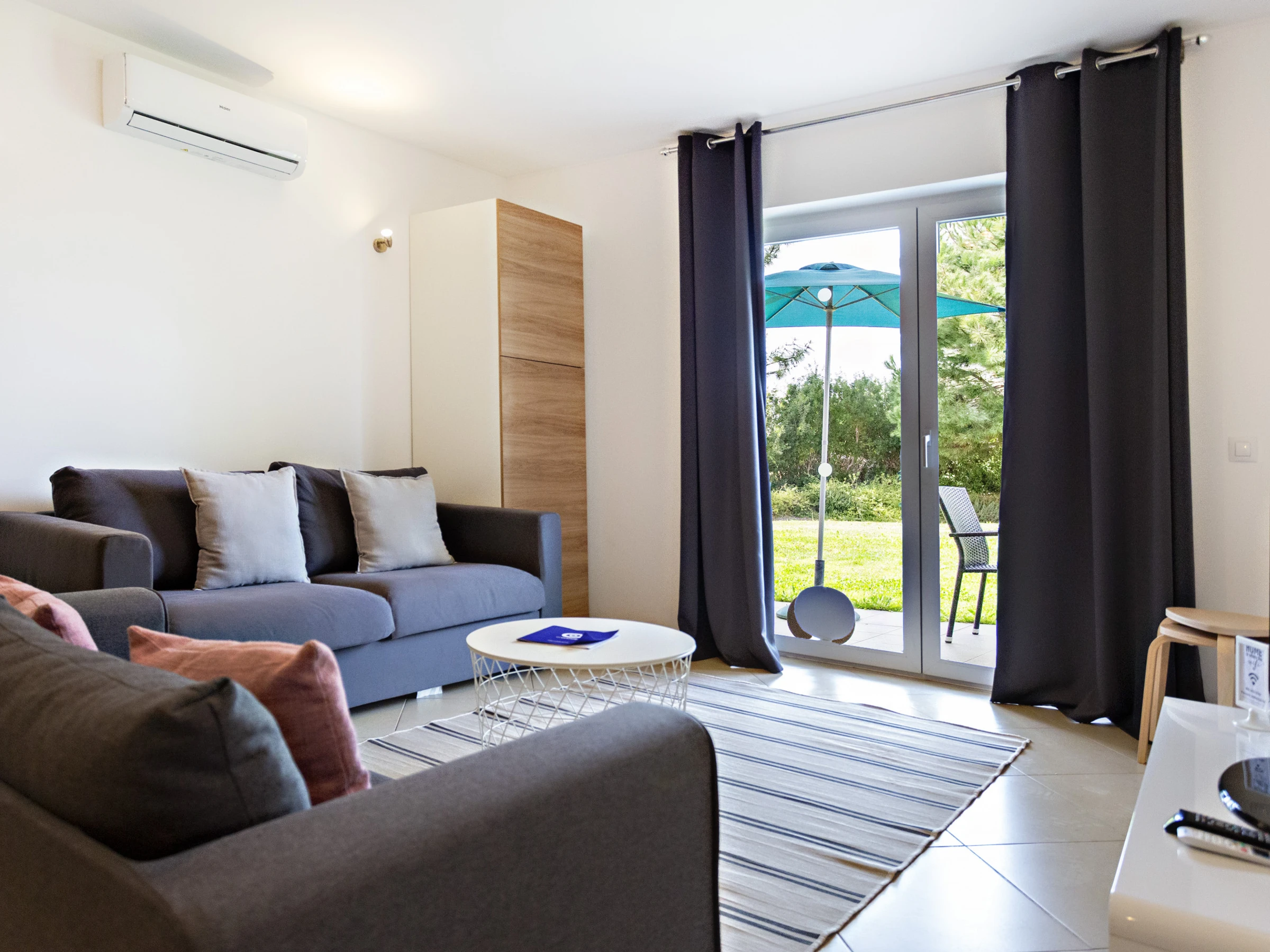 With a fully equipped kitchen in open space with living and dining area, 1 bathroom with bath and a bedroom, flat 1-1F also has wifi, air conditioning and a balcony with direct access to a common garden, fantastic, and ideal to enjoy the sun or the children can play and create unforgettable memories!