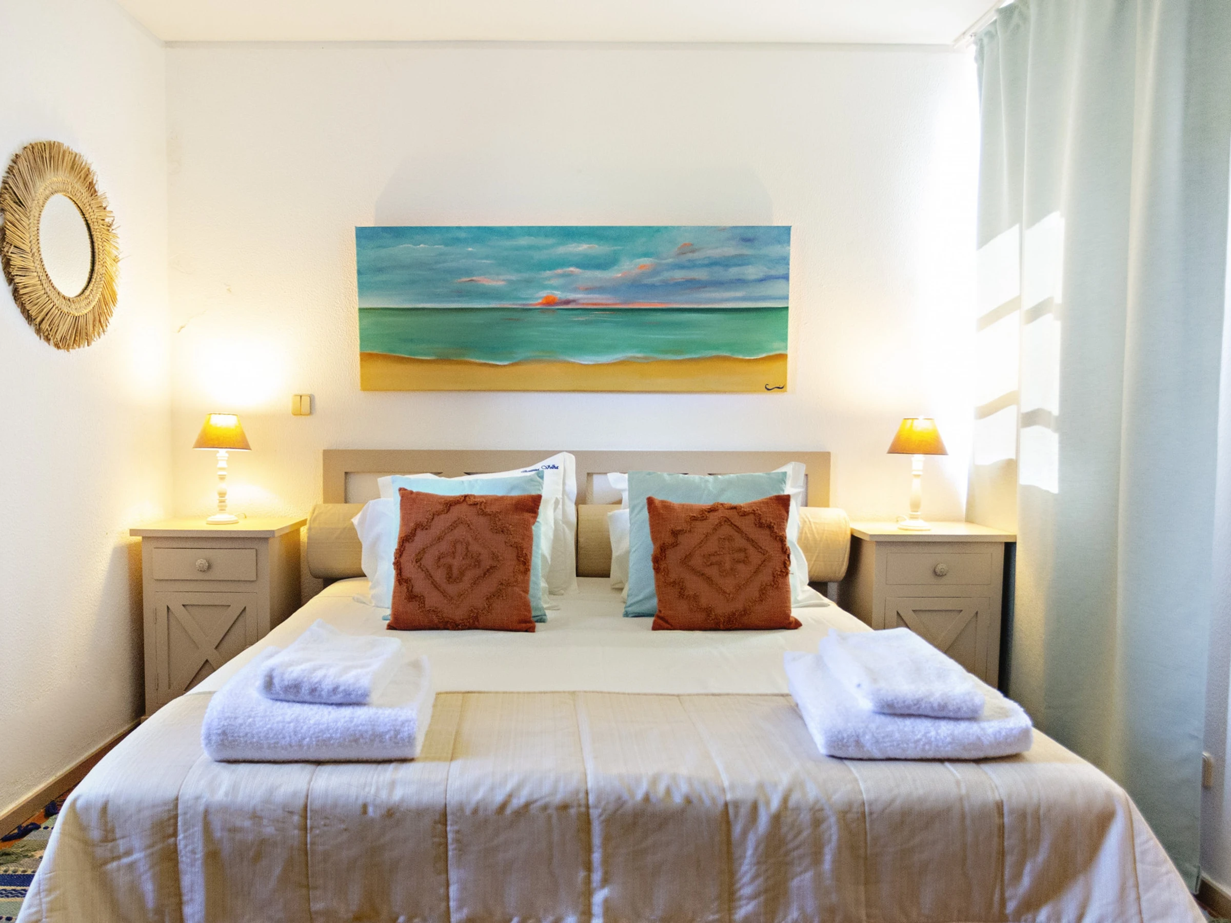 On the first floor there is a bedroom, with wardrobe and mini bar and even a balcony with table and chairs where you can enjoy good moments of leisure! On the first floor there is also a complete bathroom and another bedroom with 2 single beds. It is possible to access the terrace where in your horizon you can enjoy the sea view!
