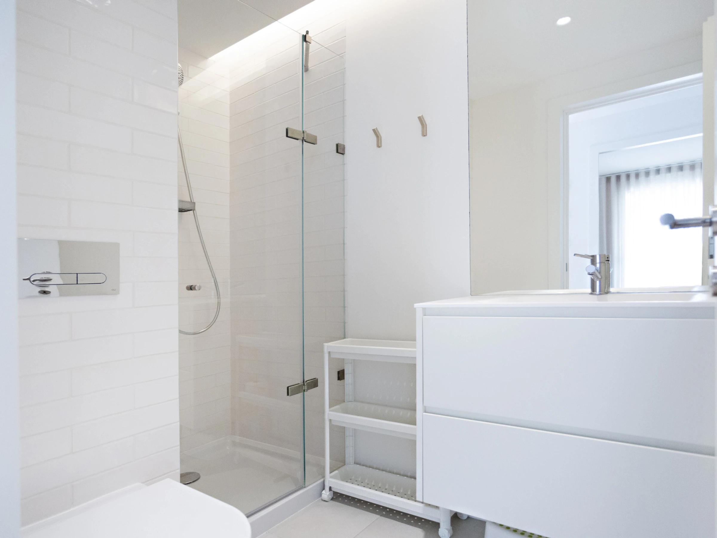 The apartment features two bedrooms, one of which is a suite with a private bathroom. The second full bathroom serves the other bedroom. The fully equipped open-space kitchen seamlessly integrates with the living room, creating a cozy and functional environment, perfect for couples, families, or friends. Accommodating up to 4 people, the apartment offers all modern amenities, including international TV channels, high-speed internet, air conditioning, and a balcony overlooking the pool with an outdoor dining area. Guests can also enjoy the shared condominium pool, gym, and garage.