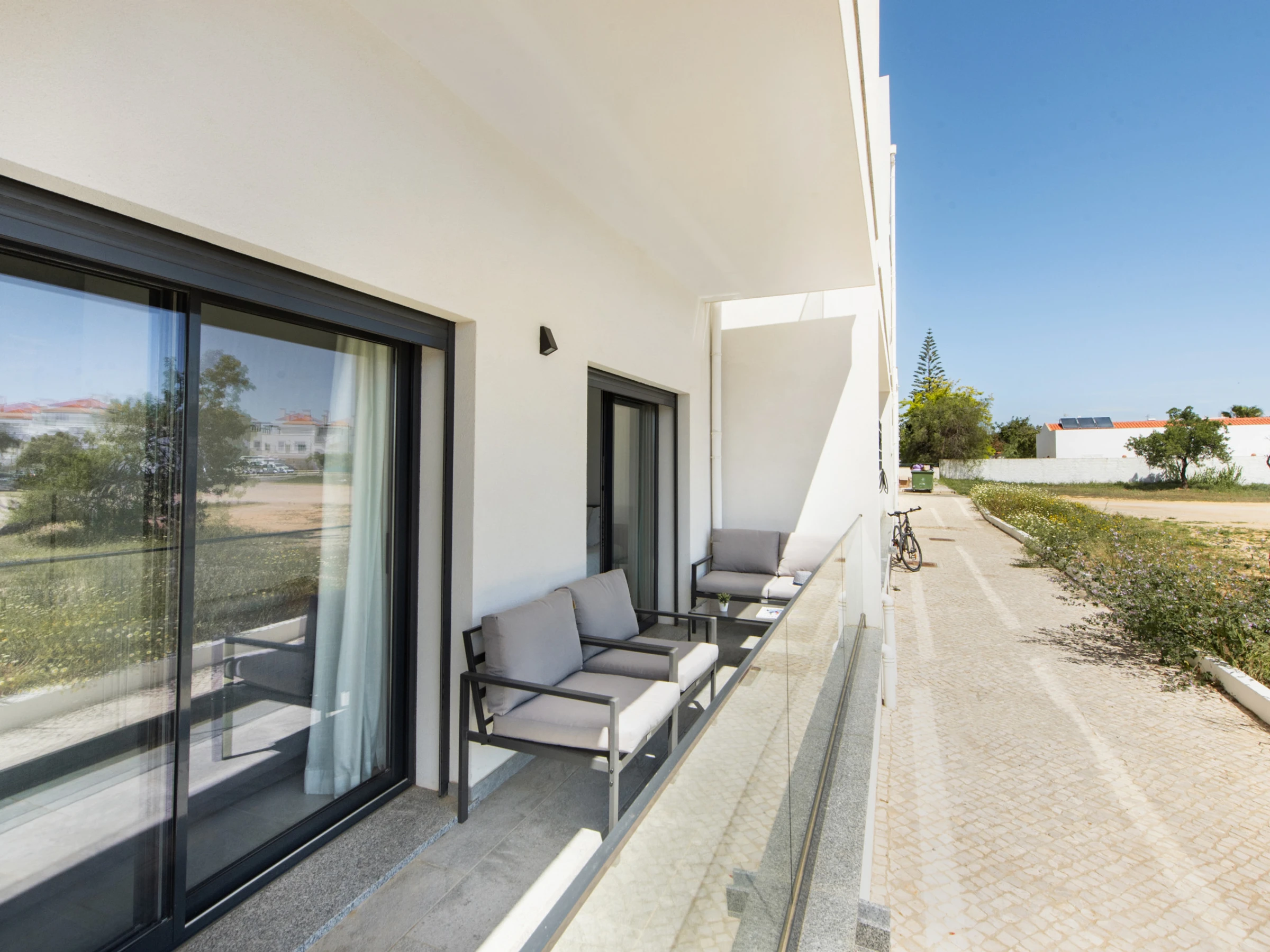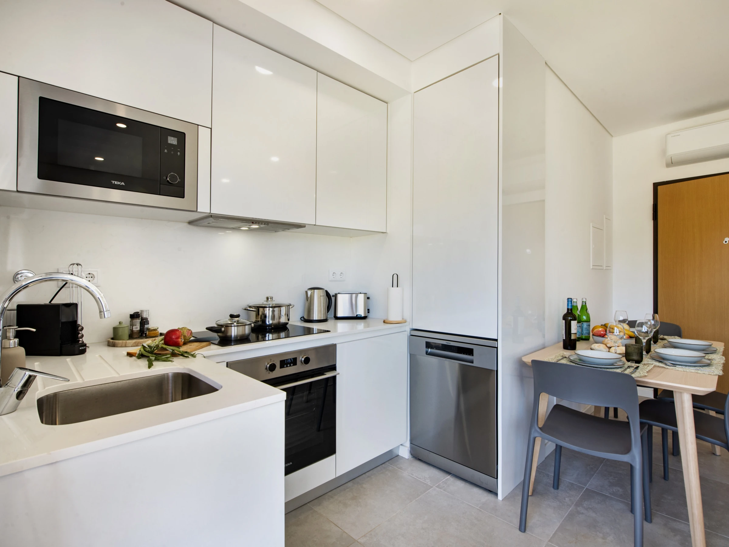 Ideal for two people, it features a cosy bedroom, bathroom with spacious shower, fully equipped kitchen and a bright open-plan living area with direct access to a glass balcony - perfect for enjoying natural light and the Algarve climate, even with some exposure.