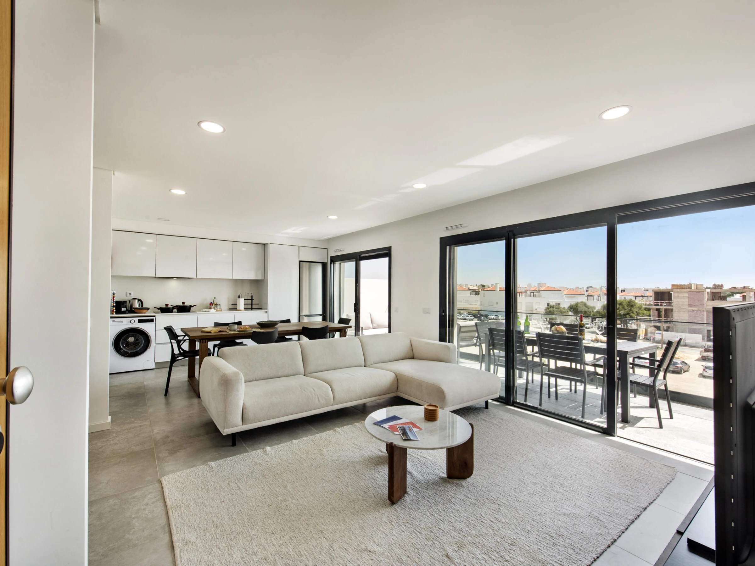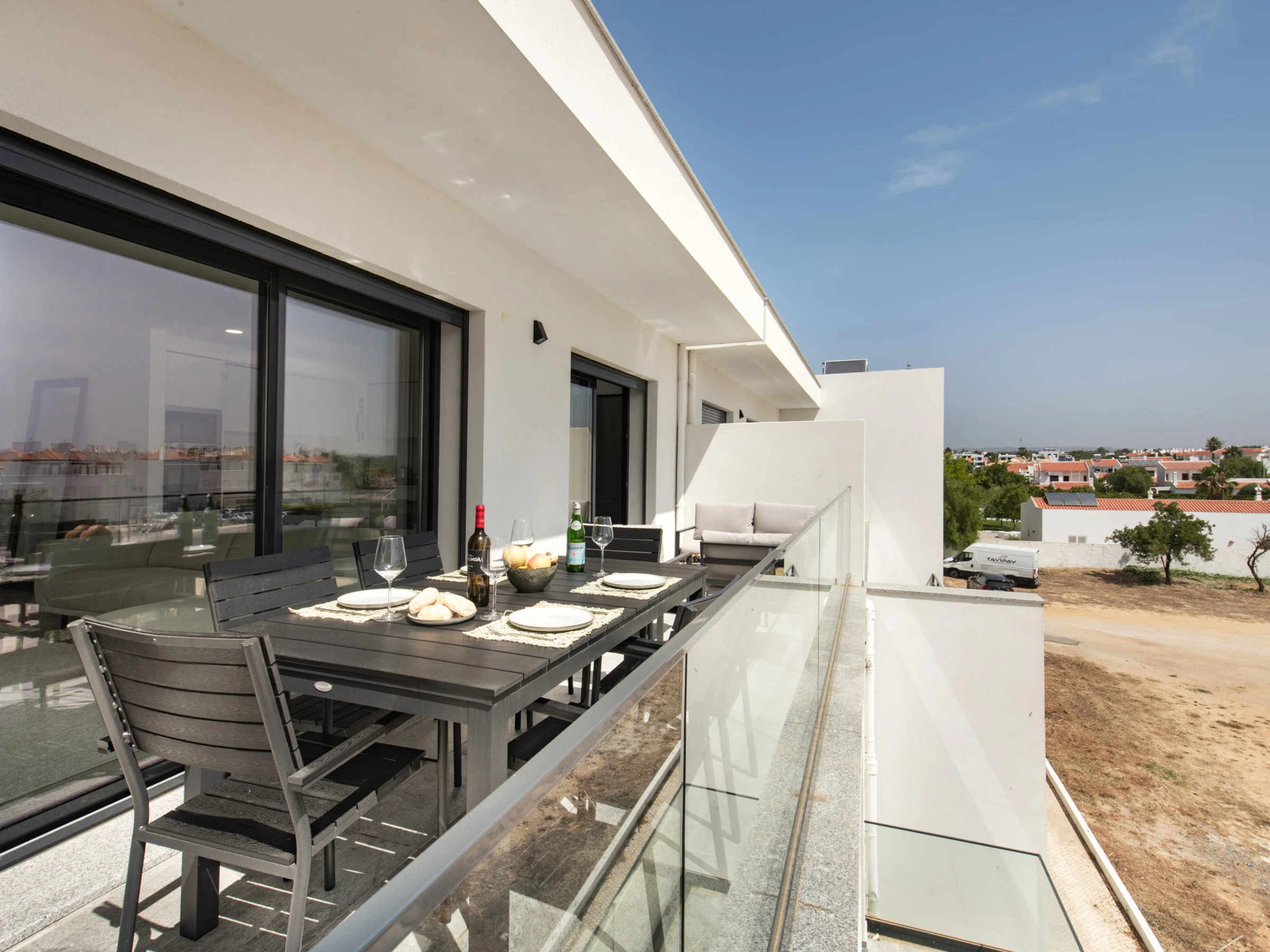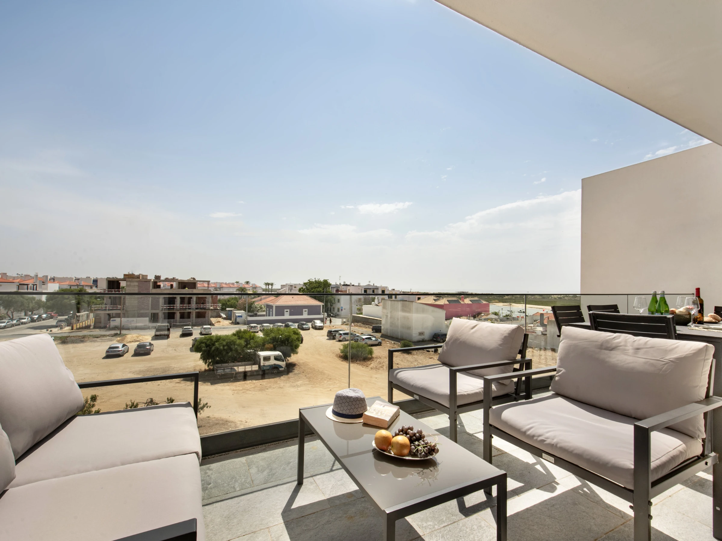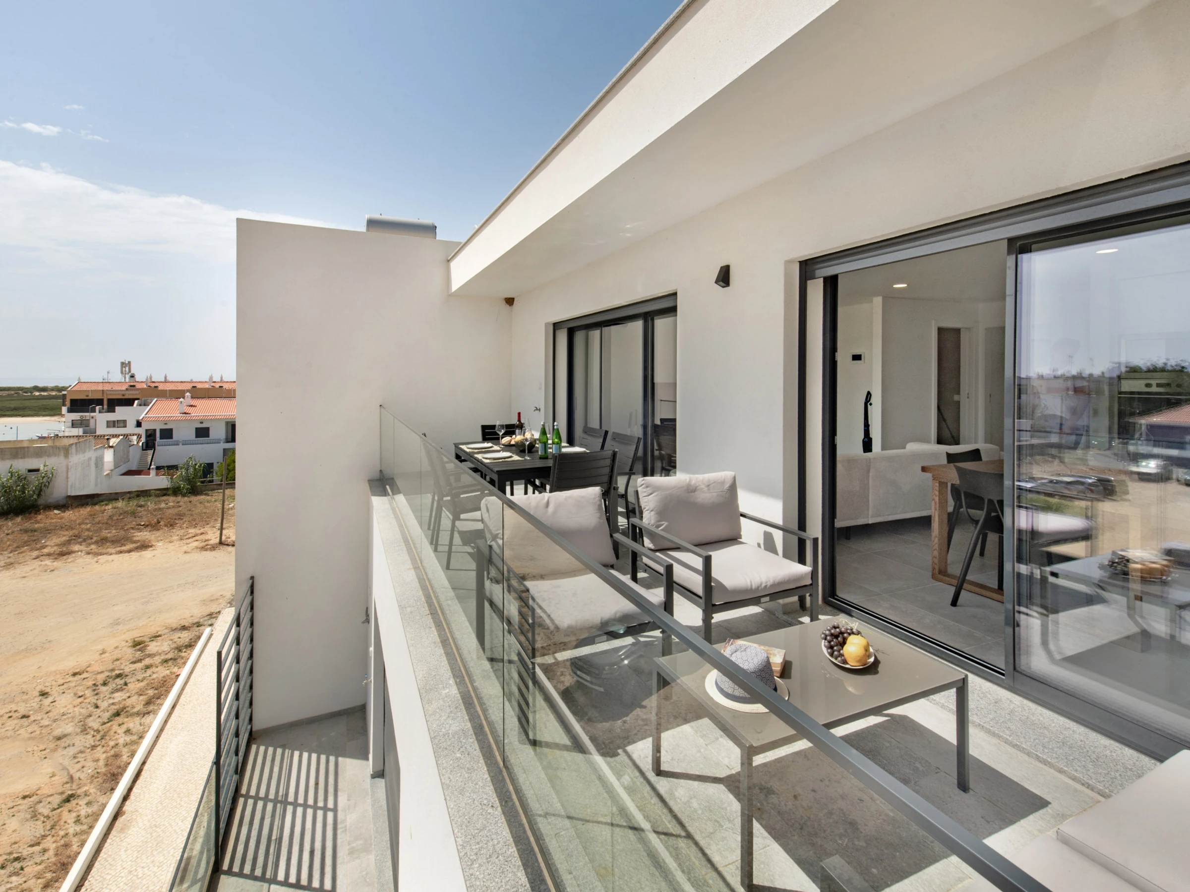 The apartment has two balconies: one next to the resting areas, with sunbeds to enjoy the sun peacefully, and another in the living room/kitchen area, equipped with a dining table and armchairs - perfect for enjoying the Algarve climate at any time of the day.