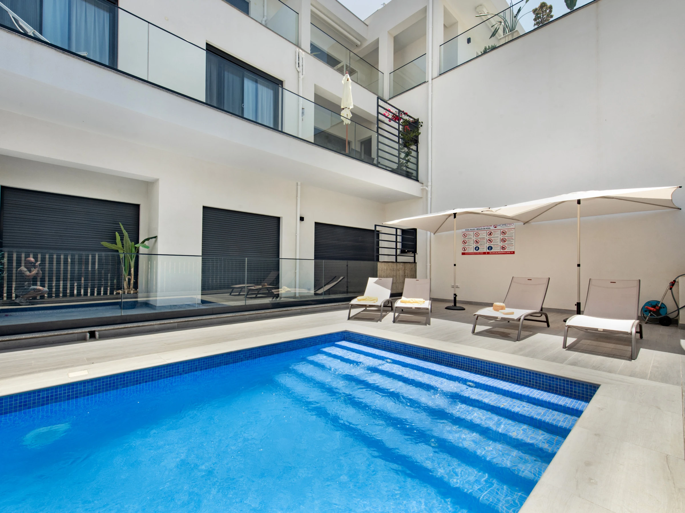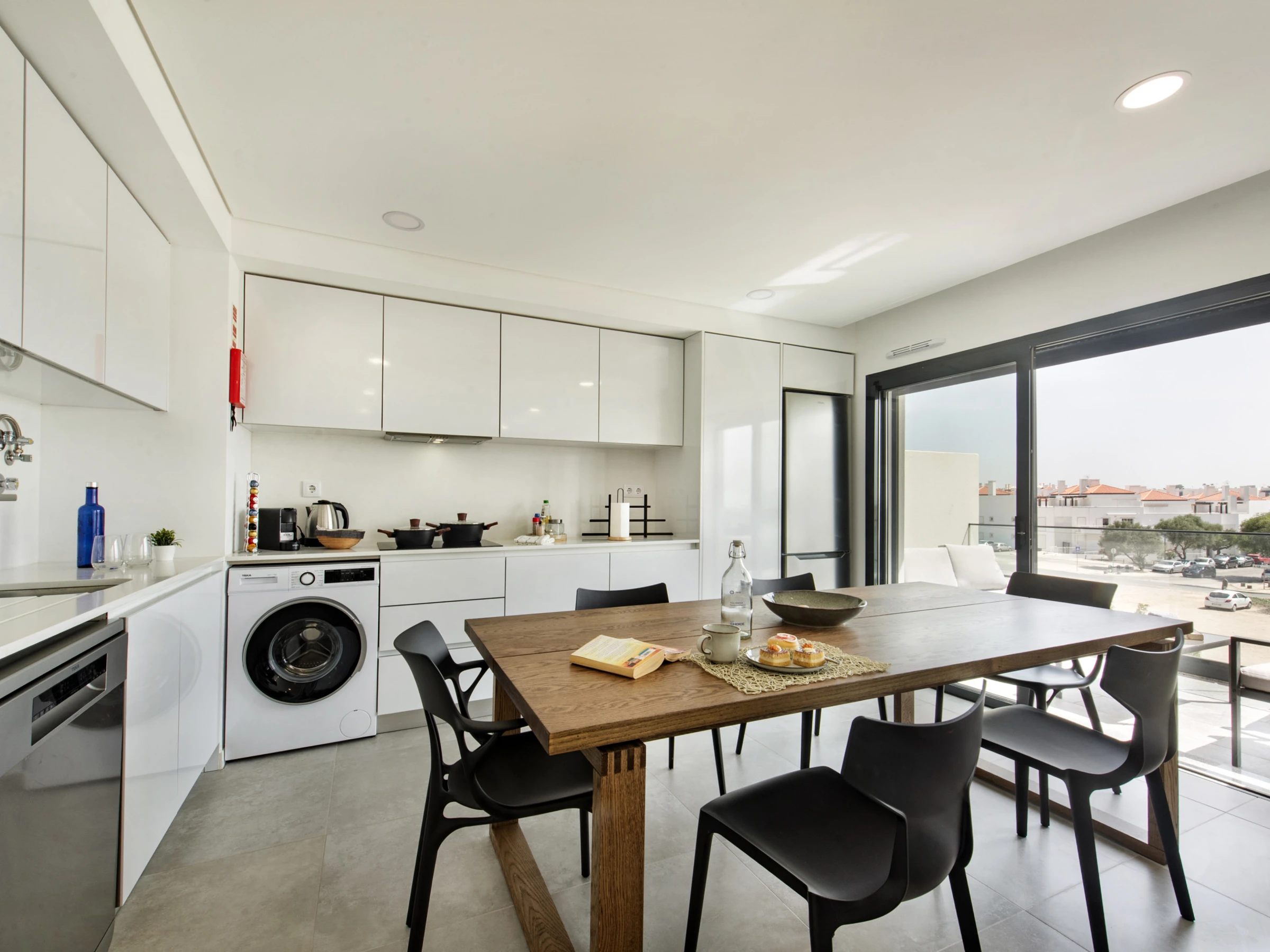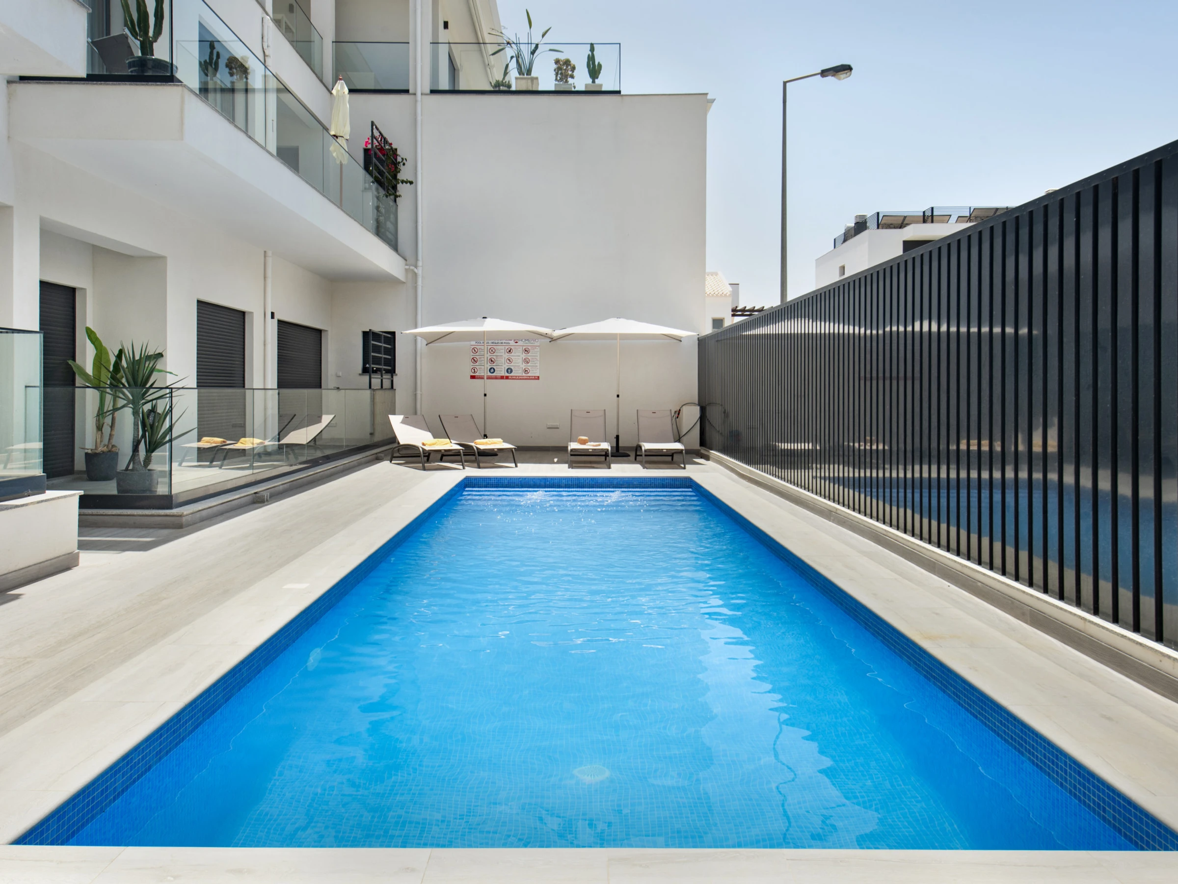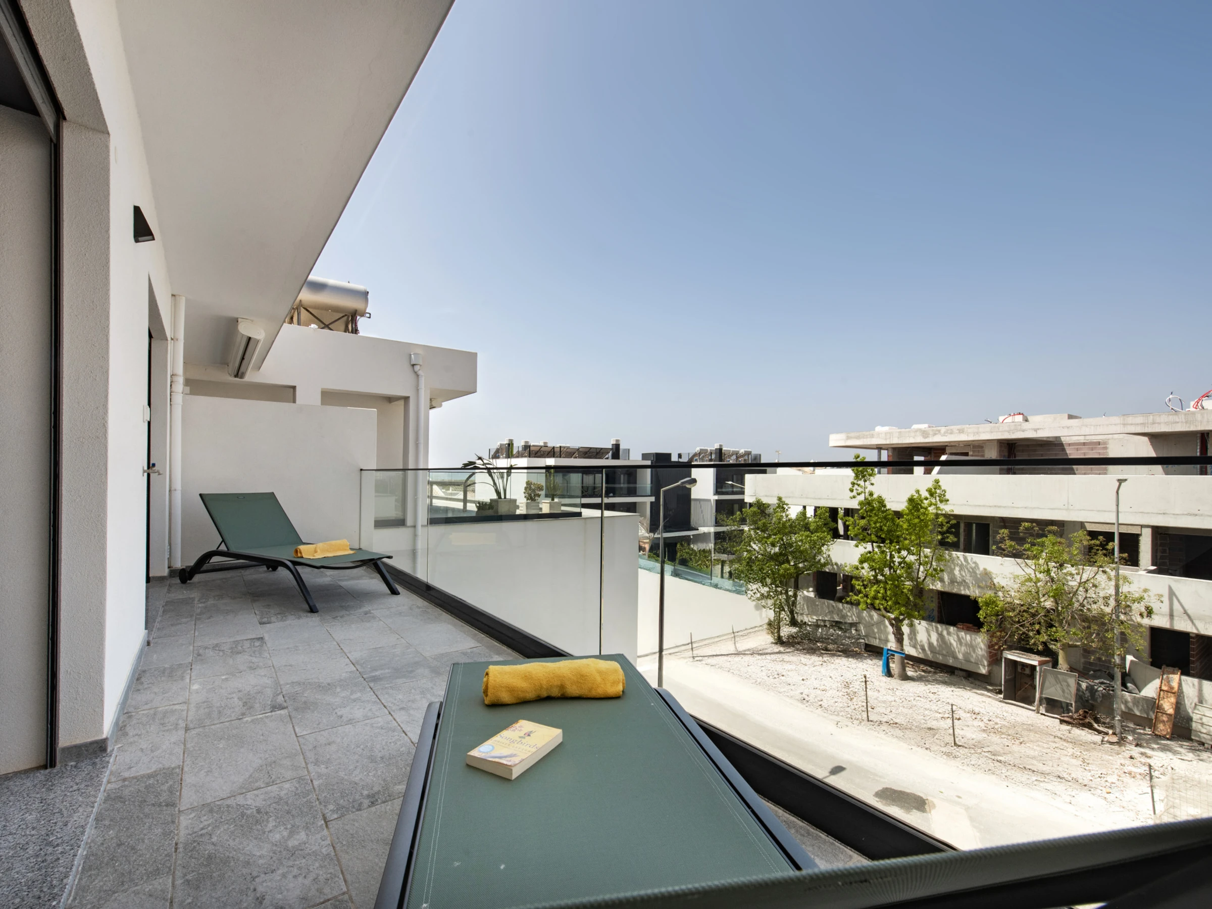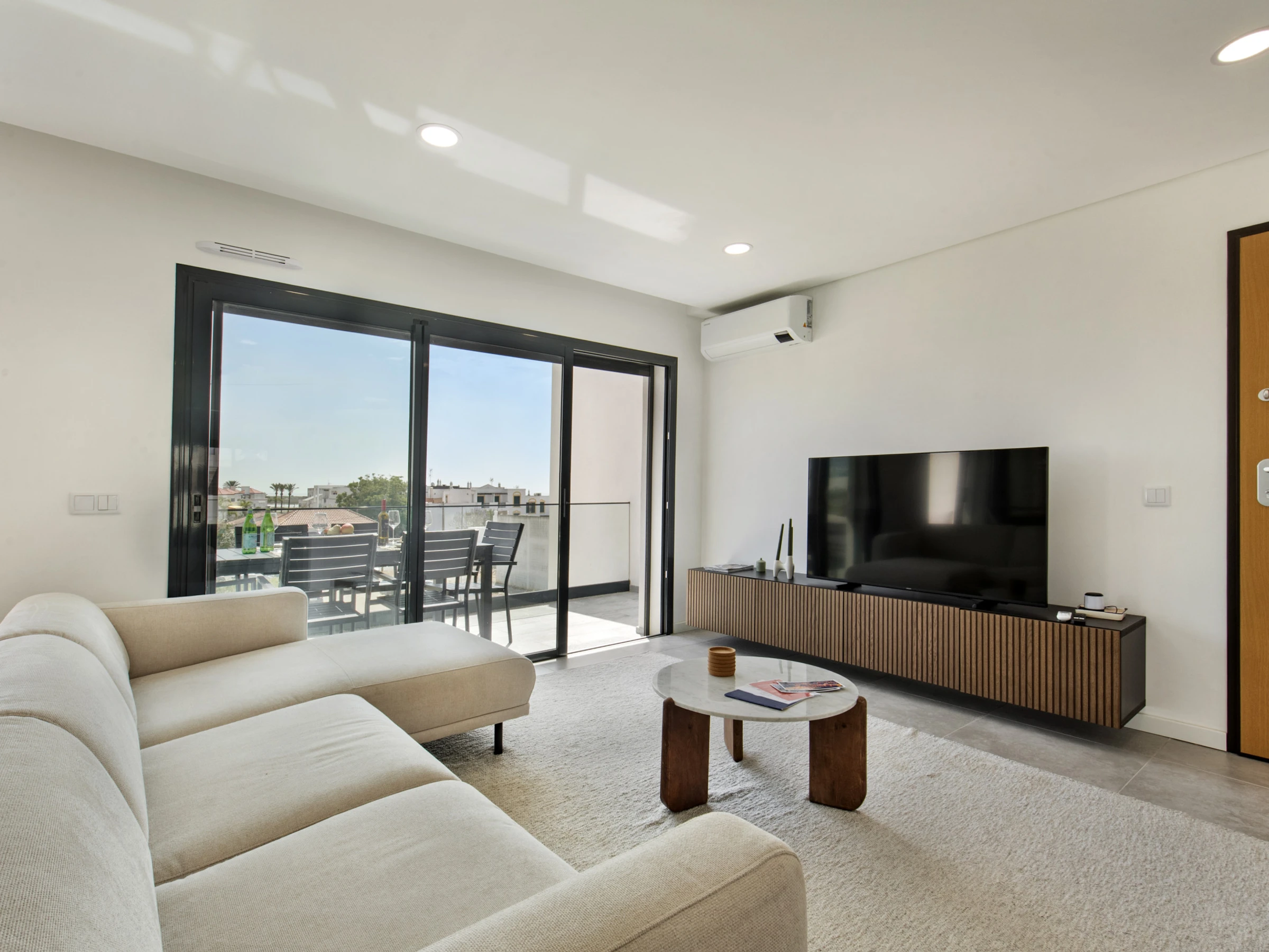 The apartment has two balconies: one next to the resting areas, with sunbeds to enjoy the sun peacefully, and another in the living room/kitchen area, equipped with a dining table and armchairs - perfect for enjoying the Algarve climate at any time of the day.