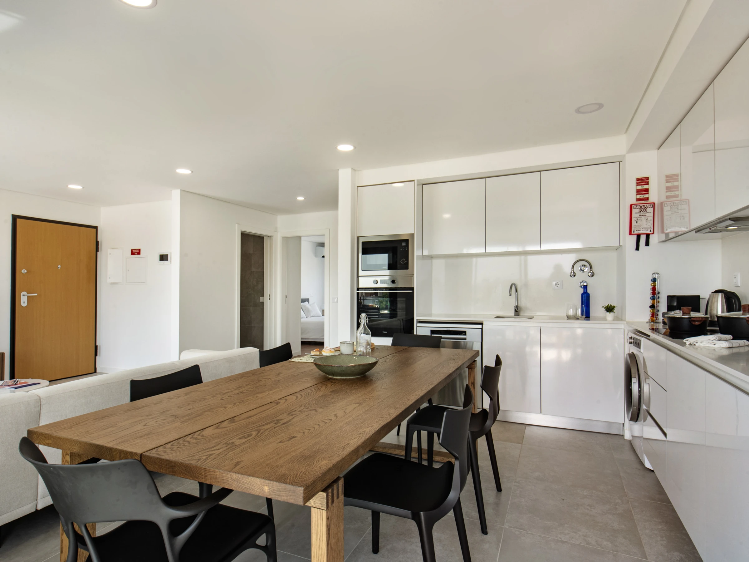 The space offers two welcoming rest environments, with comfortable double beds to ensure peaceful nights. One of the rooms has a private bathroom (en suite), complemented by a second bathroom with a shower. The fully equipped kitchen is integrated into an open space with the living room, creating a modern and bright environment.