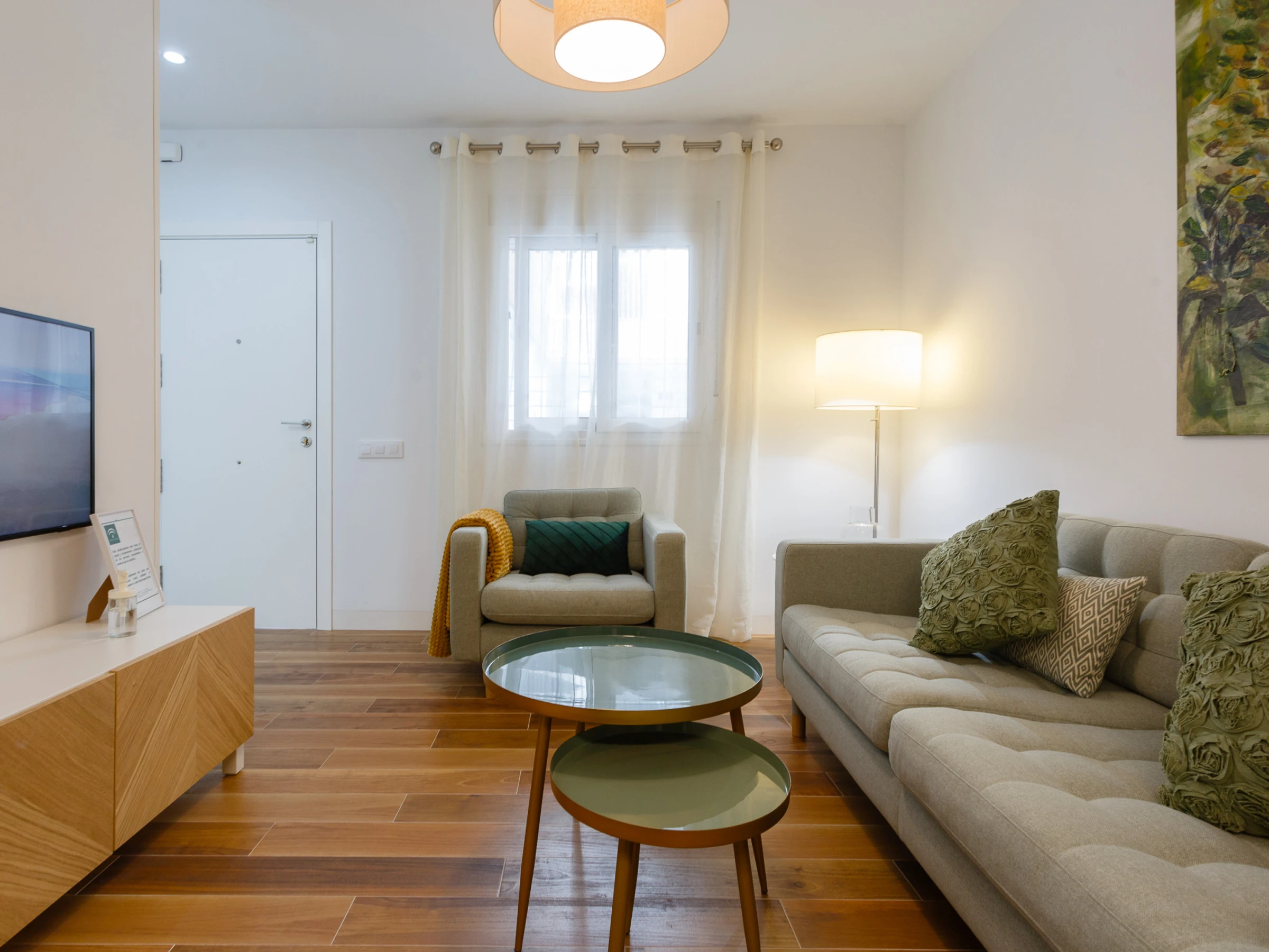The 60m2 accommodation on the first floor with a lift is located in a building that was completely refurbished in 2021 and has two bedrooms and can accommodate up to four people thanks to its comfortable beds. In the master bedroom you will find a large queen size bed and built-in wardrobe. In the second bedroom you will find two very comfortable single beds and a built-in wardrobe. It also has a cosy living-dining room, decorated in detail for you to love, an elegant and simple kitchen equipped with everything you need to cook delicious dishes from Cadiz and a modern bathroom with shower where you can relax after strolling around the city.