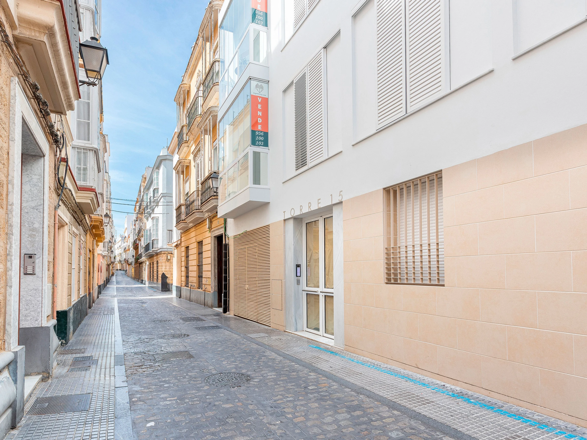 This spectacular two-bedroom penthouse is located in a fully renovated, modern and functional building right in the heart of Cádiz’s historic center.
