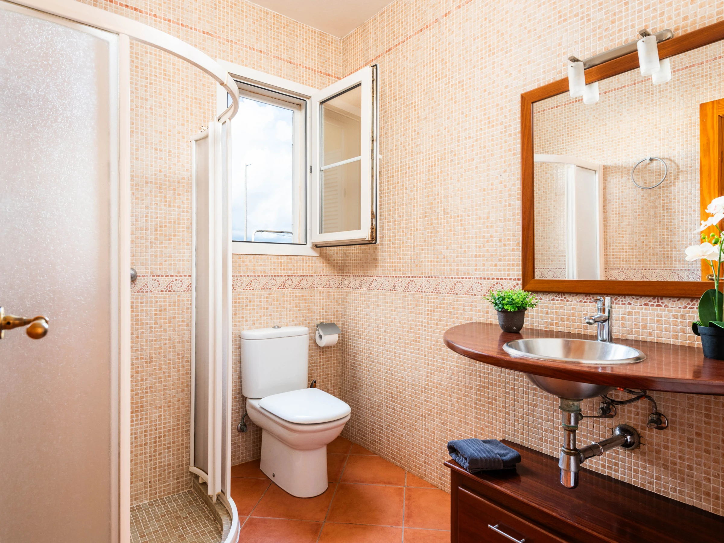 The villa has two full bathrooms: one with a shower and another with a bathtub, providing comfort and privacy for all guests. The independent kitchen is fully equipped with state-of-the-art appliances, including a washing machine, dishwasher, oven, microwave, coffee maker, toaster, and a wide variety of kitchenware.