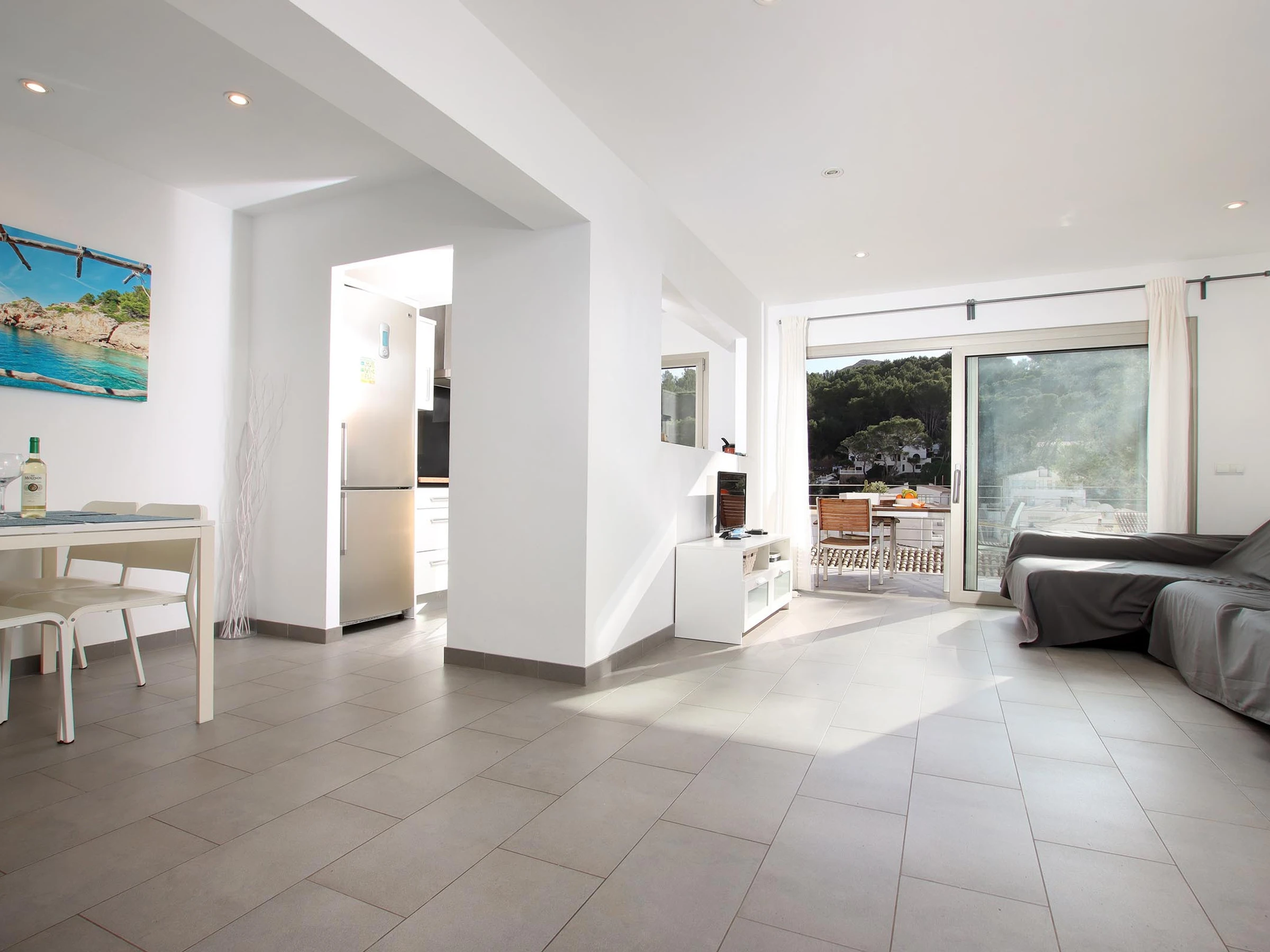 We are delighted to offer you this modern one-bedroom apartment located in the heart of the coastal town of Cala San Vicente. This property enjoys a wonderful location, with small sandy beaches just 150 metres away. Upon entering the apartment, we find a cosy living-dining room with a fully equipped modern open kitchen, glass sliding doors open to the balcony which offers fantastic views of the beautiful mountains and part of the sea.