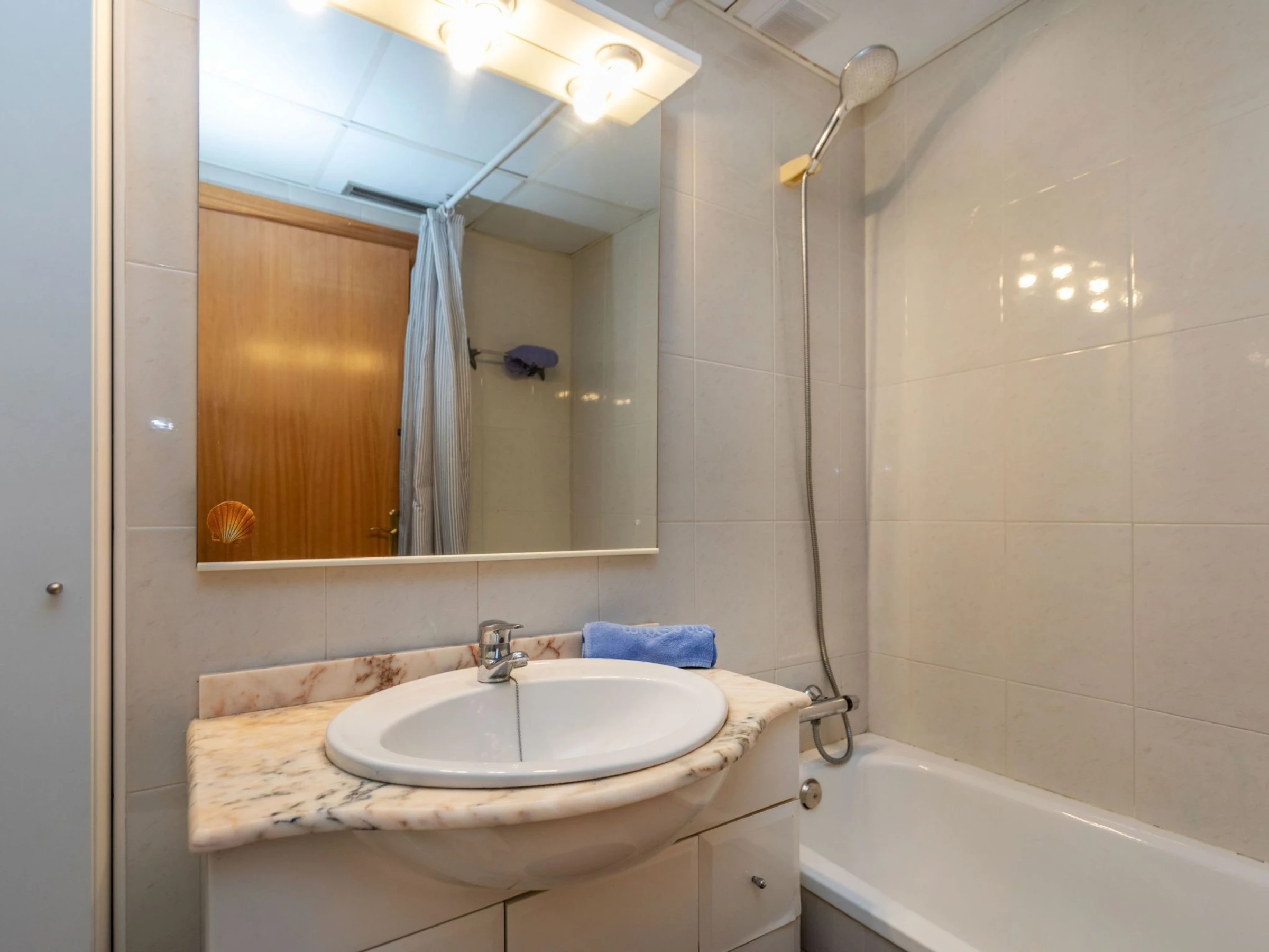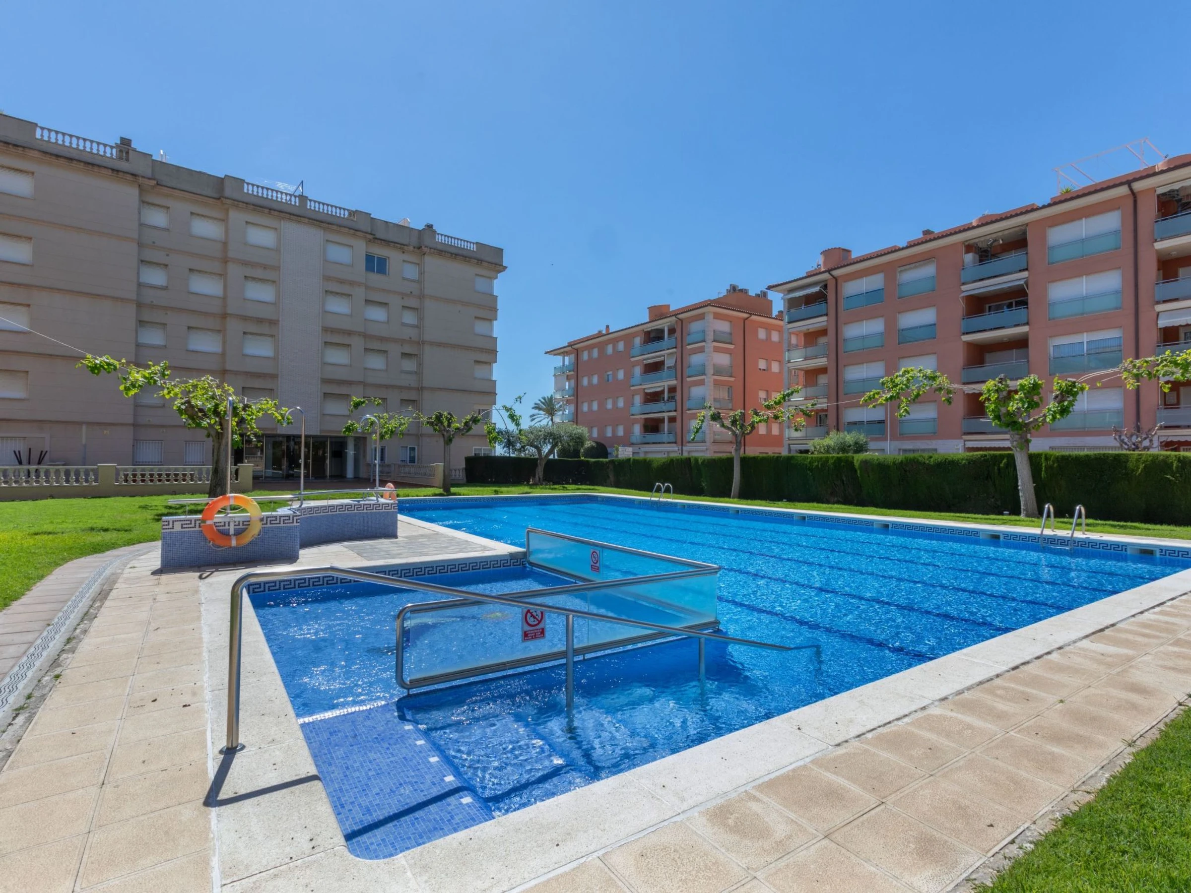 Calafell: Cosy apartment block "Playa Calafell". In the resort 300 m from the centre of Calafell, 50 m from the sea, 50 m from the beach, road to cross. For shared use: beautiful garden to relax, swimming pool round (8 x 12 m, seasonal availability: [hidden] and [hidden] with internal staircase. In the house: lift, washing machine. Stepped path (8 steps) to the house. Roofed, parking space n 46. Shop 600 m, grocery 1 km, supermarket 2 km, shopping centre 1.5 km, restaurant 1 km, bar 200 m, bakery, cafĂ© 800 m, internet cafĂ© 700 m, pedestrian zone 10 m, bus stop "Segur de Calafell" 600 m, railway station "Segur de Calafell" 1.5 km, sandy beach "Calafell" 50 m. Sports harbour 1.8 km, marina 1.8 km, golf course (18 hole) 5.4 km, surf school 1.8 km, sailing school 1.8 km, tennis 1.2 km, sports centre 350 m. Nearby attractions: Barcelona 67 km, Tarragona 39 km, Port Aventura 50 km, Zona vinĂcola de Baix i Alt PenedĂ©s 25 km, Castillo de castellet 13 km. Hiking paths: Cami del mas d'en vives 2 km, Mirador de sant miquel 4 km, Montañas de Ordal 33 km. The owner does not accept any youth groups. Neighbourhood highly sensitive to noise. Quietness and good behaviour expected.