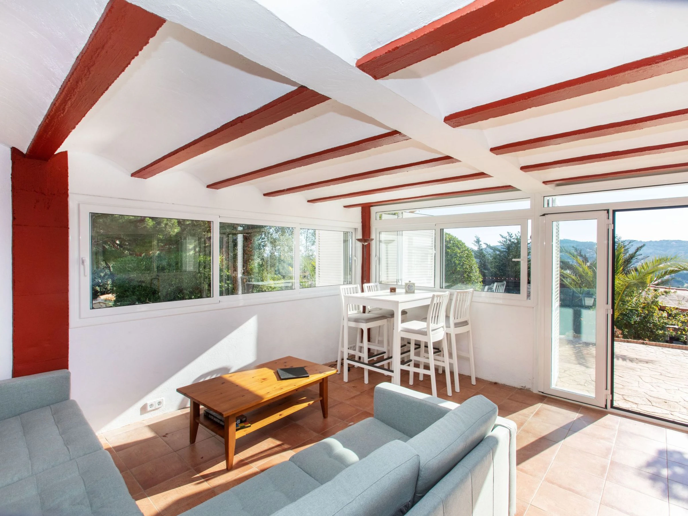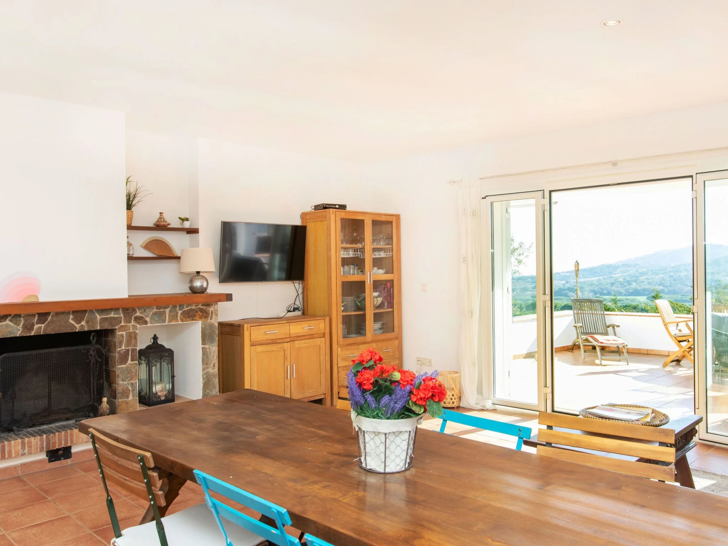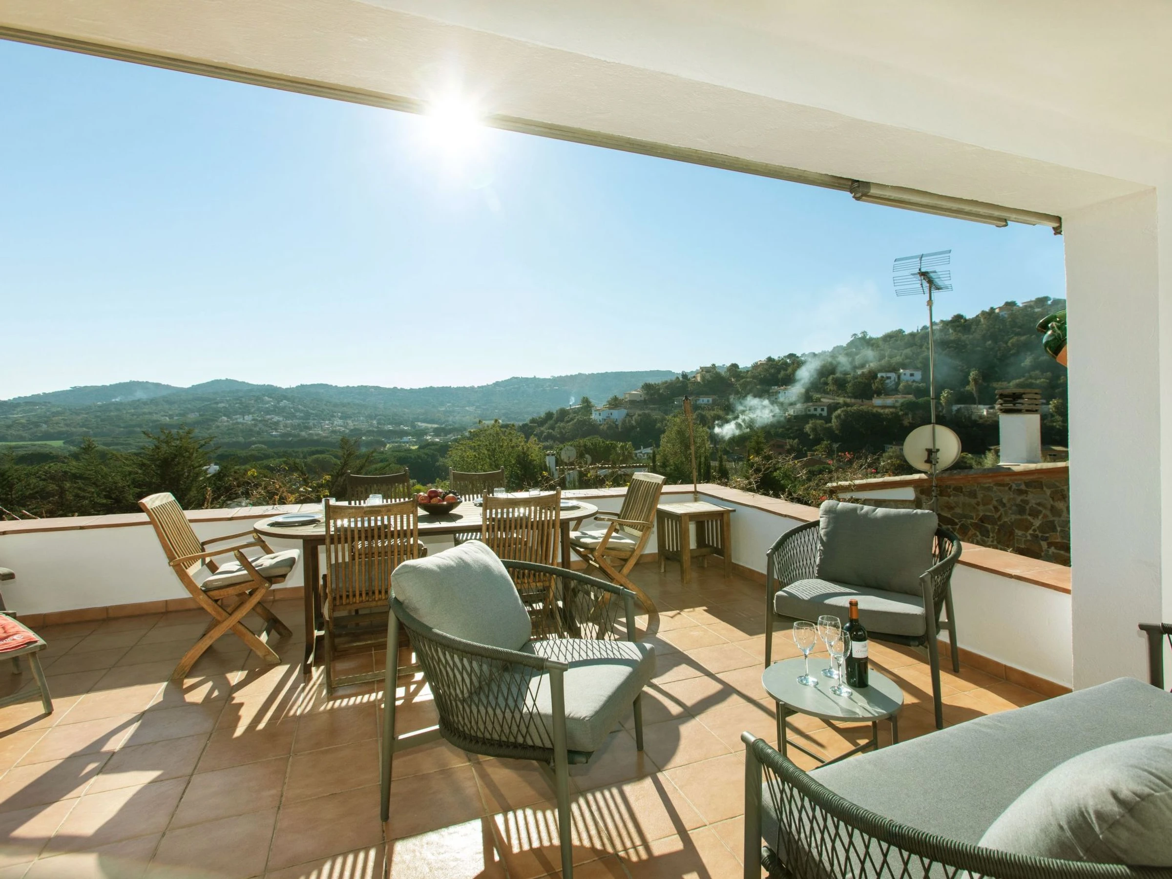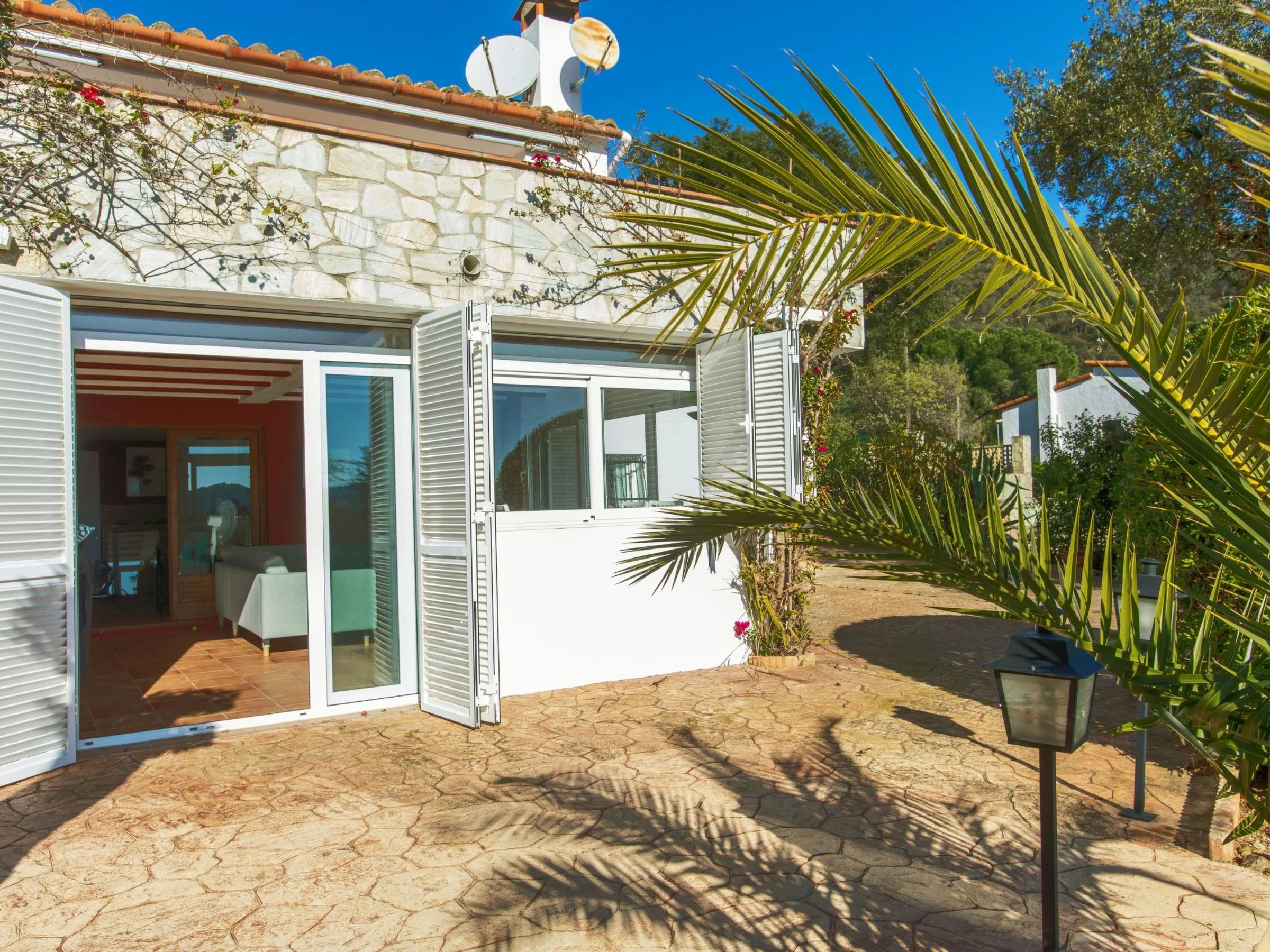"El Suro", 6-room villa 270 m2 on 2 levels. Comfortable furnishings: living/dining room with digital TV. Exit to the terrace. 1 room with 1 french bed (160 cm, length 220 cm). 1 room with 2 beds (90 cm, length 200 cm). Open kitchen (oven, dishwasher, 4 ceramic glass hob hotplates, toaster, kettle, microwave, freezer, grill, electric coffee machine). Bath/WC. Air-conditioning. No heating option. On the lower ground floor: living/dining room. Exit to the patio, to the swimming pool. 1 room with 1 french bed (150 cm, length 200 cm) with 2 beds (90 cm, length 200 cm), 1 french bed (150 cm, length 200 cm). Small kitchen (freezer). Shower/WC. Large terrace 25 m2, garden, porch. Terrace furniture, barbecue, deck chairs (8), covered balcony. View of the sea and the countryside. Facilities: washing machine, iron, children's high chair, baby cot, hair dryer. Internet (WiFi, free). Parking at the house. Please note: suitable for families. TV only ES. [hidden] // Reg. Nr.: ESFCTU00001701500026216700000000000000000[hidden]5