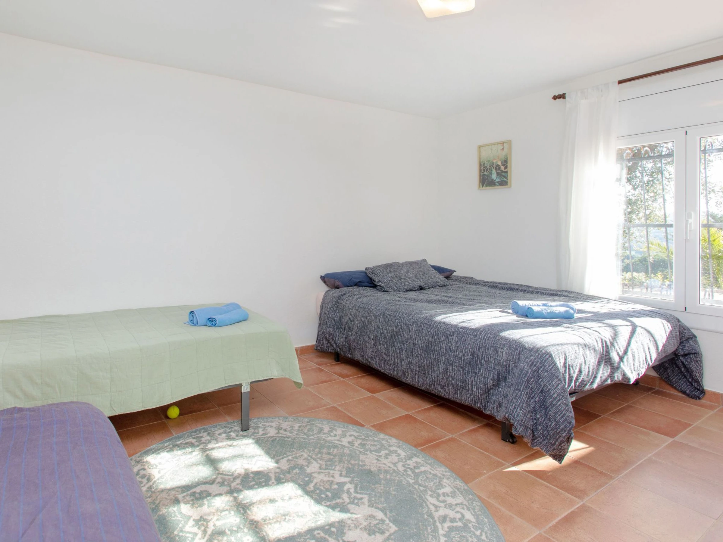 1 large double bed, 2 single beds, 1 large double bed