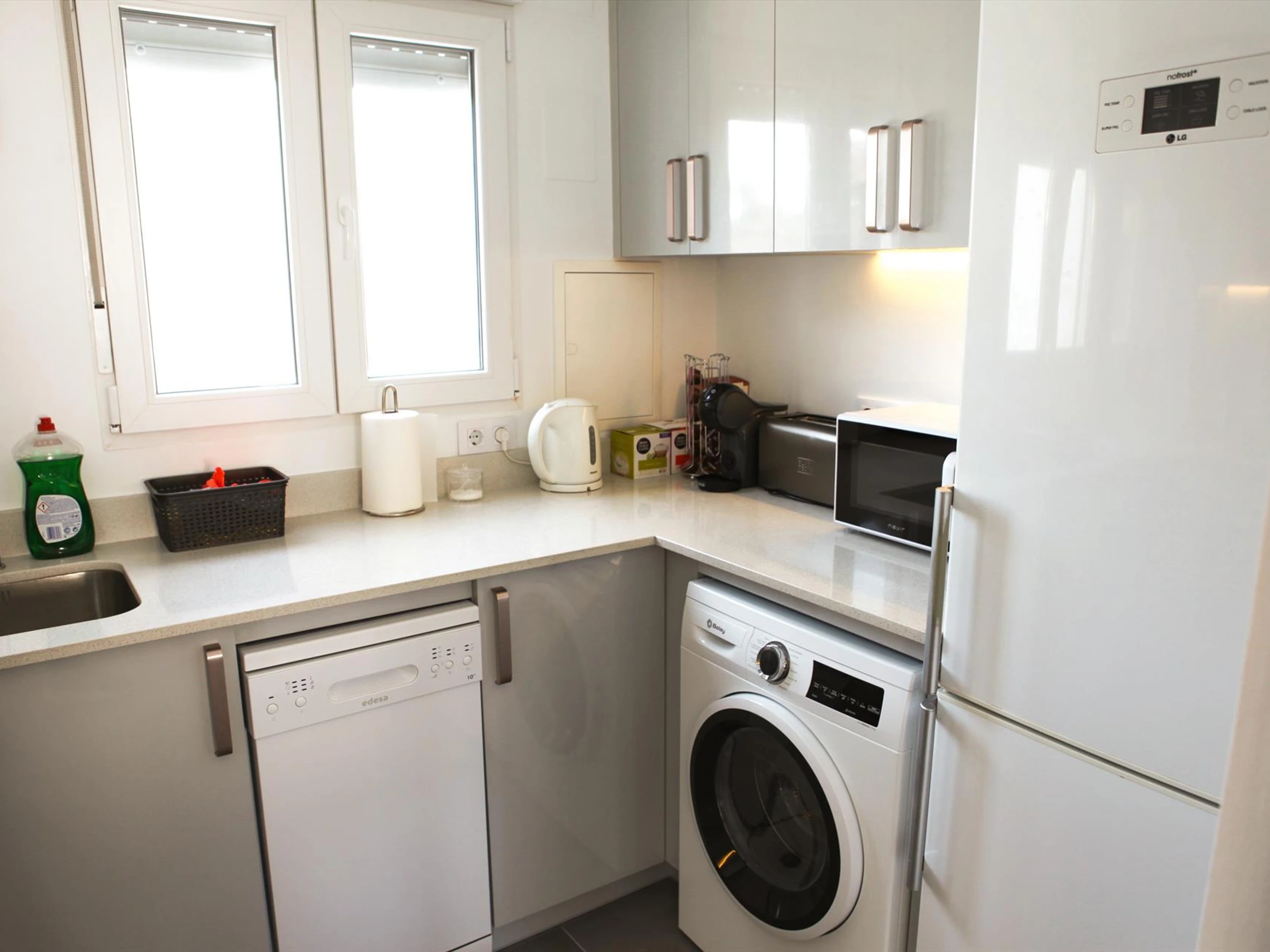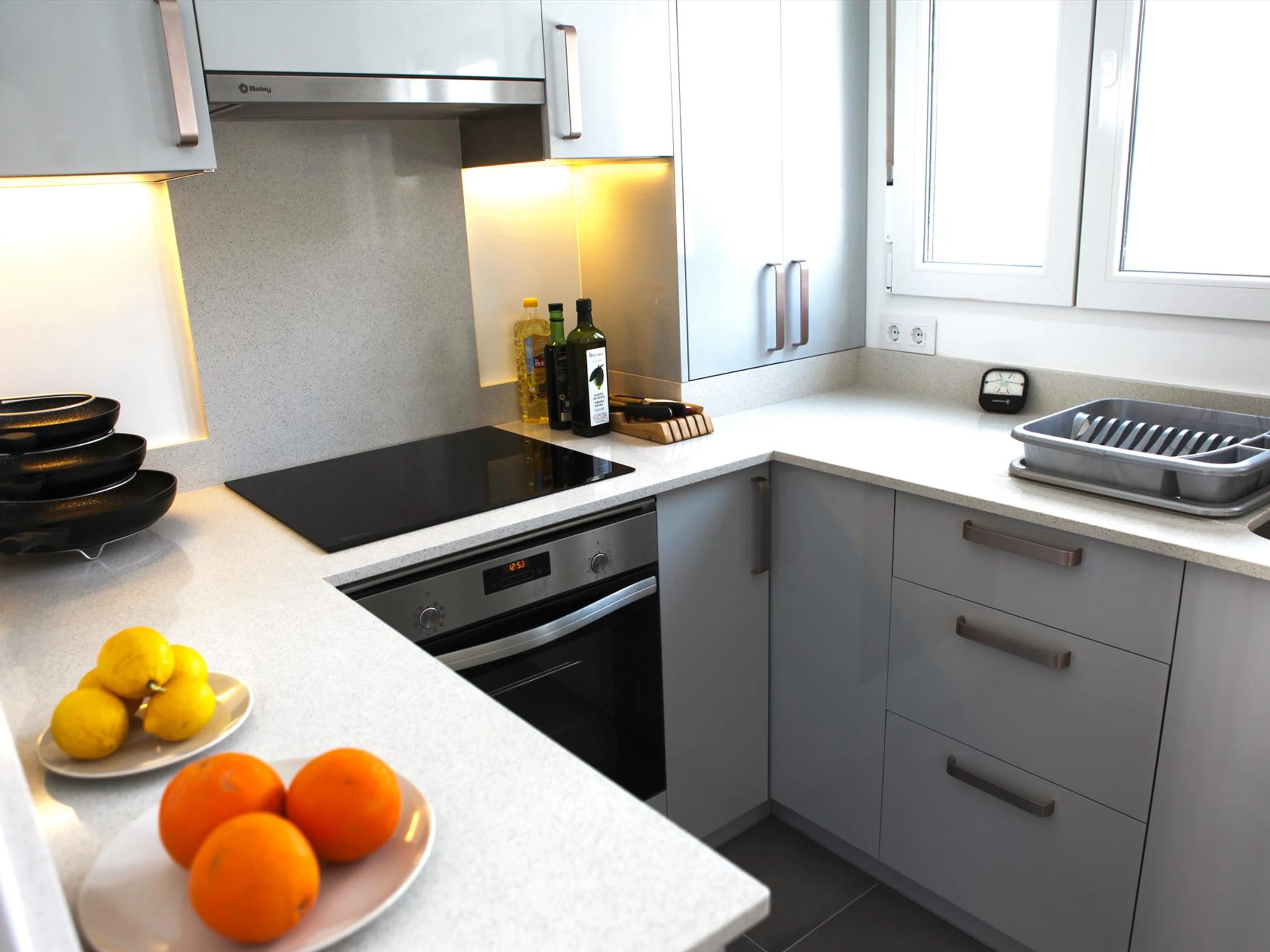 * kitchen with electric hob, electric oven, microwave, dishwasher,