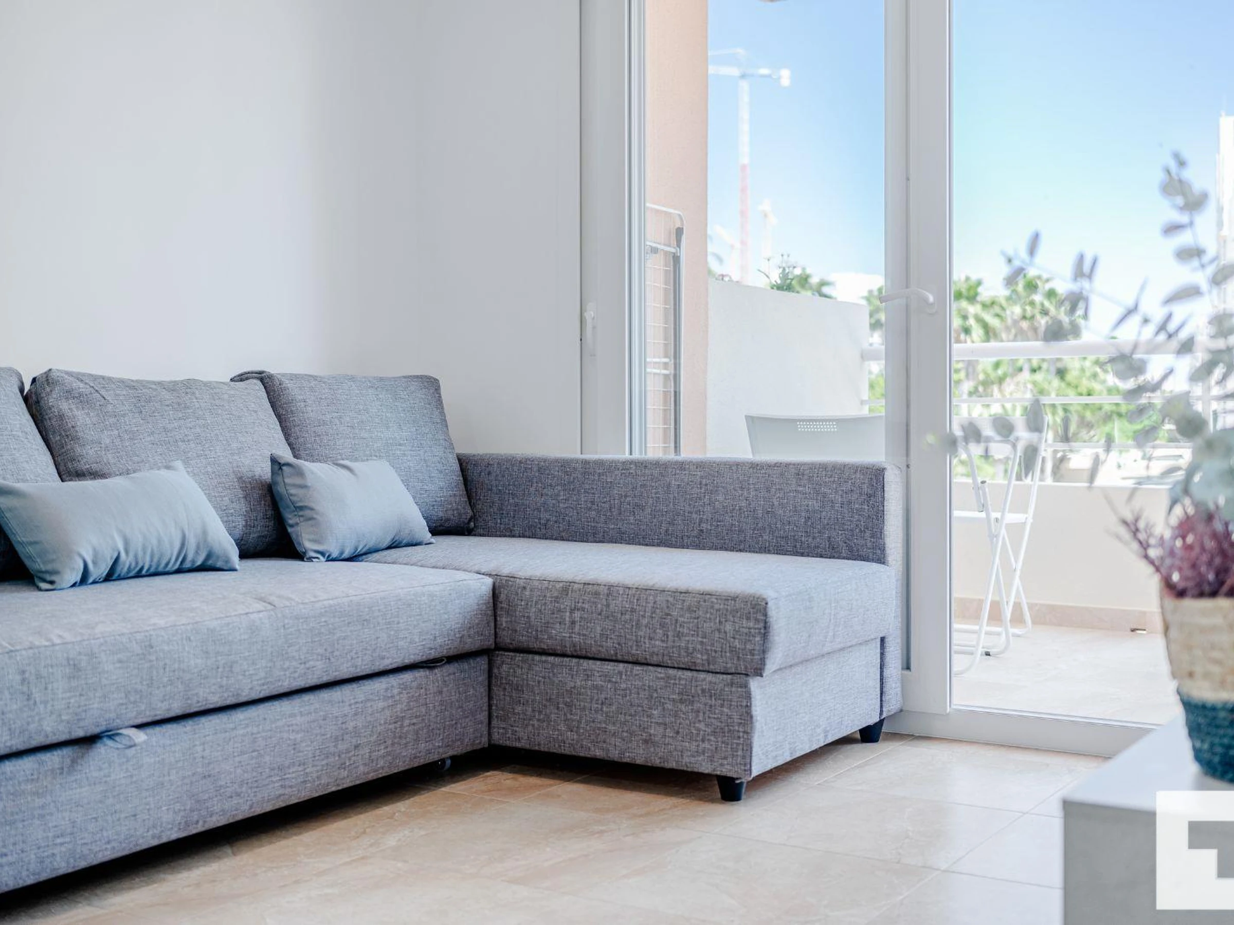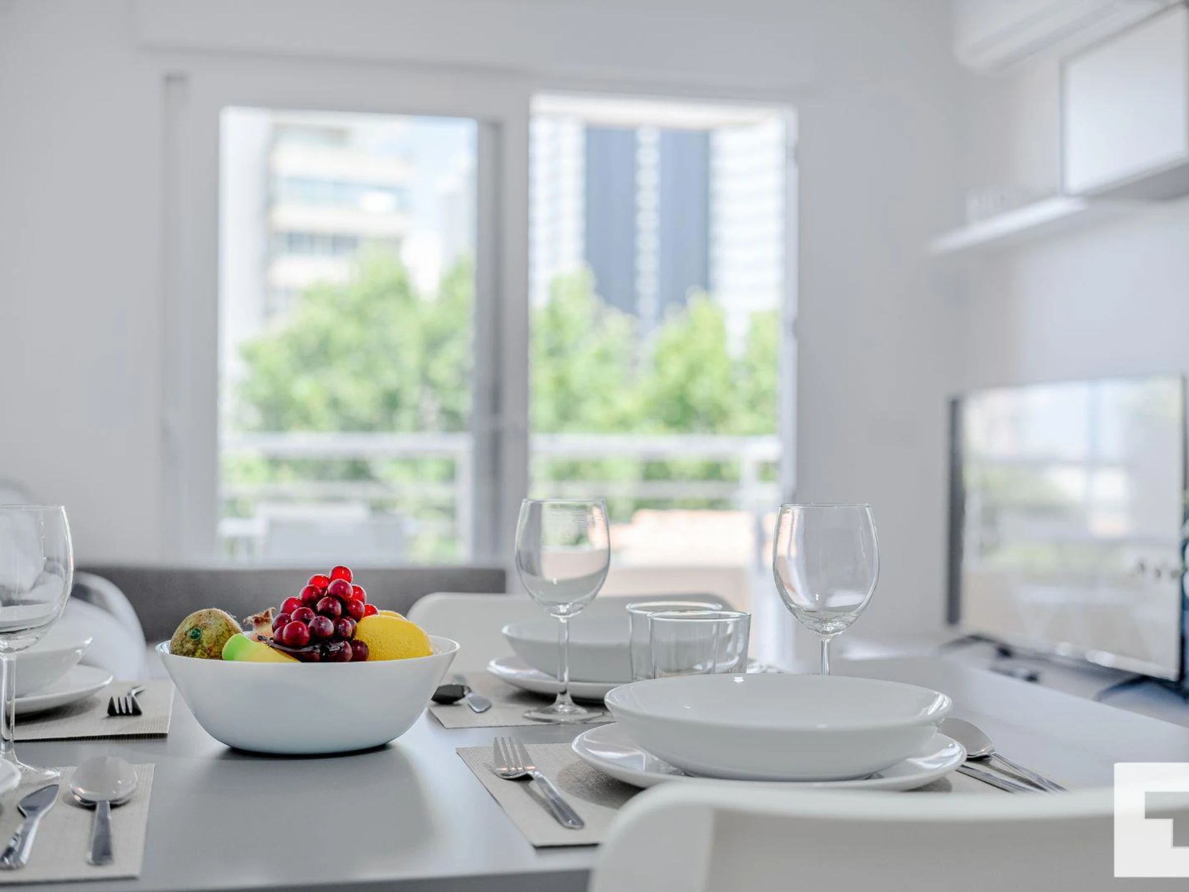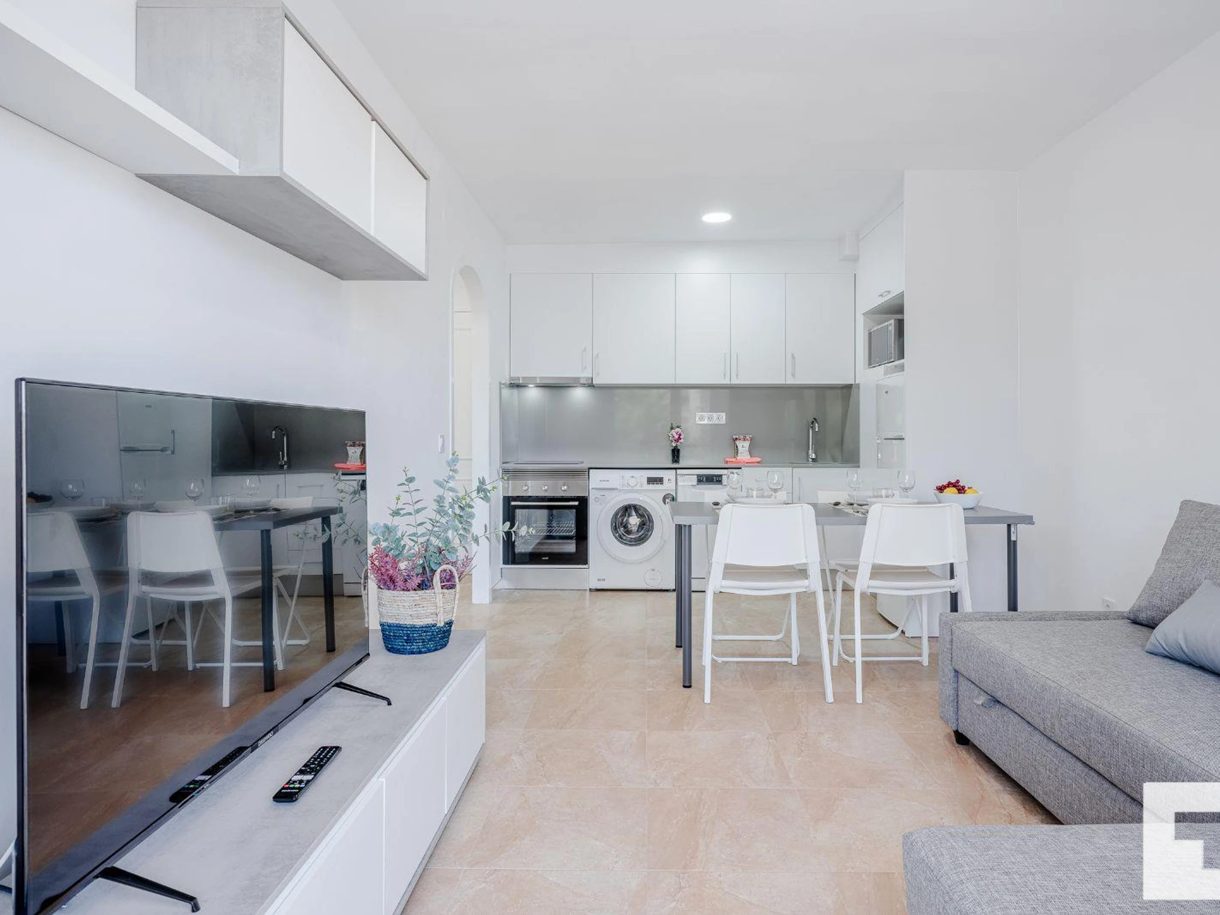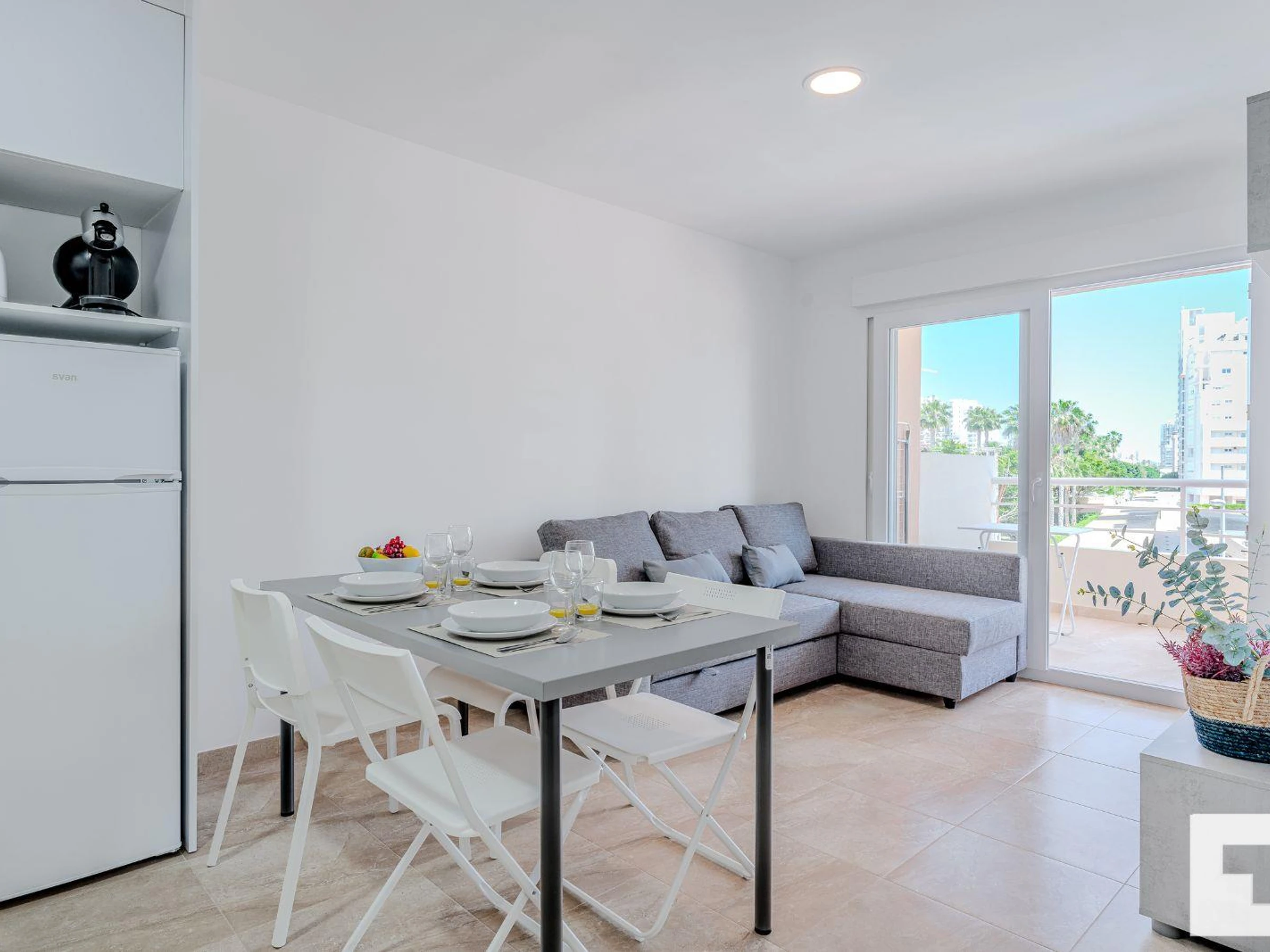 πΊ Living-dining room with Smart TV and access to the terrace.