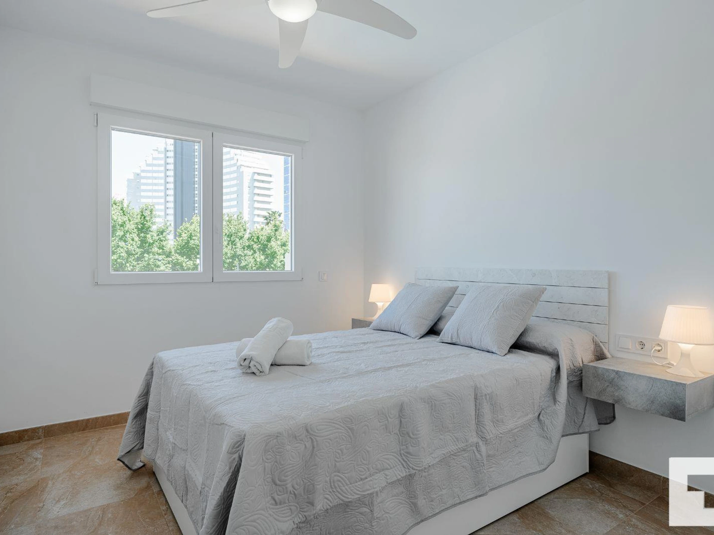 ποΈ 1 bedroom with a double bed and ceiling fan.