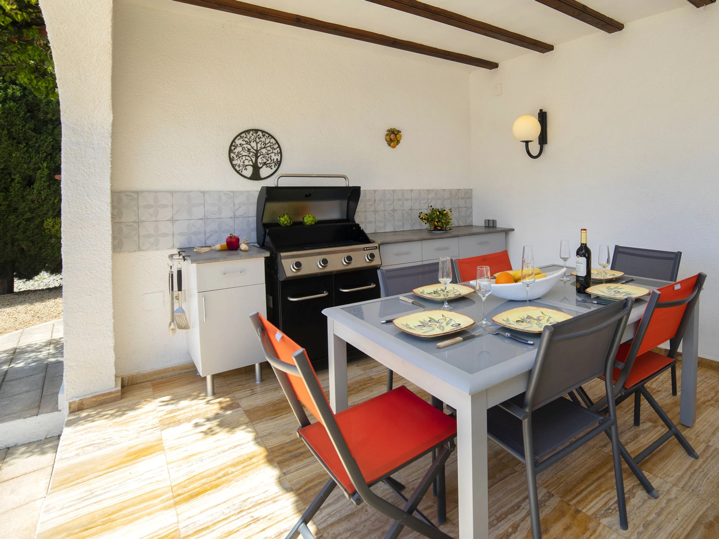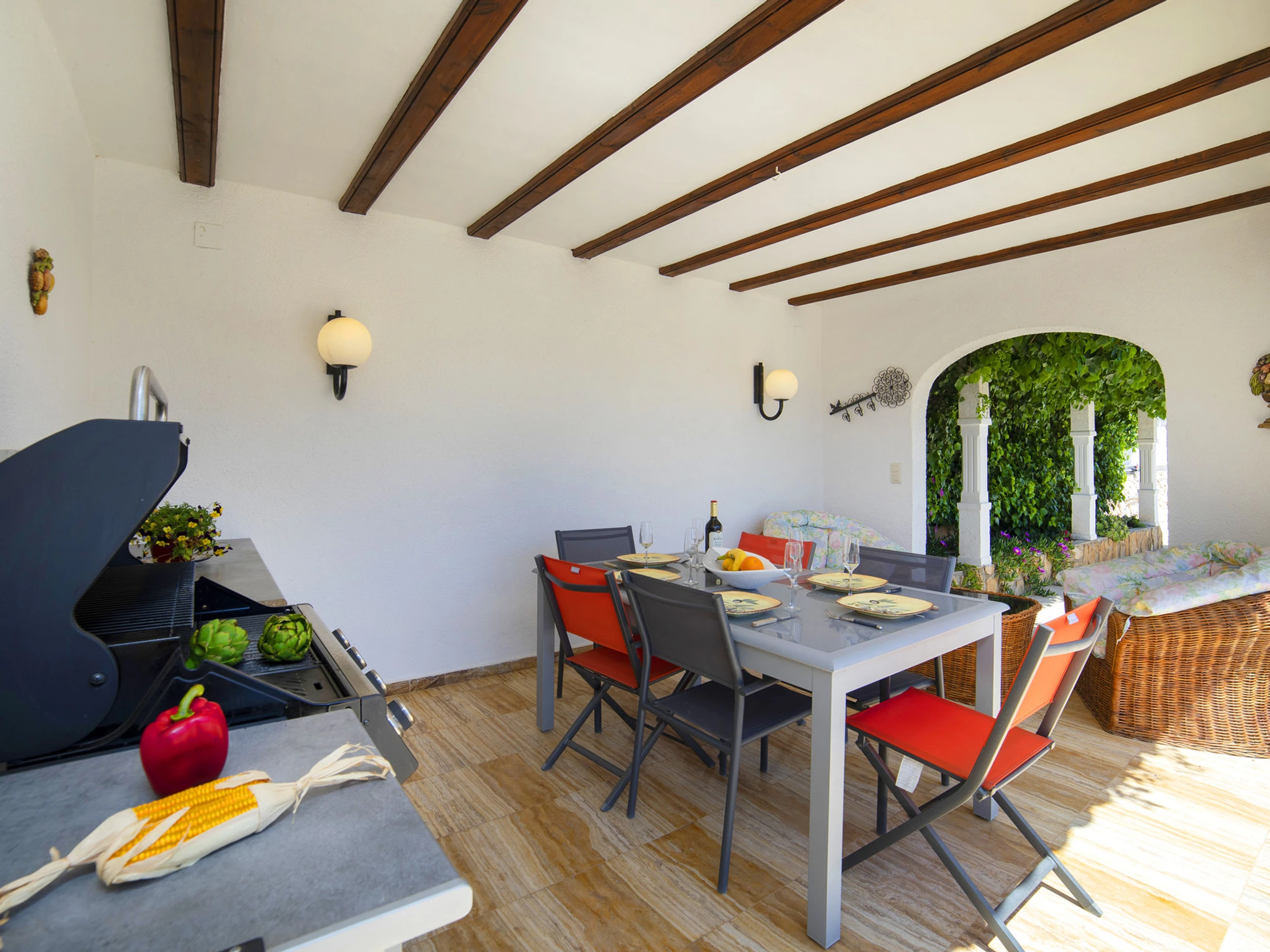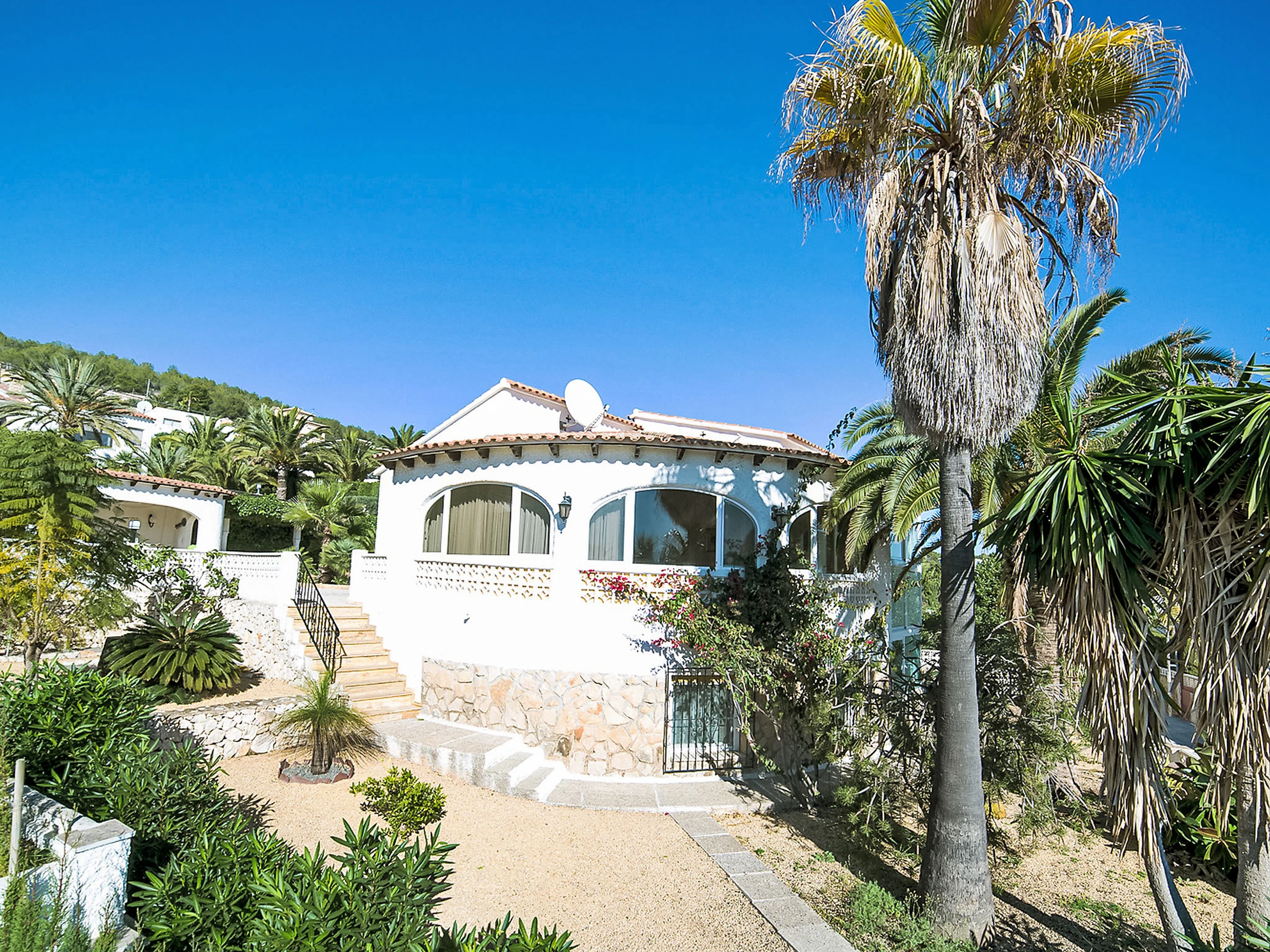 Gran Sol: House "La Grippiere". In the resort 4.4 km from the centre of Calpe, in a quiet, sunny position, 2.1 km from the sea. Private: property 900 m2 (fenced), terraced garden, swimming pool (4 x 9 m, depth 145 - 195 cm, seasonal availability: [hidden] - [hidden] with internal staircase. Terrace. Stepped path (15 steps) to the house. Supermarket 2.8 km, restaurant 2.1 km, bar 2.1 km, bus stop "Parada bus" 1.6 km, sandy beach 2.2 km. Sports harbour 4.6 km, marina 4.6 km, golf course (9 hole) 7.8 km, tennis 3.8 km. Nearby attractions: Aqualandia, Mundomar, Terra Mítica, Terra Natura, Benidorm Palace en Benidorm.