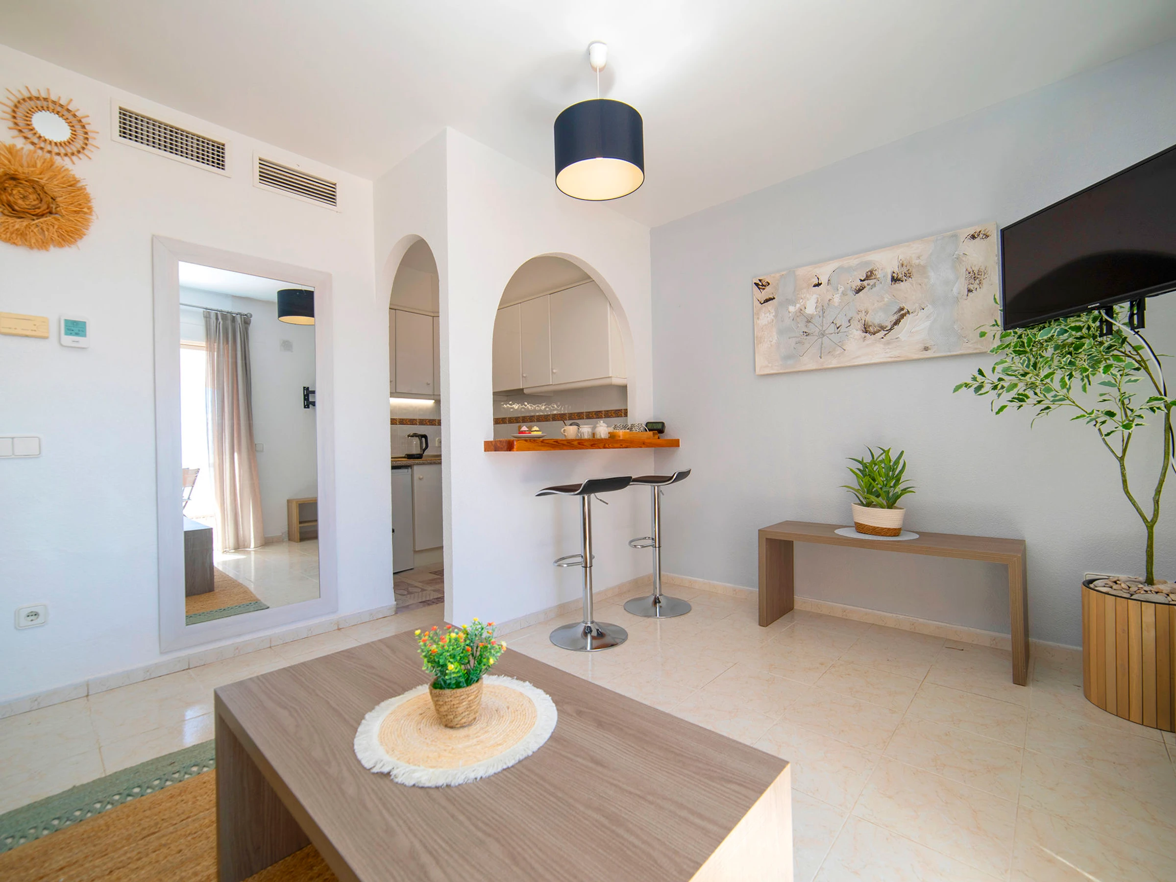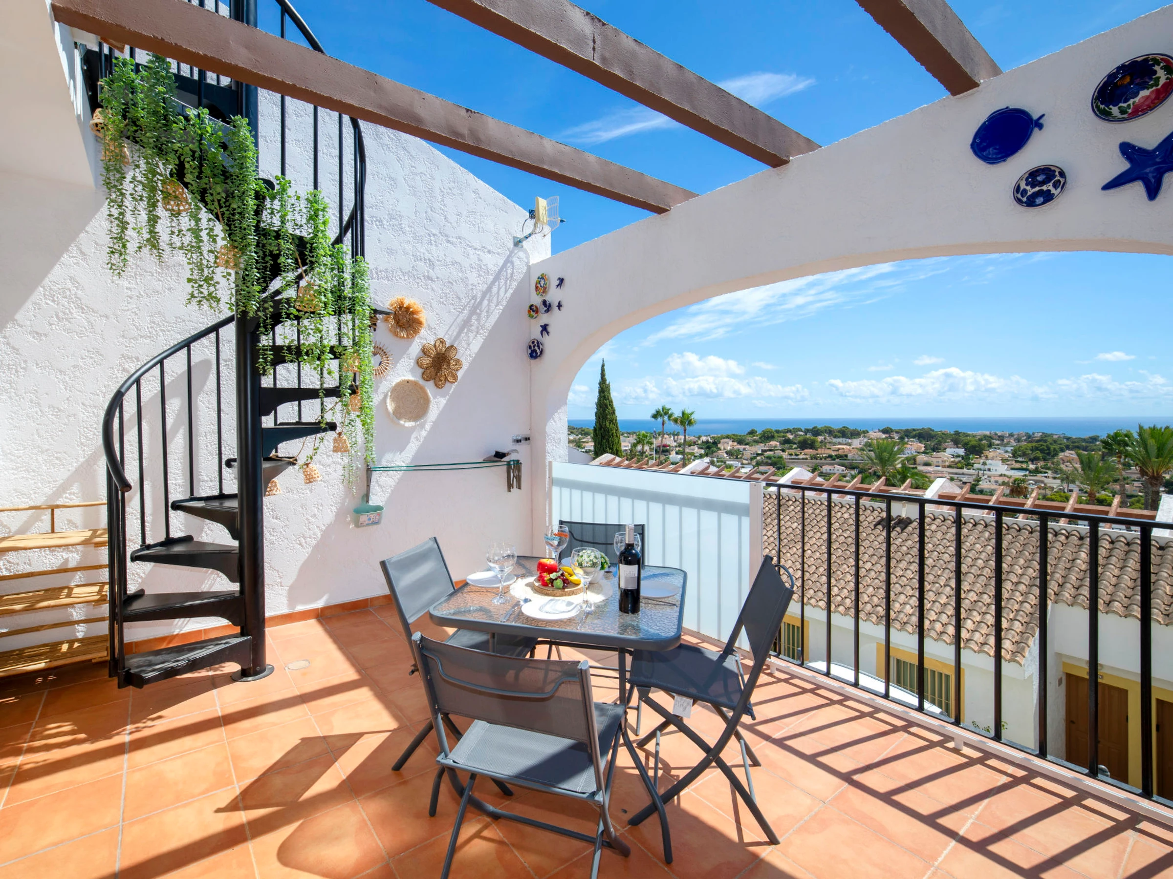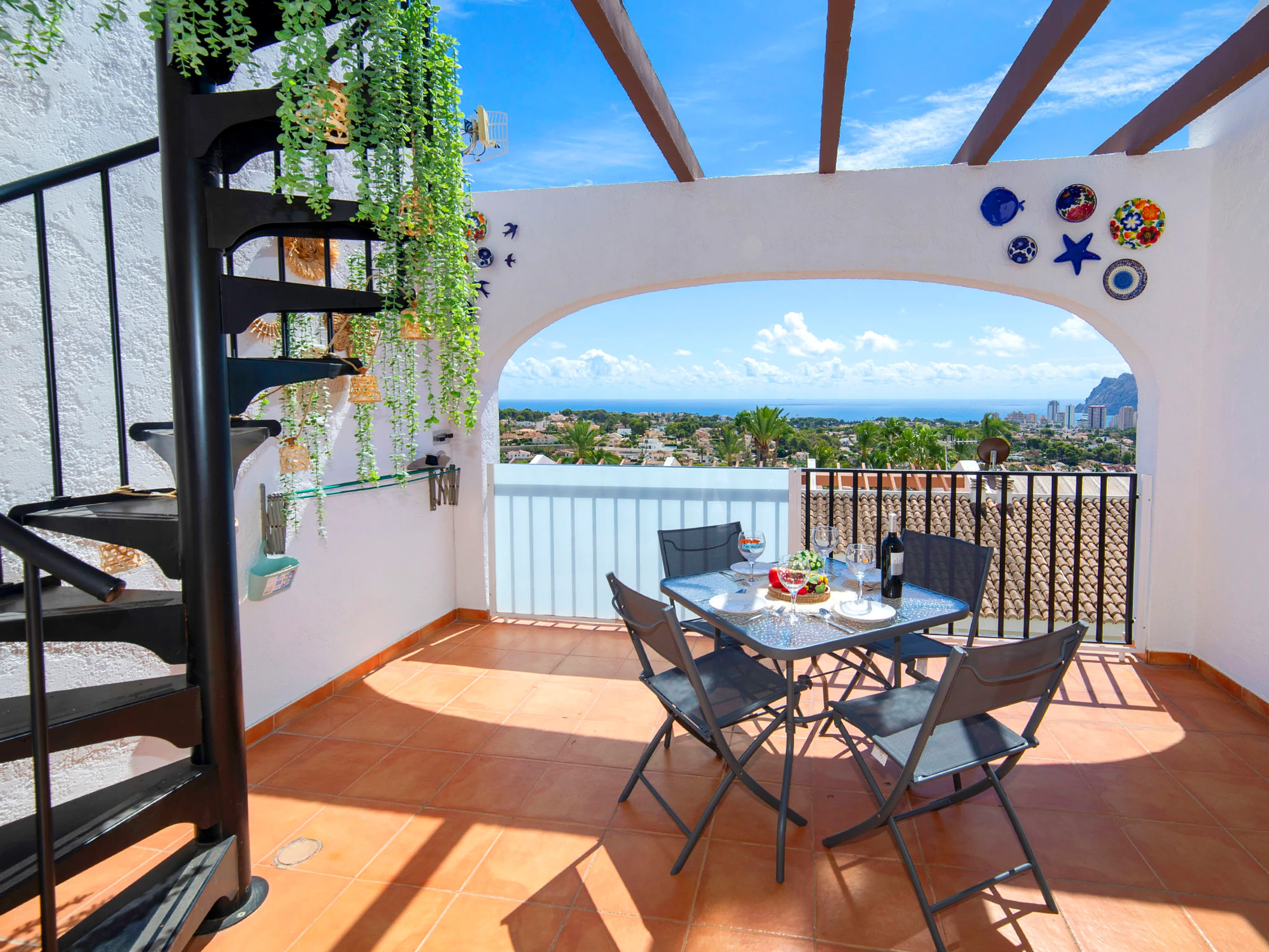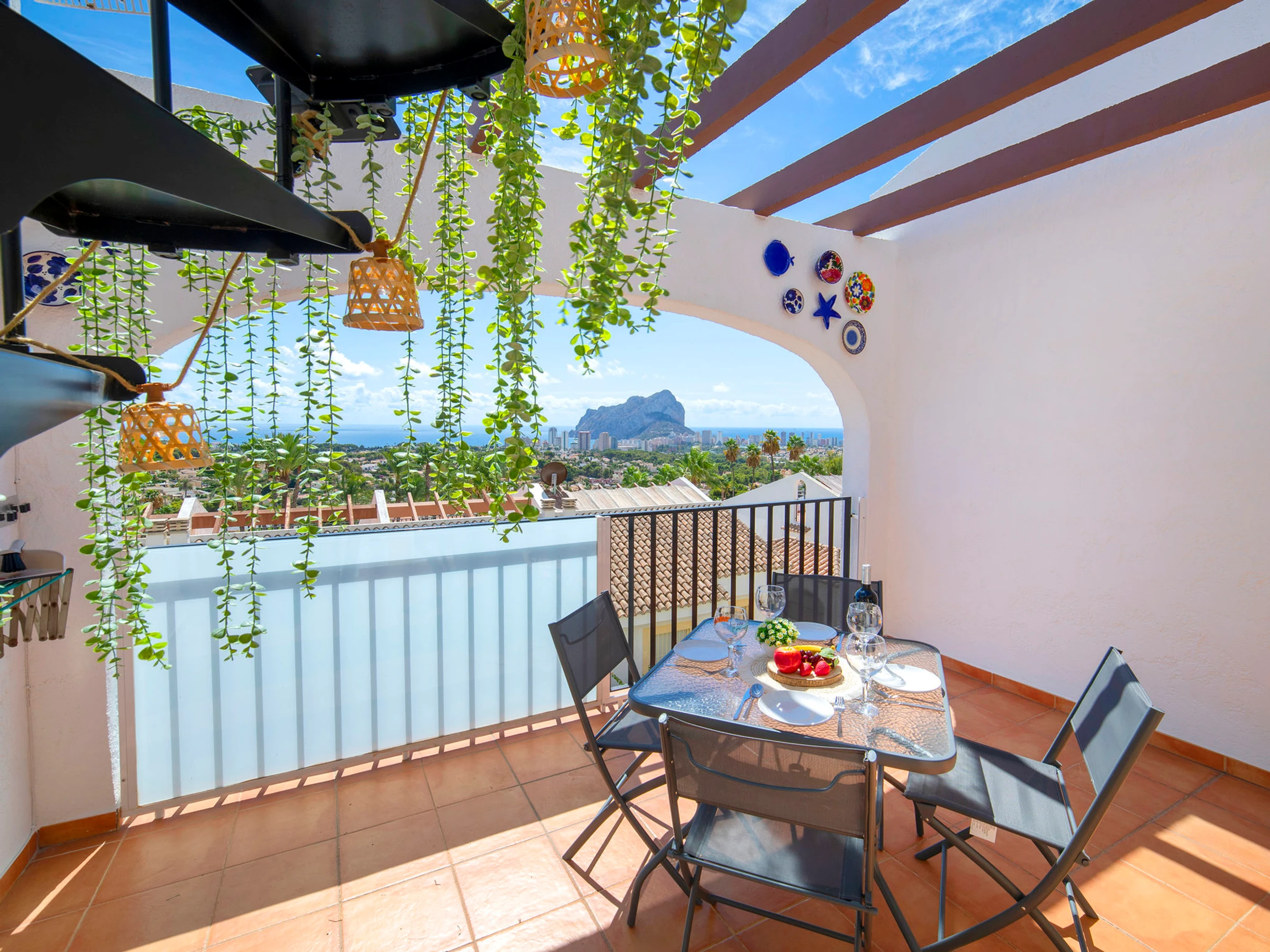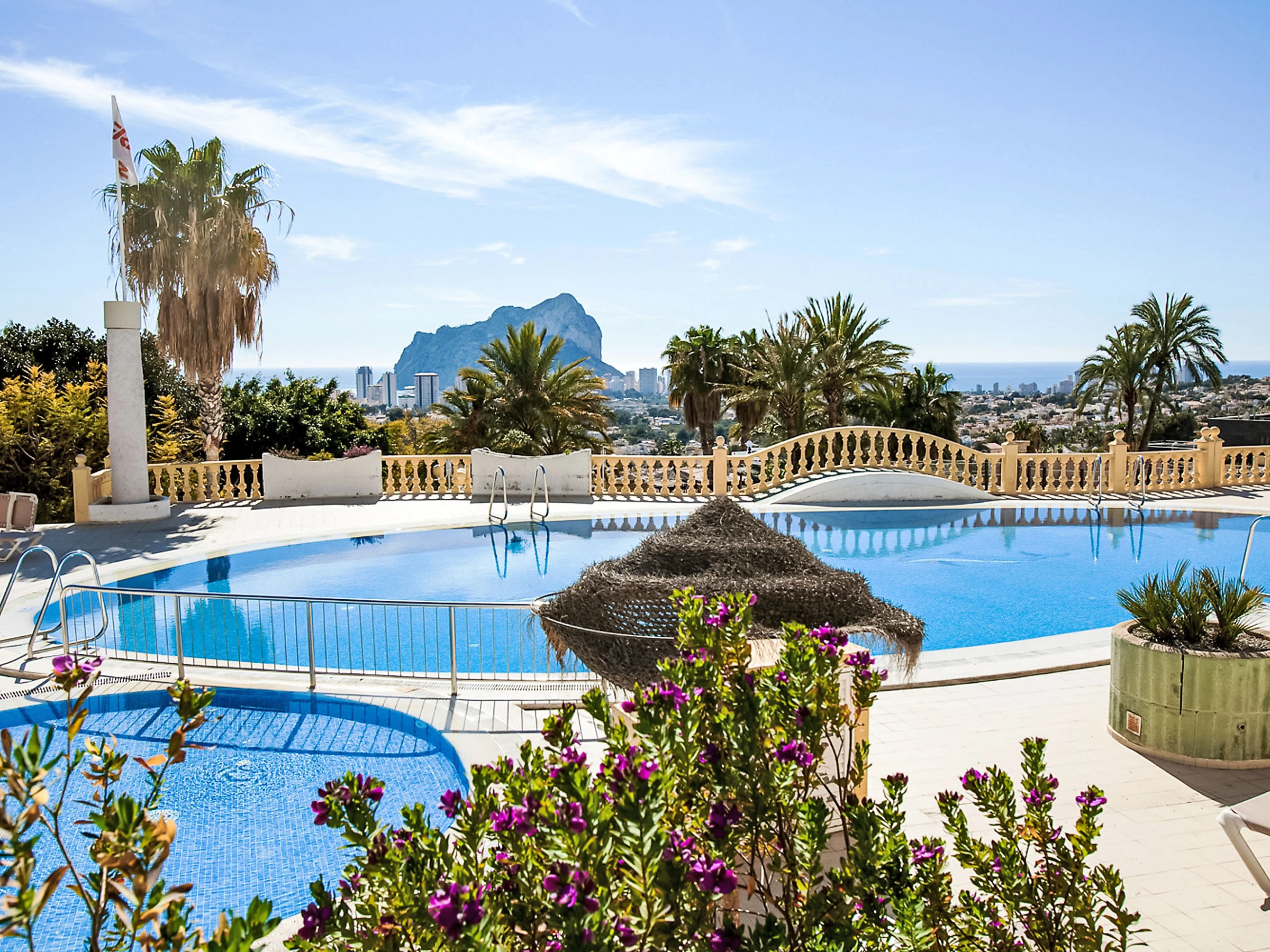 Imperial Park: Modern terraced house "Imperial Park". 3.3 km from the centre of Calpe, in a busy, sunny, elevated position, 2.5 km from the sea, 2.5 km from the beach. For shared use: large, well-kept terraced garden (fenced), natural garden, 3 swimming pools (seasonal availability: [hidden] - [hidden] pool opening hours: 10:00-20:00) with internal staircase. Unconventional pool shape. Children's pool, outdoor shower, patio, pergola, garden furniture. In the house: reception, lift. Shop 2 km, supermarket 2 km, restaurant 50 m, bar 200 m, café 50 m, bus stop 1.3 km, sandy beach "Playa De La Fosa" 3 km, diving center 1.5 km. Sports harbour 2.5 km, marina 2.5 km, golf course (18 hole) 10 km, surf school 2.5 km, sailing school 2.5 km, tennis 2.8 km, minigolf 3 km. Nearby attractions: Aqualandia, Mundomar, Terra Mítica, Terra Natura, y Benidorm Palace (Benidorm). Please note: car recommended. Reception open 10:00-15:00 hrs. Suitable for families. Please note: guarded residence. Additional accommodations can be booked. All houses/apartments are individually designed/furnished. Neighbourhood highly sensitive to noise. Quietness and good behaviour expected.
