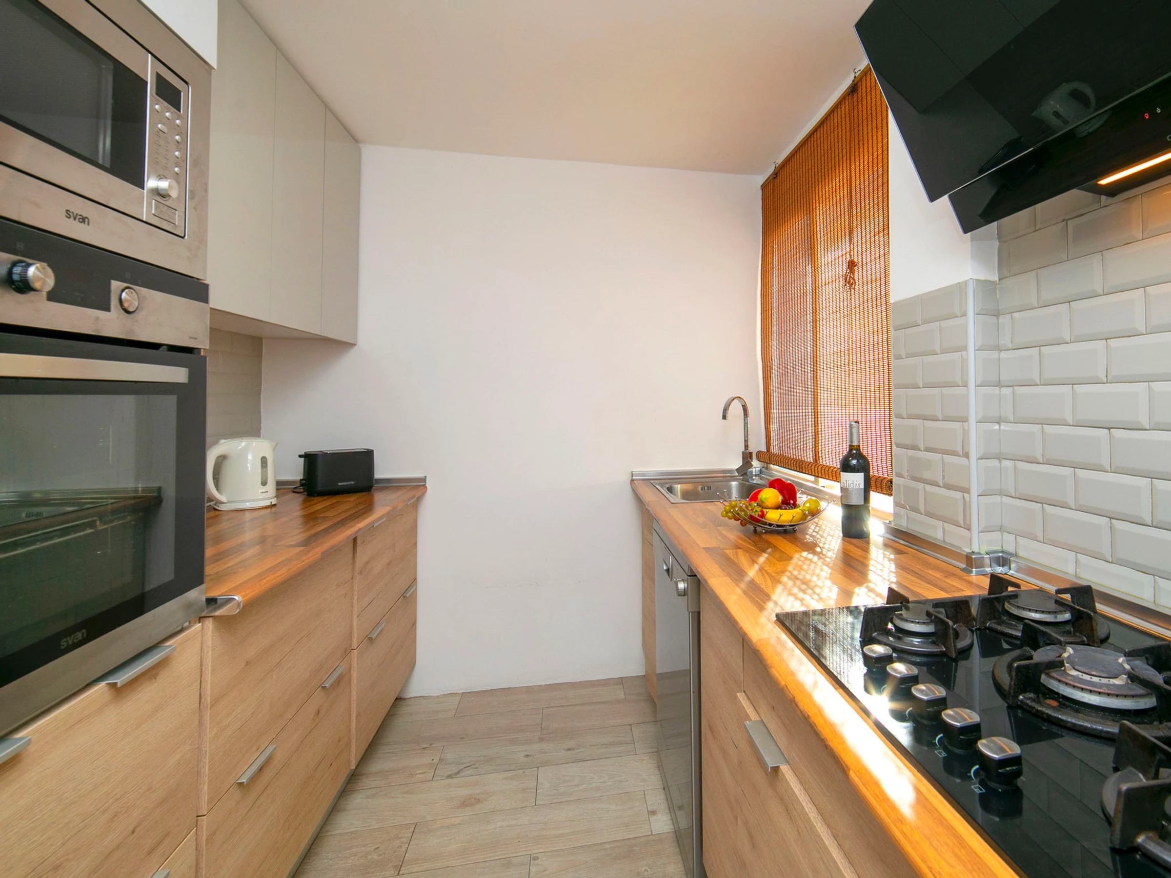 "Pueblo Casanova", 3-room apartment 87 m2, on the lower ground floor. Spacious and bright, comfortable and beautiful furnishings: living/dining room with digital TV, air conditioning and forced-air heating. Exit to the terrace. 1 room with 1 french bed (1 x 160 cm, length 200 cm), air conditioning and forced-air heating. 1 room with 2 beds (90 cm, length 200 cm). Kitchen (oven, dishwasher, toaster, kettle, microwave, electric coffee machine). Shower/WC. Beautiful view of the resort. Facilities: washing machine, iron, hair dryer. Internet (WiFi, free). Parking (roofed). Suitable for families. 1 small pet/ dog allowed. [hidden] // Reg. Nr.: ESFCTU0000030290005600380000000000000CV-VUT0487180-A3