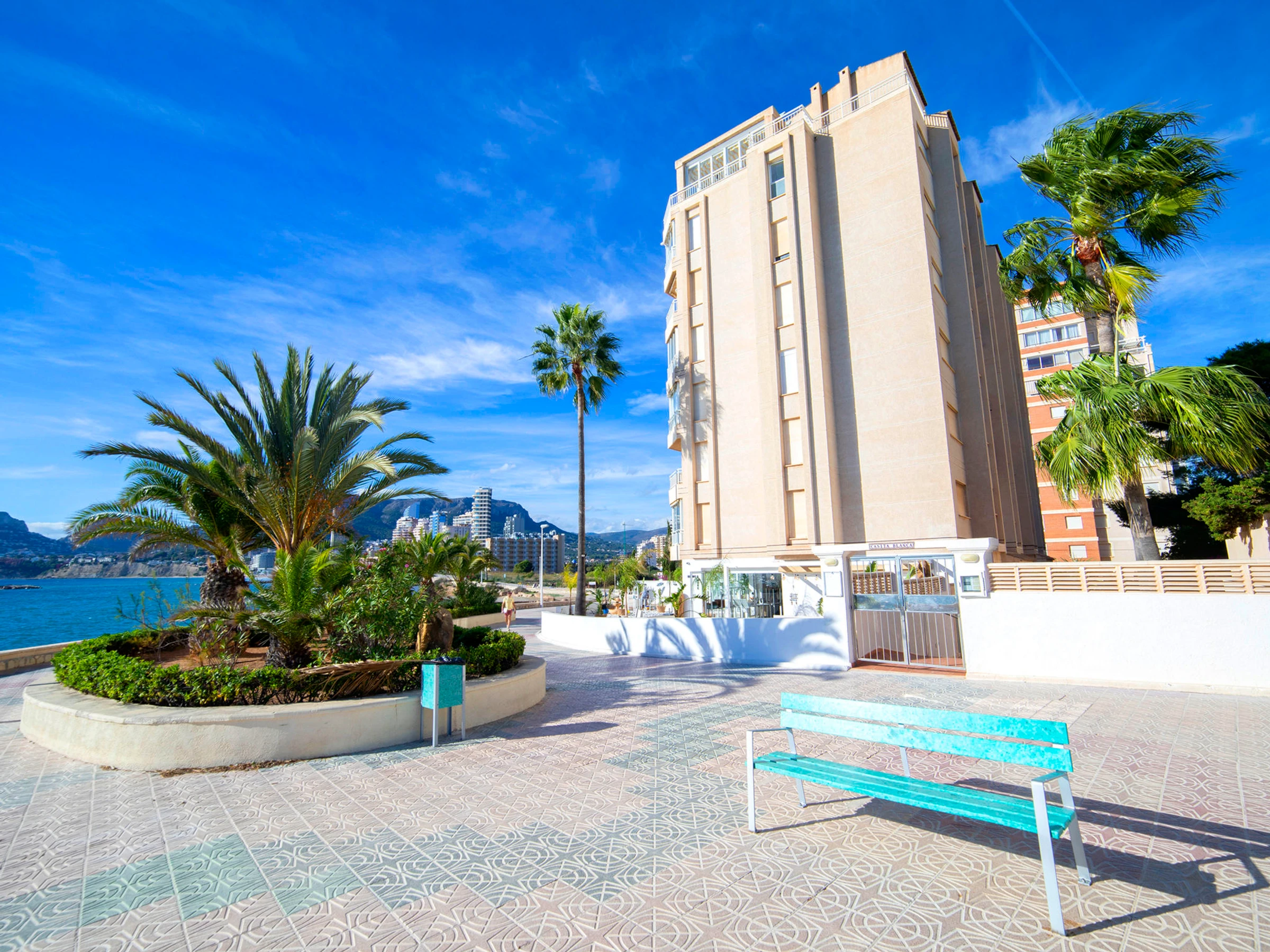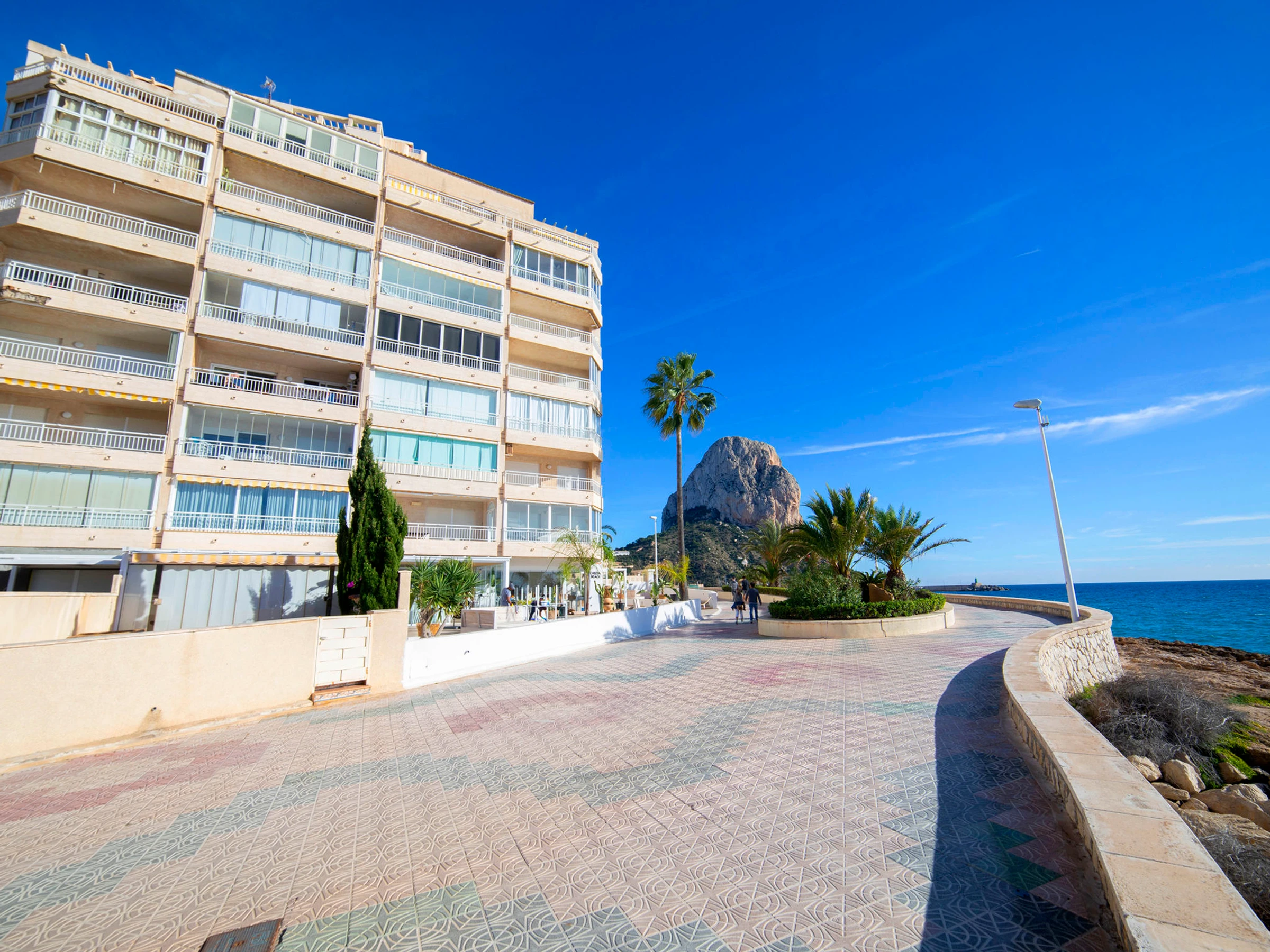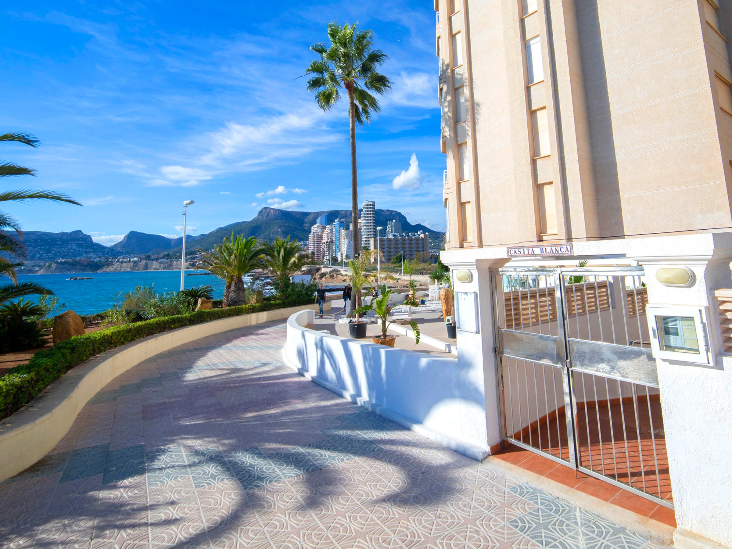 Apartment block "Casita Blanca", 6 storeys. 2 km from the centre of Calpe, in a sunny position, at the seaside, on the beach. For shared use: property (fenced). In the house: lift. Grocery, supermarket 900 m, restaurant, bar 10 m, bus stop 140 m, sandy beach "Cala del Morello" 50 m. Sports harbour 750 m, marina 750 m, golf course (9 hole) 11 km. Nearby attractions: Aqualandia, Mundomar, Terra Mítica, Terra Natura, Benidorm Palace, Les Fonts de l'Algar.