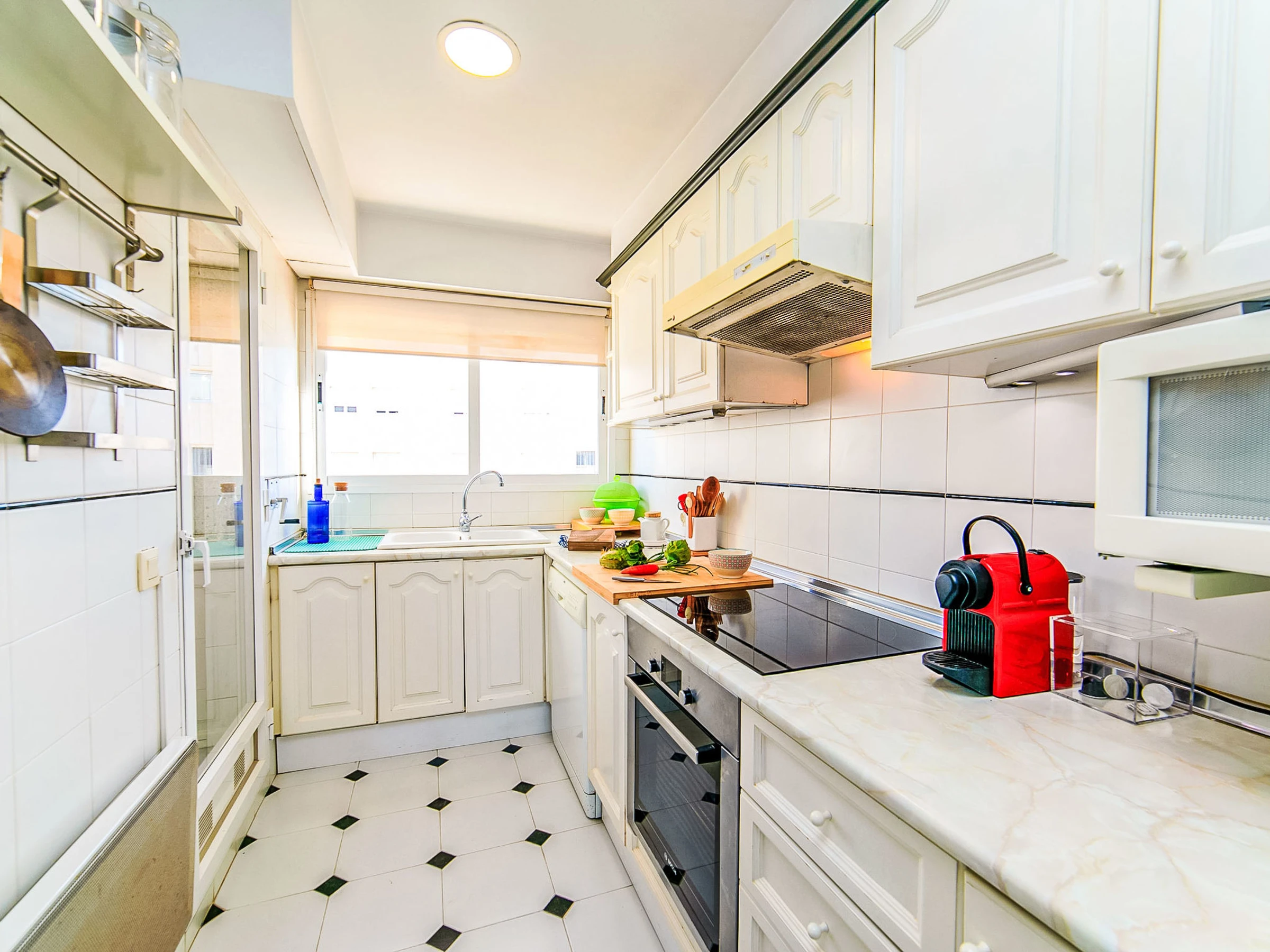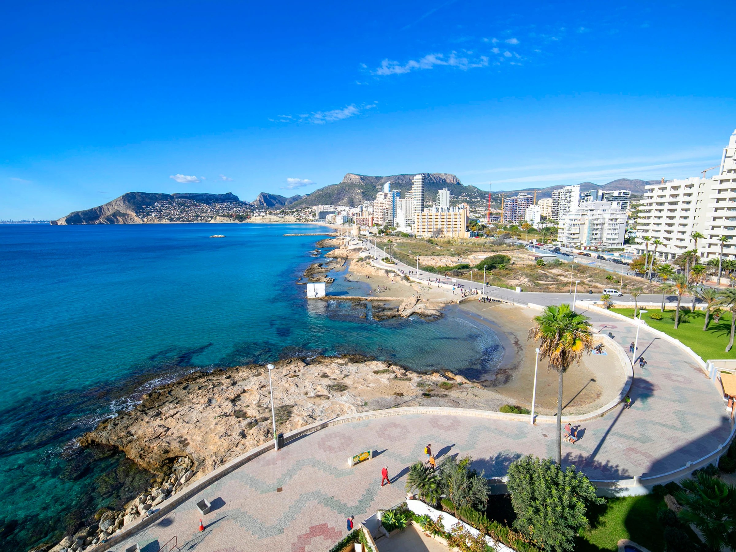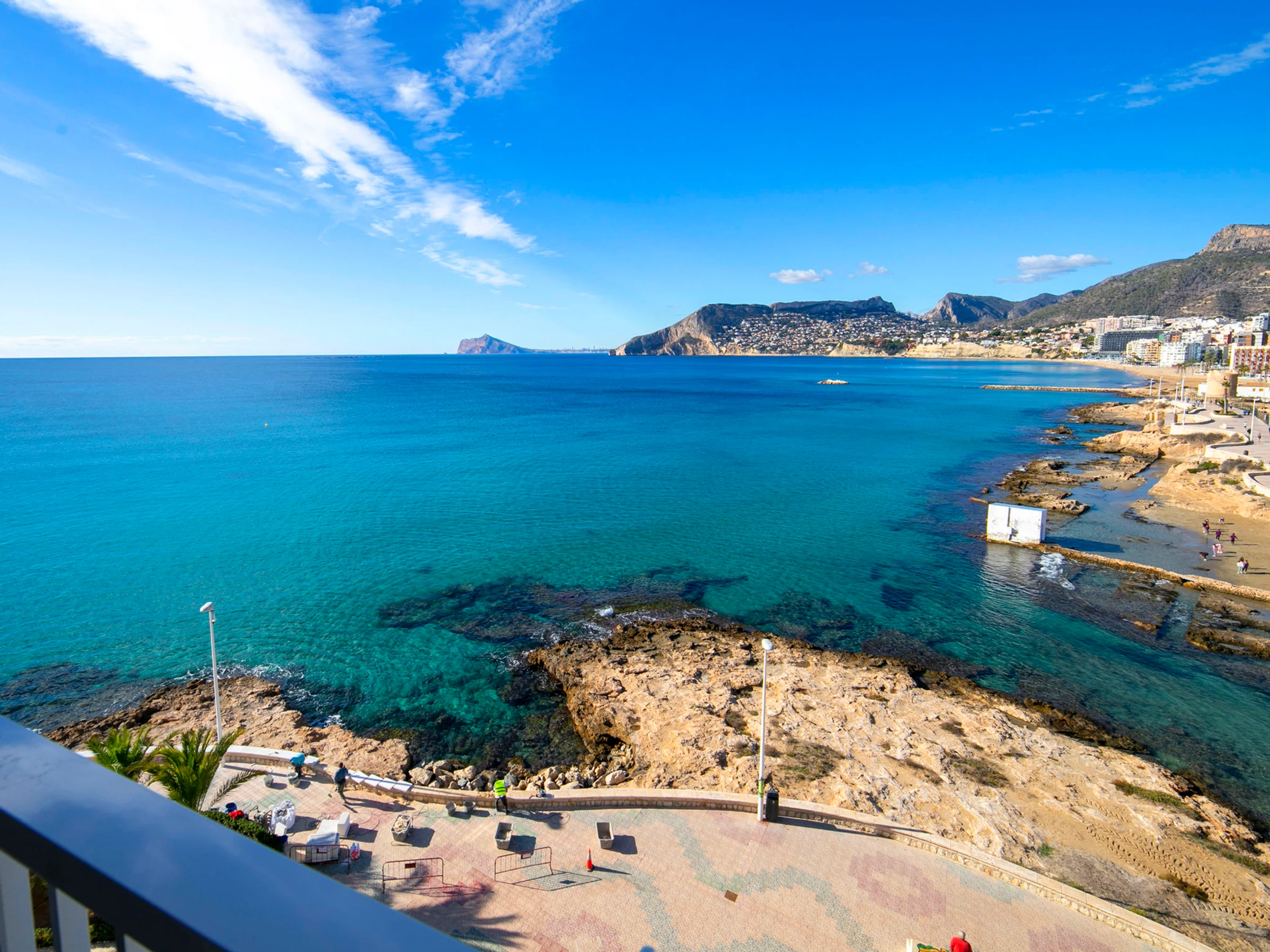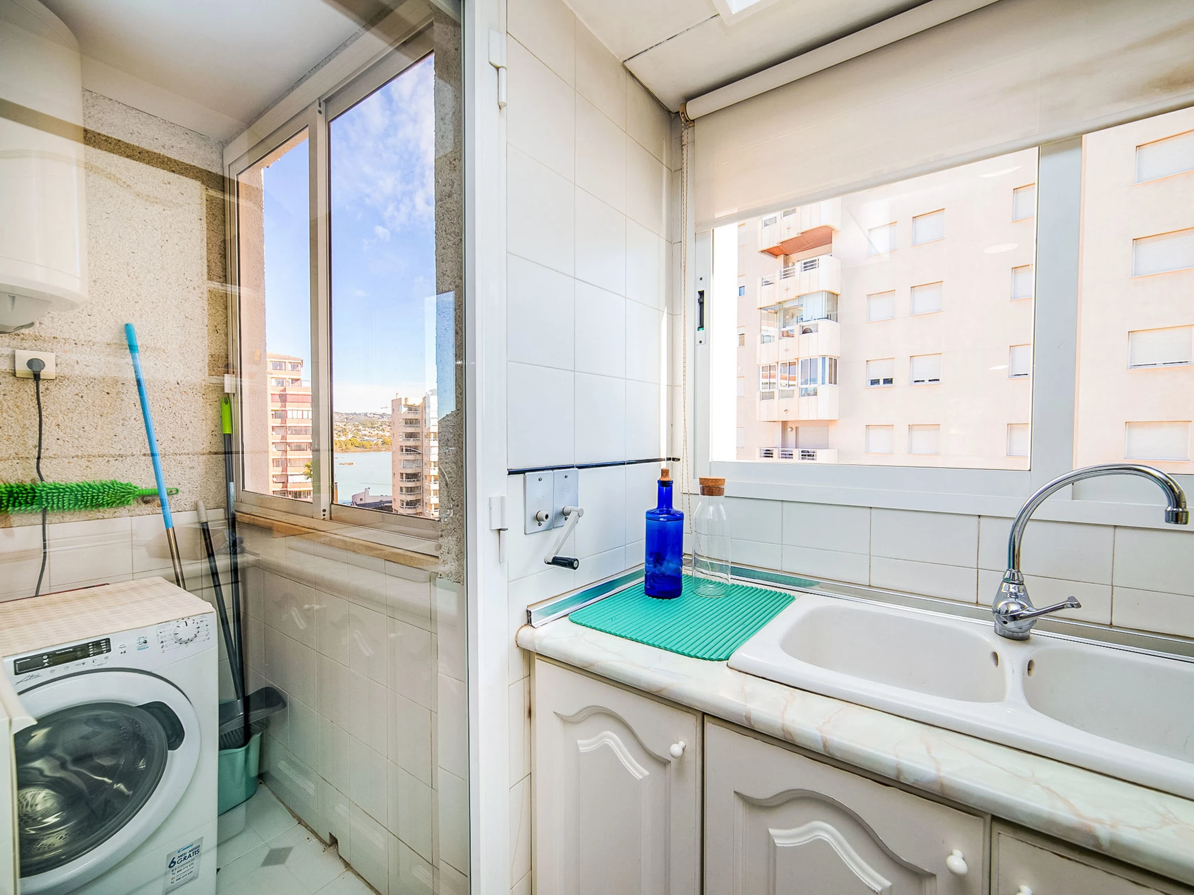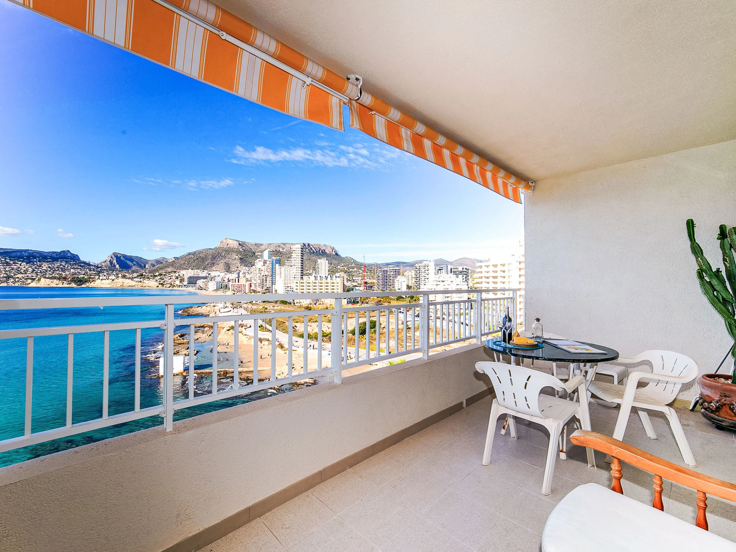 "Casita Blanca", 3-room apartment 75 m2 on 6th floor. Spacious and bright, comfortable and beautiful furnishings: living/dining room with digital TV, air conditioning, fan and forced-air heating. Exit to the terrace. 1 room with 1 french bed (1 x 150 cm, length 190 cm), fan. Exit to the terrace. 1 room with 2 beds (90 cm, length 180 cm). Kitchen (oven, dishwasher, 3 induction hot plates, toaster, kettle, microwave, electric coffee machine, Capsules for coffee machine (Nespresso)). Bath/bidet/WC. Large terrace. Balcony furniture. Very beautiful view of the sea and the town. Facilities: washing machine, iron, hair dryer. Internet (WiFi, free). Parking space n 11. Please note: non-smoking house. [hidden] // Reg. Nr.: ESFCTU0000030290004201890000000000000[hidden]6