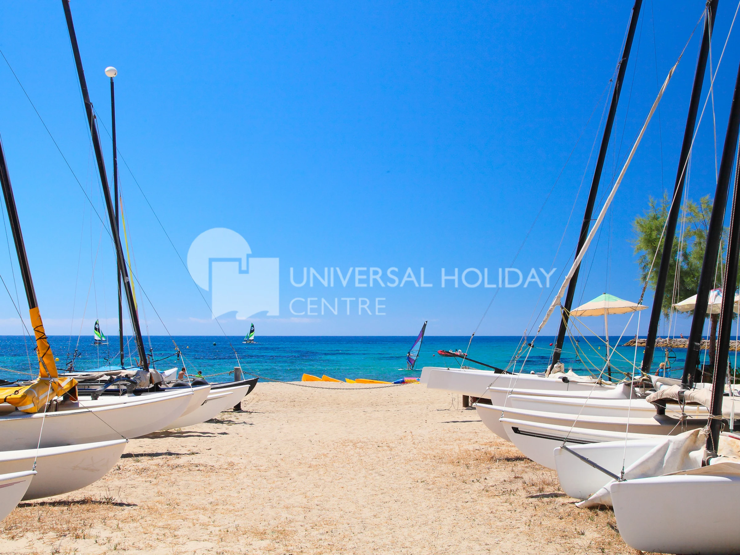 The UHC MAR AUGUSTA FAMILY COMPLEX, in front of Esquirol beach, is undoubtedly the perfect place for your family holiday. This beautiful beach combines an excellent leisure offer with a family-friendly and relaxed atmosphere. You will find beach bars, restaurants, sun lounger rental, parasols and a sailing school that offers a host of water activities.