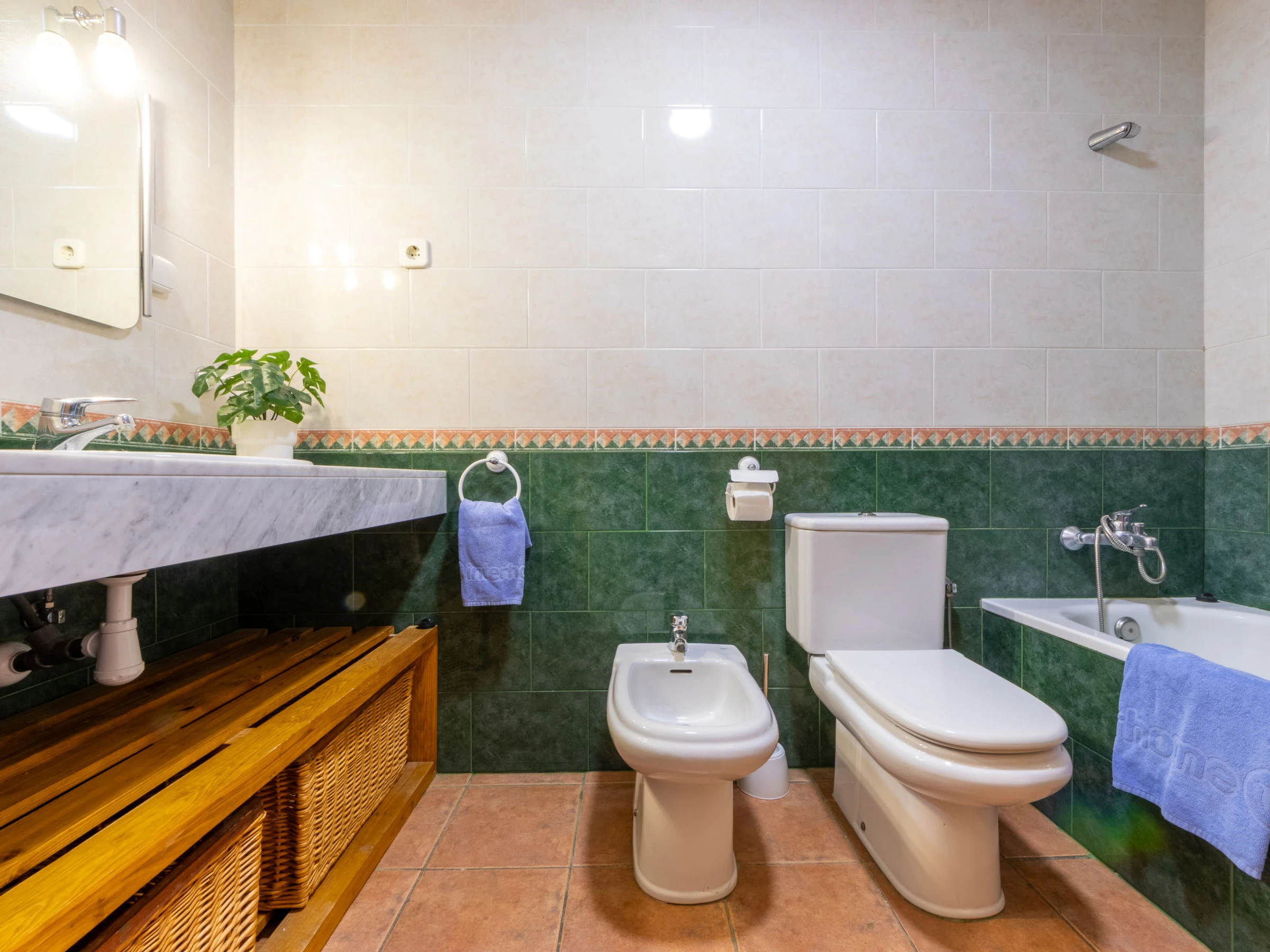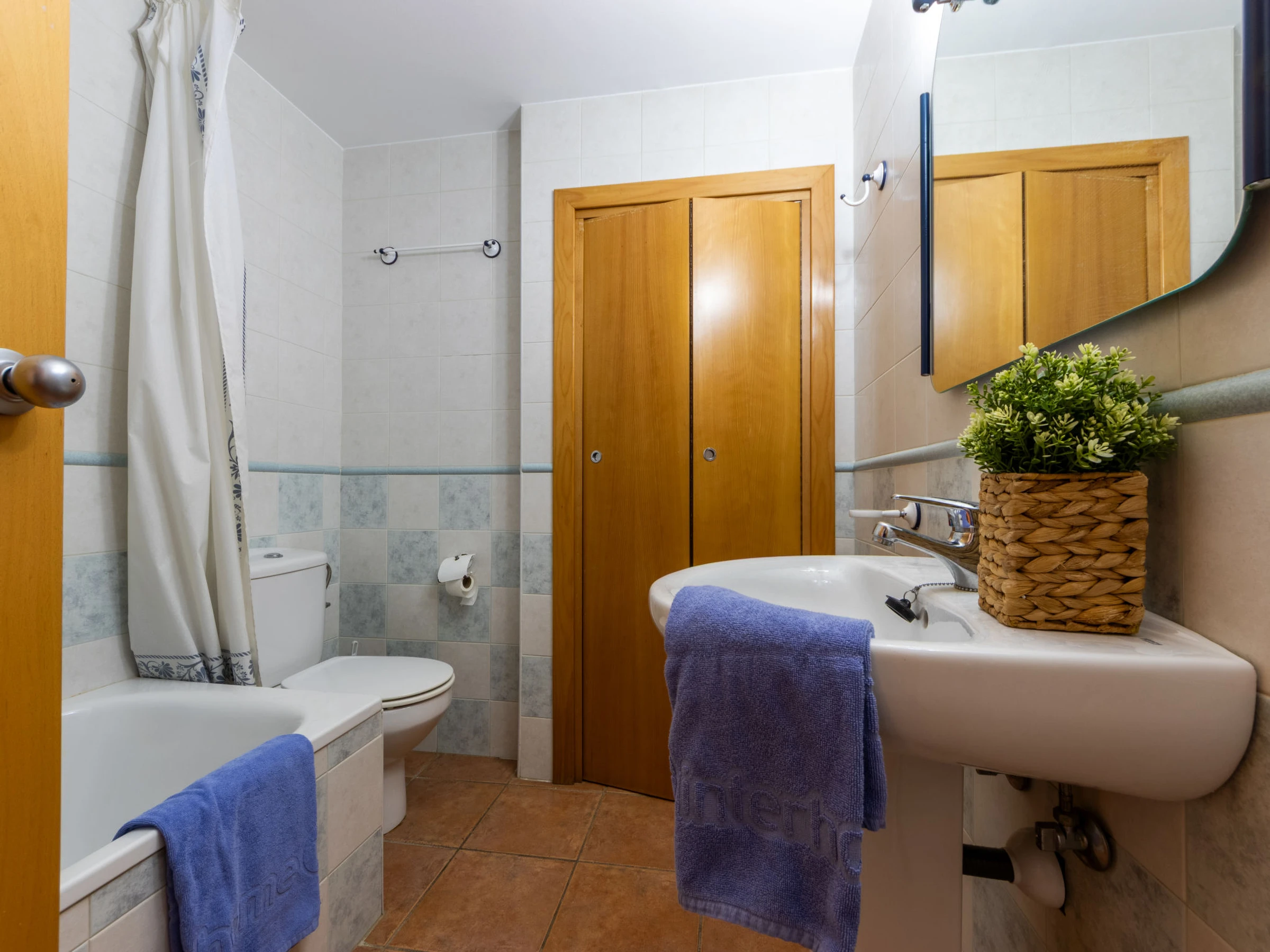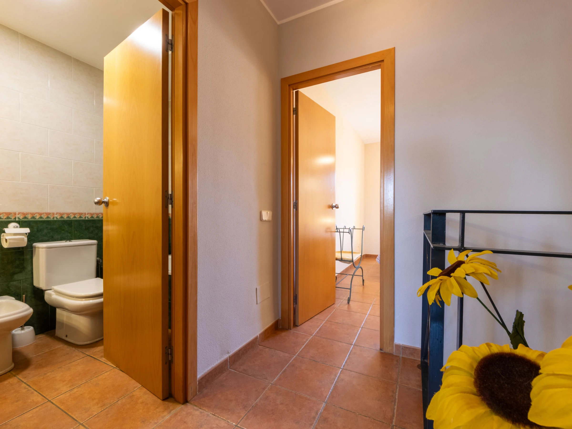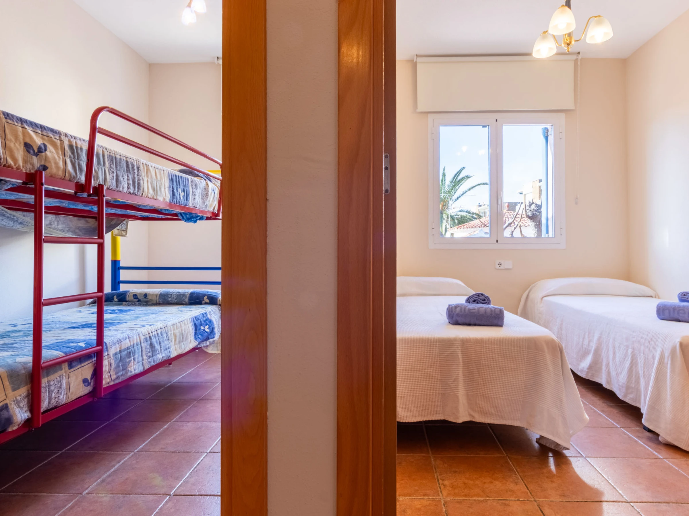 1 km from Cambrils: Cosy, comfortable terraced house, 2 storeys. 900 m from the centre of Cambrils, in a quiet, sunny position, traffic calmed area, 300 m from the sea, 300 m from the beach. For shared use: garden with lawn, swimming pool angular (12 x 6 m, depth 100 - 200 cm, seasonal availability: [hidden] - [hidden] Parking. Supermarket, restaurant, bar 500 m, bus stop 200 m. Sports harbour 1 km. Nearby attractions: Port Aventura 5 km, AQUOPOLIS 9 km. Hiking paths: La Massara 45 km.