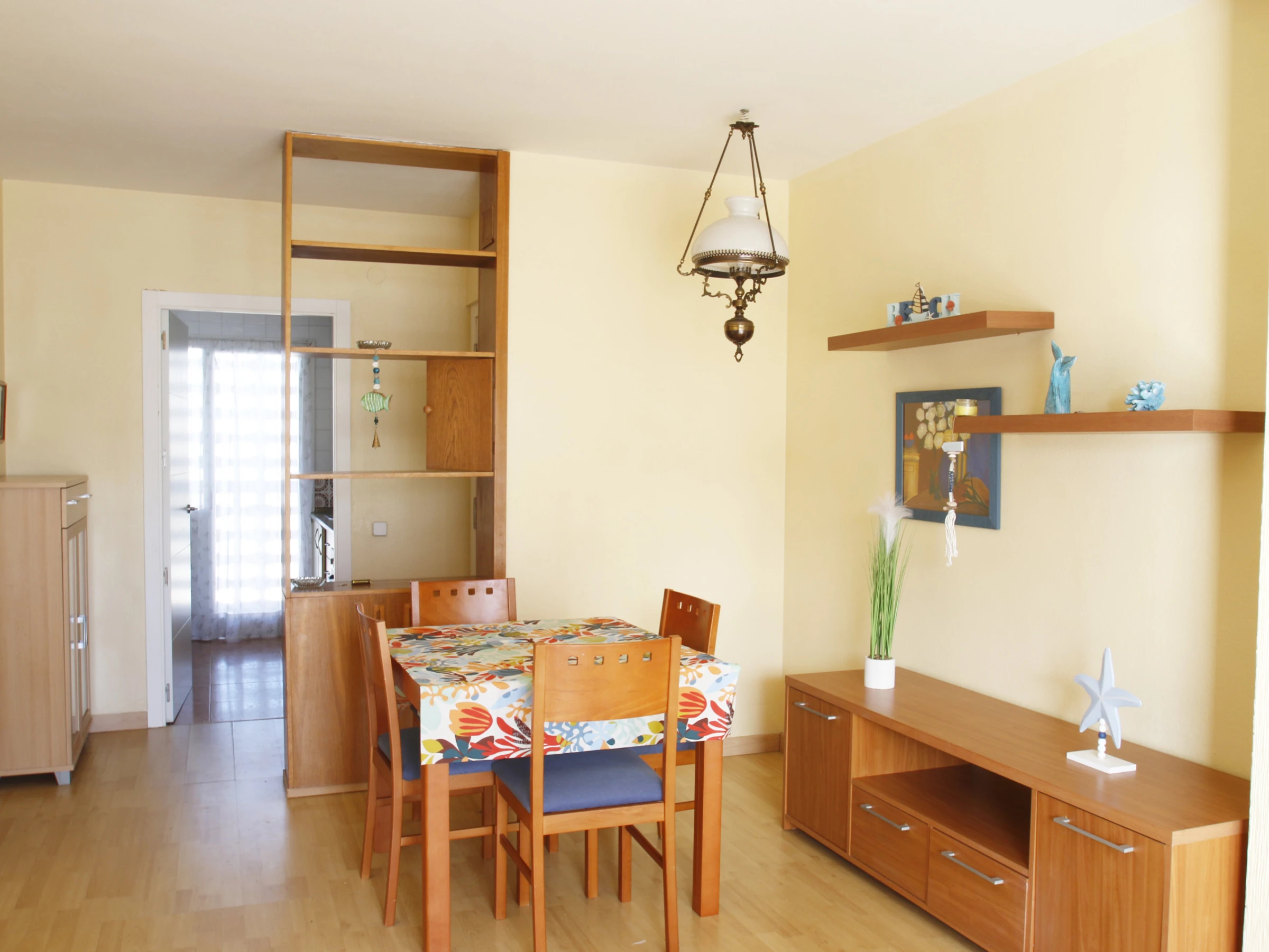 The beachfront apartment in Cambrils, facing the renowned Regueral Beach, is an ideal option for families and couples who wish to enjoy the sea with comfort and tranquillity. Located next to a fine sand beach with shallow waters, it offers a safe environment for children and is perfect for those seeking relaxation in a relaxed setting.