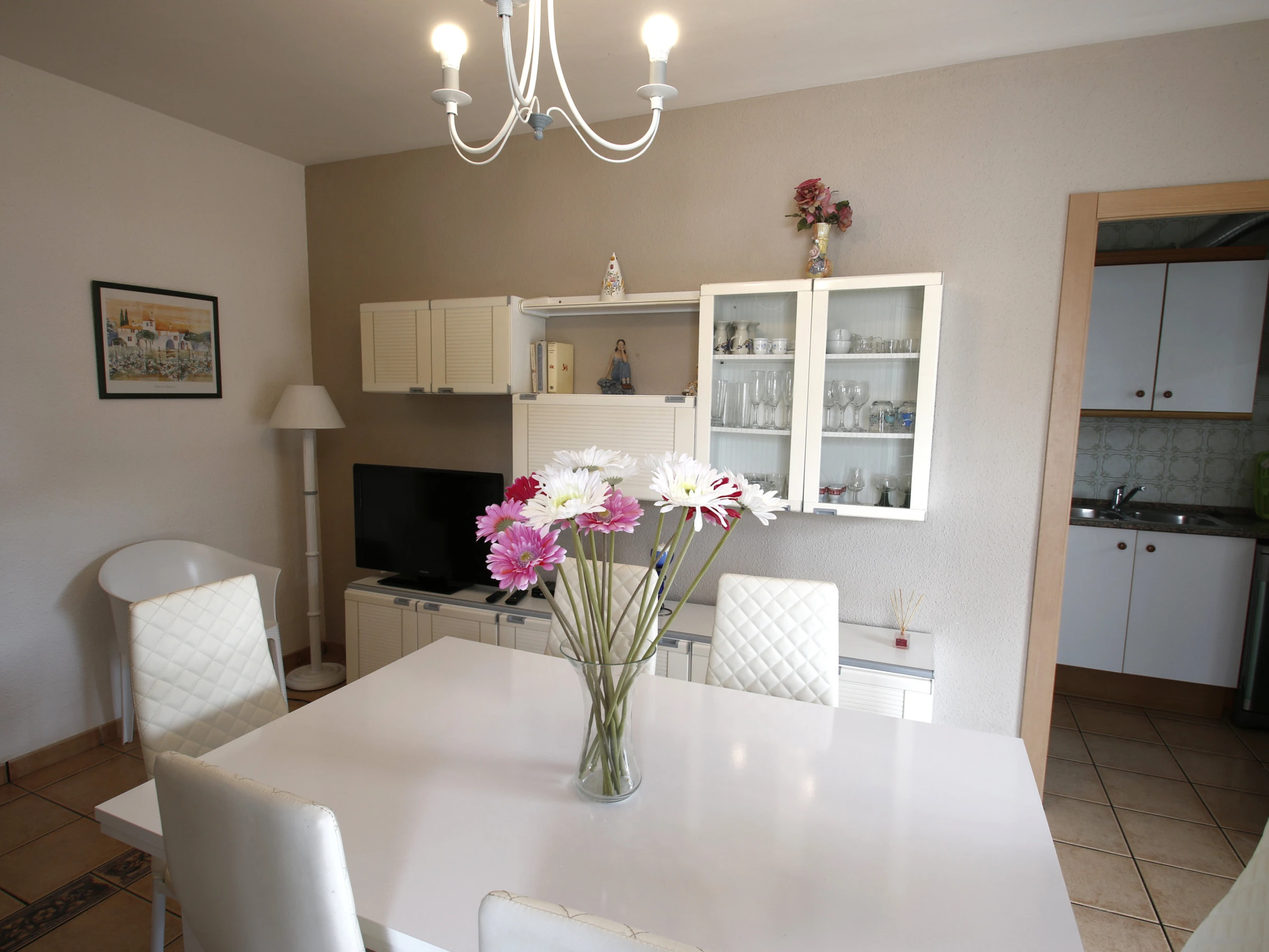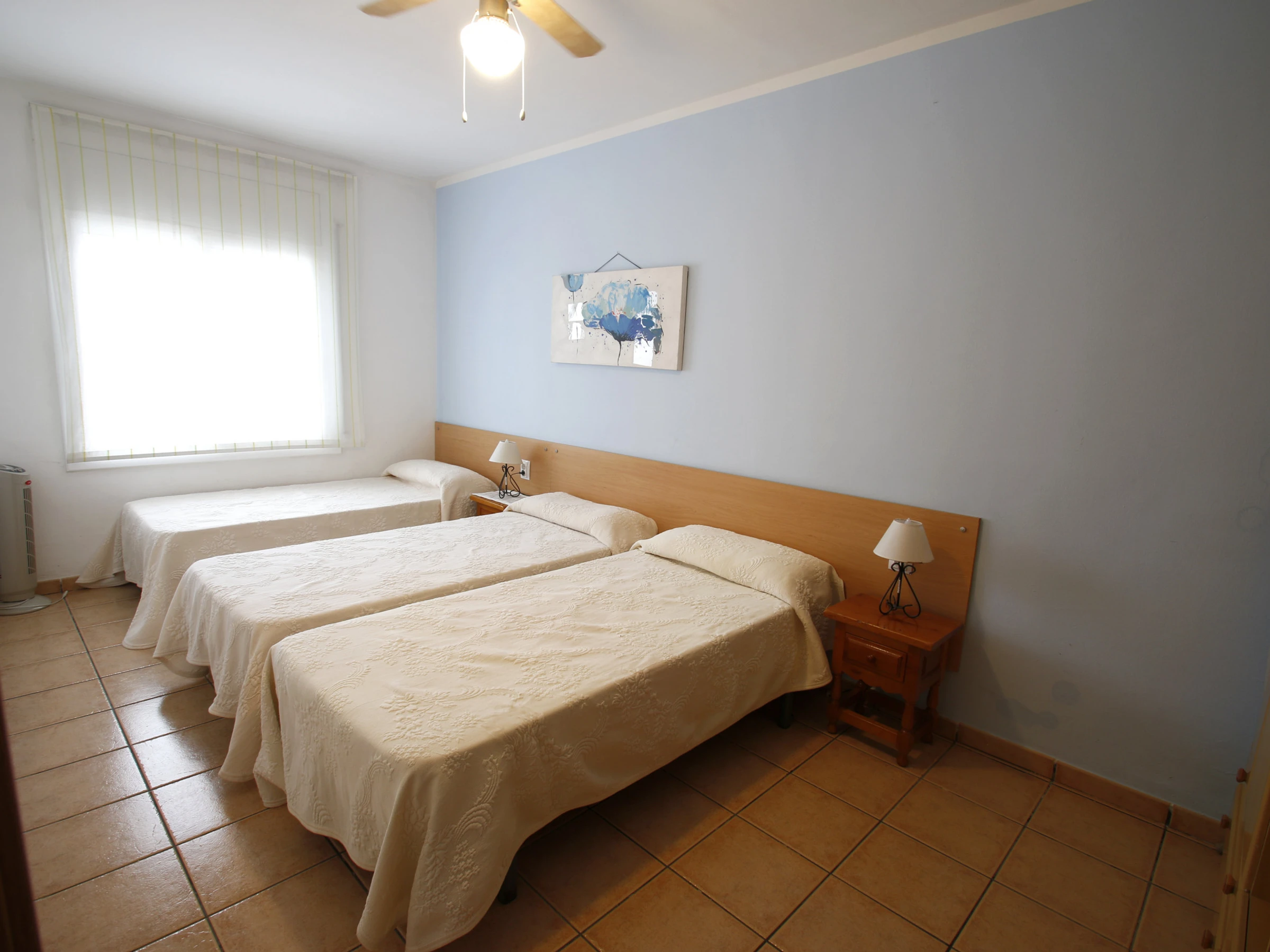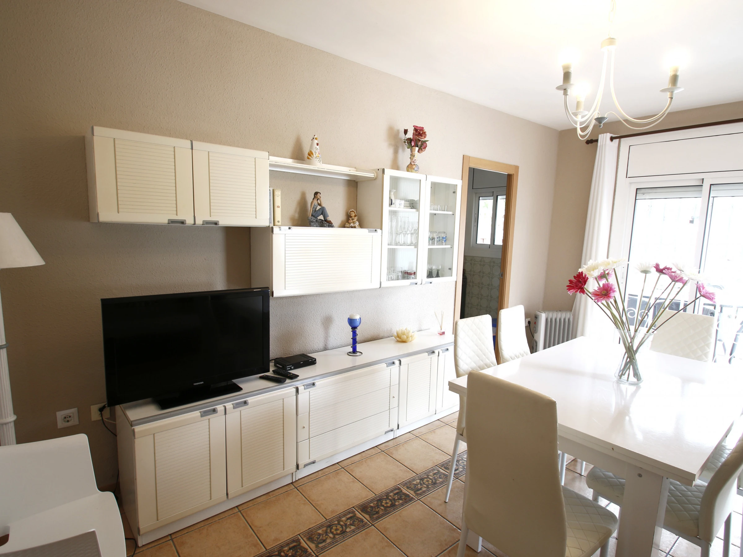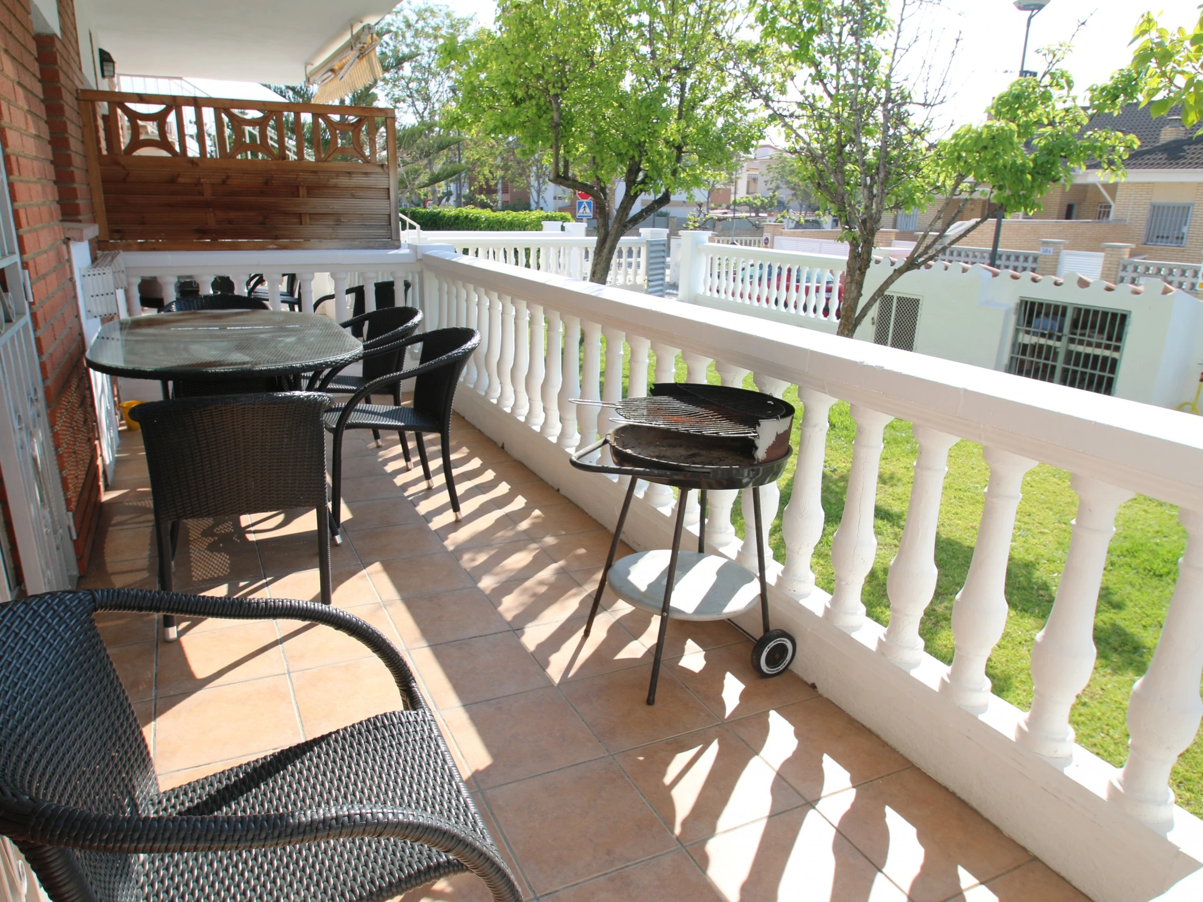 Ground floor apartment "Casa Rosales", in a pleasant two-storey residential complex, surrounded by a garden and with a communal pool. The apartment in Cambrils is ideal for a pleasant holiday on the Costa Dorada, with 2 bedrooms and capacity for 6 people, tastefully decorated and with quality furniture. Casa Rosales in Cambrils is located in the quiet residential area of La Llosa in Cambrils, only 400 m. from the beautiful sandy beach, 10 minutes walk from the port and the commercial area of Cambrils, near Salou and Port Aventura. The comfortable apartment consists of a double room, a three-bed room, a living-dining room with sofa bed, a bathroom with shower, a fully equipped kitchen and a beautiful terrace. The house is surrounded by a garden with grass and fruit trees and offers access to the communal pool with sun loungers. The apartment is very well equipped to have a comfortable vacation: air conditioning throughout the house, dishwasher, washing machine, barbecue, satellite TV, free WiFi internet throughout the house and parking.